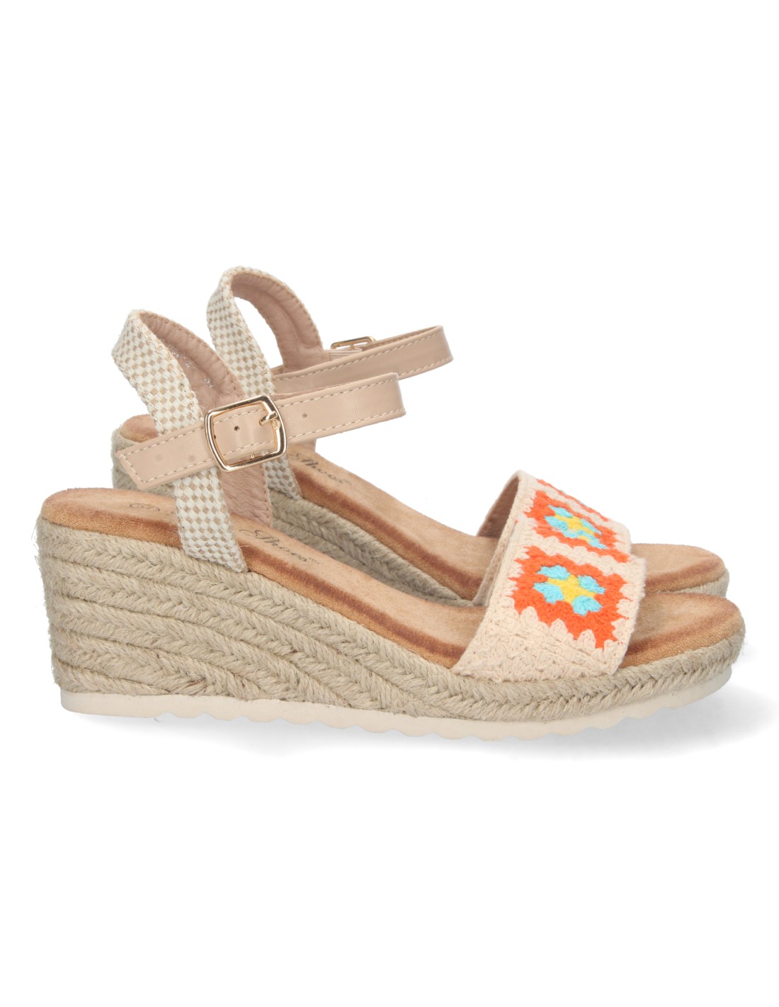Sandalia de Cuña para Mujer, Comoda, Forrada de Yute, Pala Simple con Bordado, y Cierre de Hebilla, Primavera Verano 2023