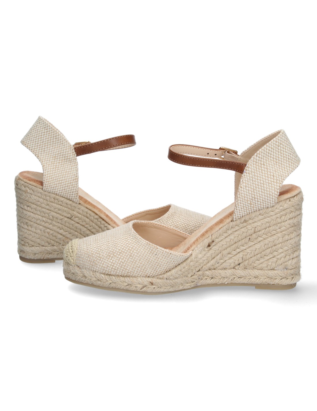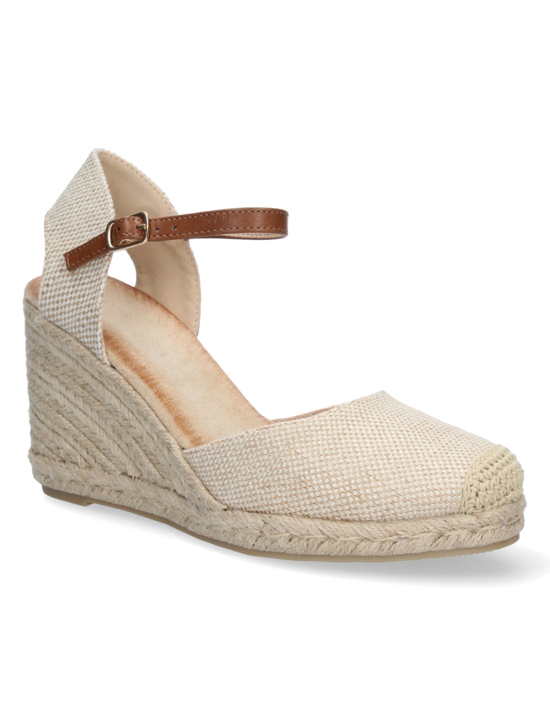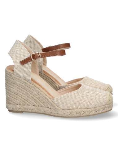 Sandalia de Cuña para Mujer, Comodas, Forrado de Yute, Pala Cerrada, y Cierre de Hebilla, Primavera Verano 2022