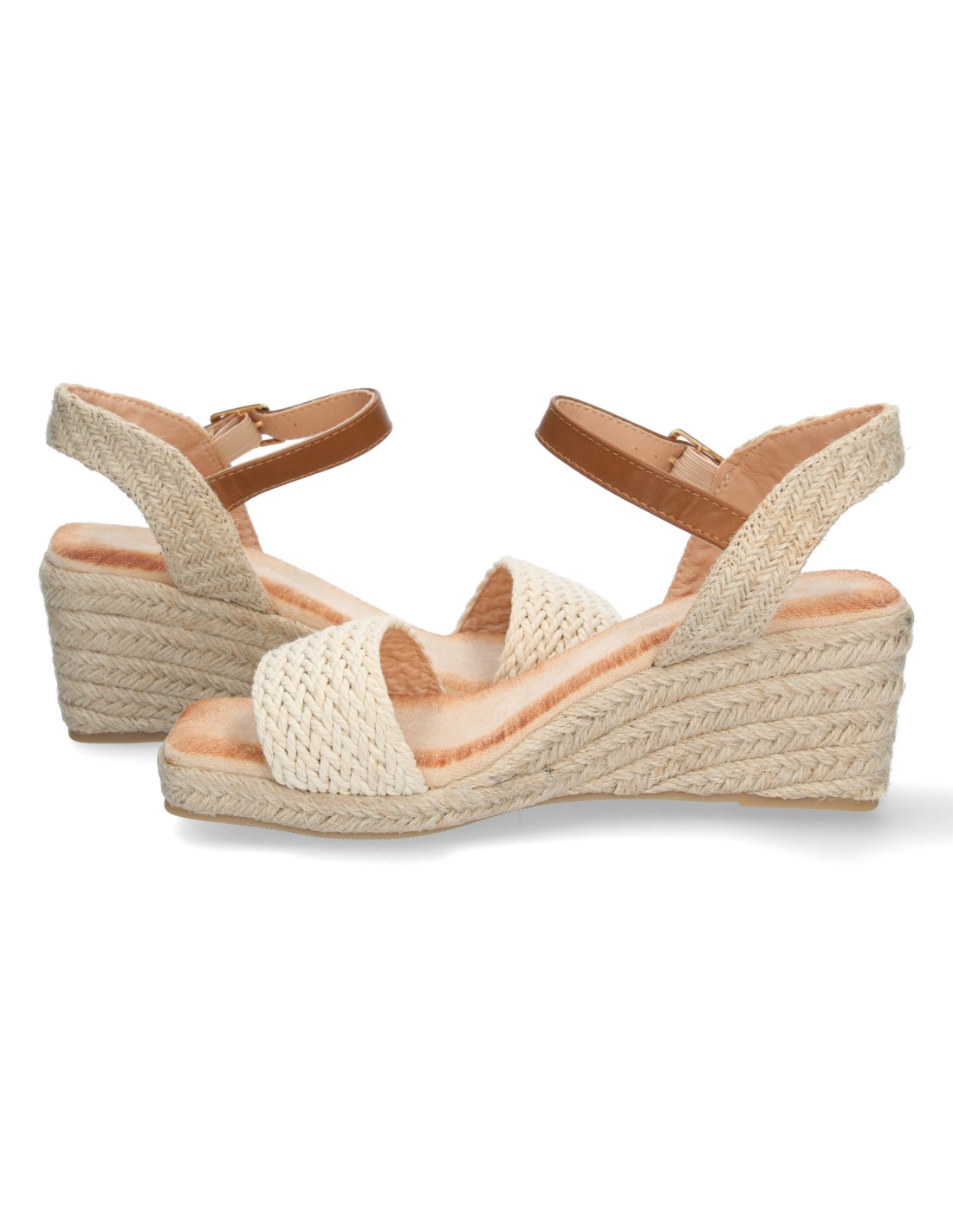 Sandalia de Cuña para Mujer, Comoda, Forrada de Yute, Pala Trenzada, y Cierre de Hebilla, Primavera Verano 2023