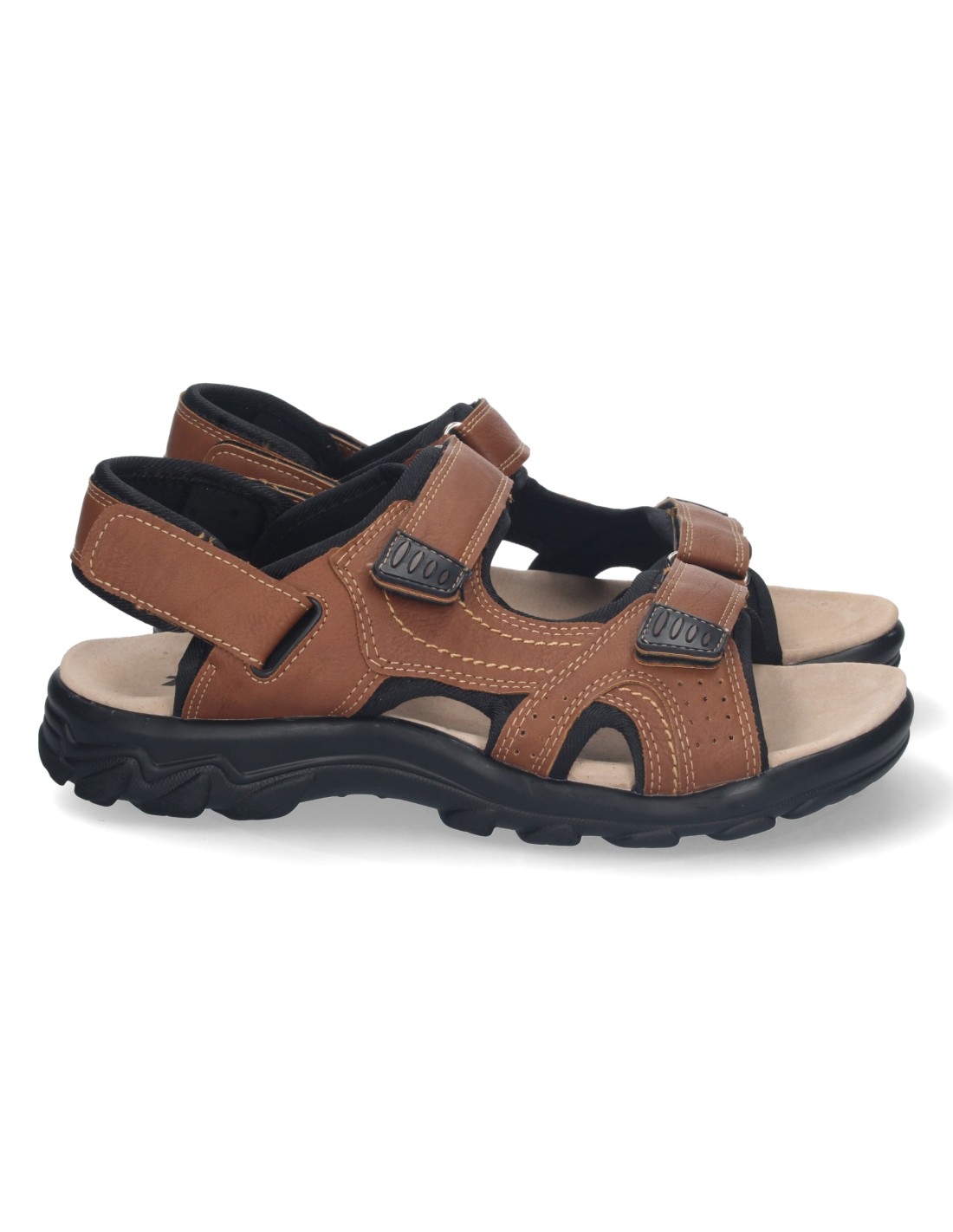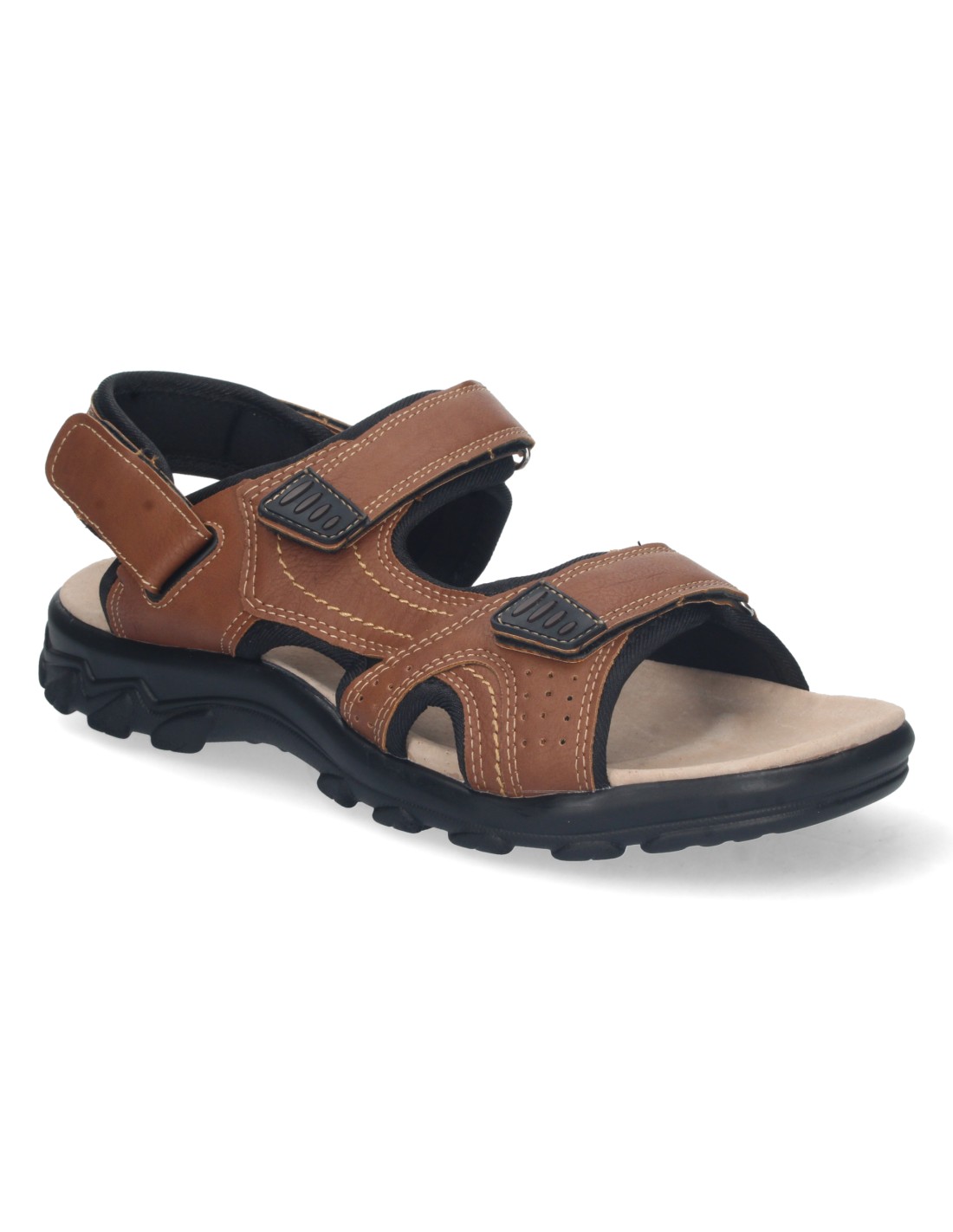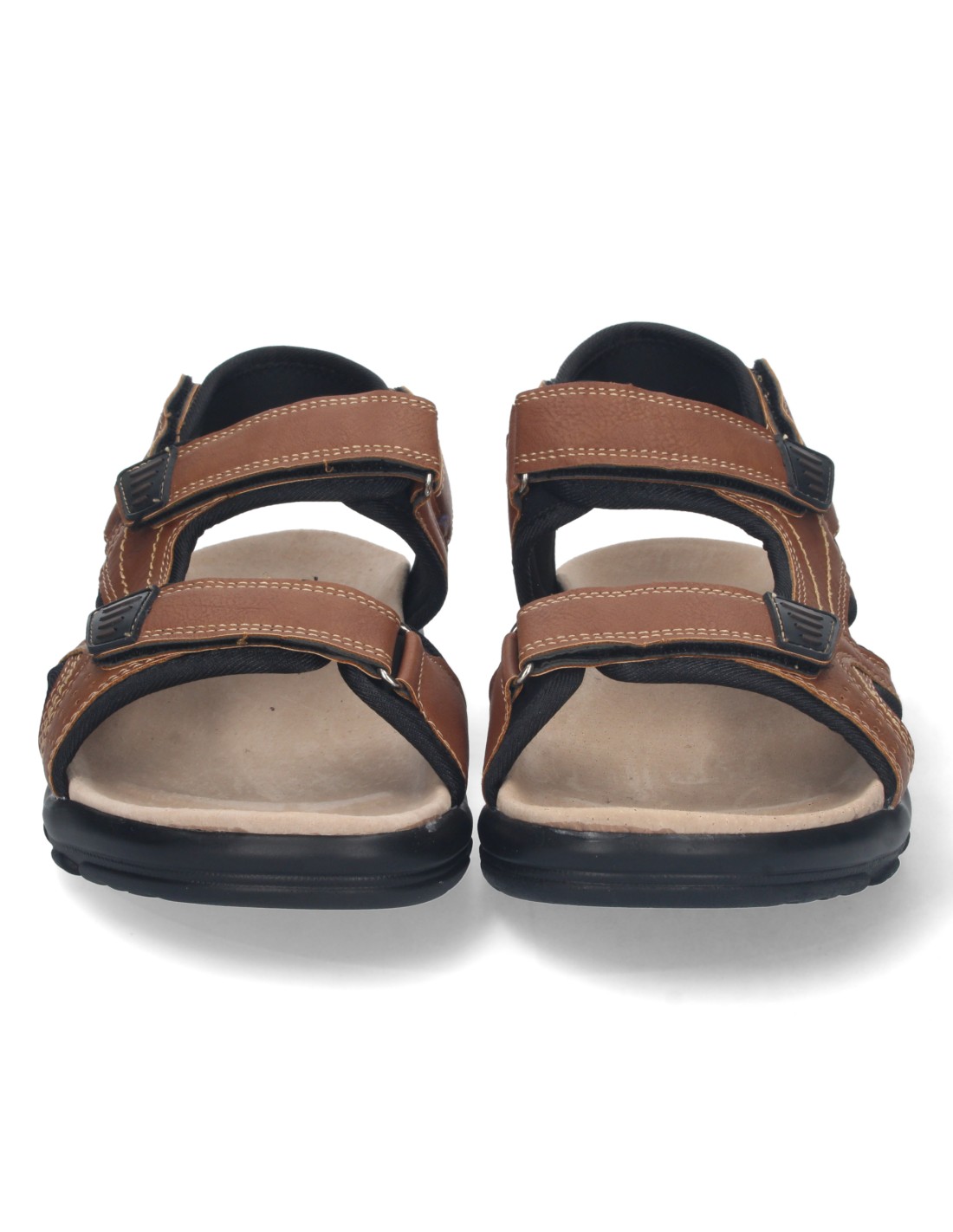 Sandalia Plana de Hombre, Comoda, Abierta, con Planta de Piel, y Cierres de Velcro, Primavera Verano 2023