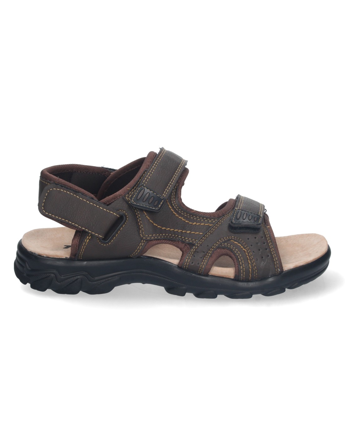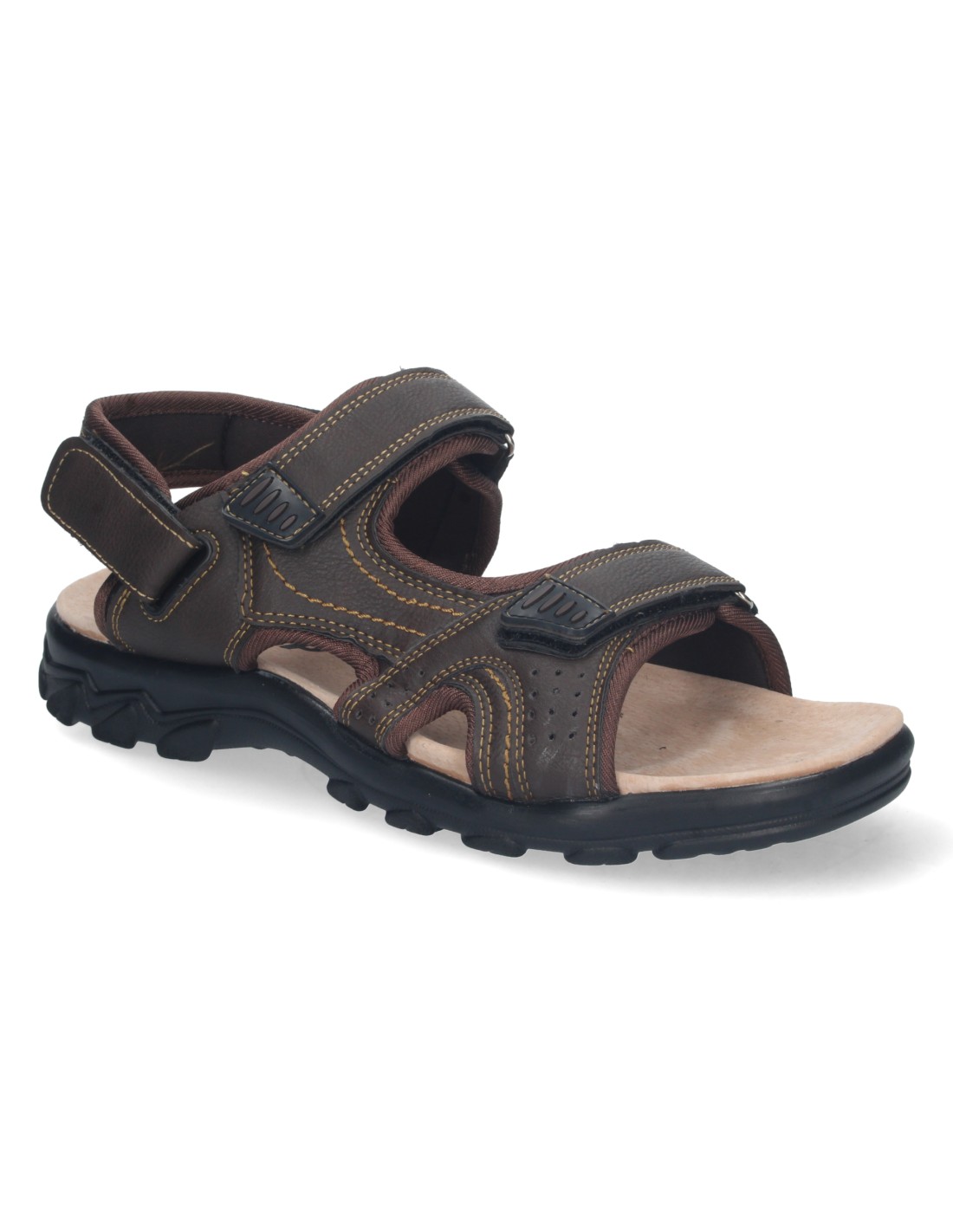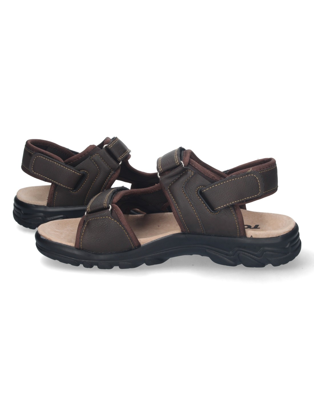 Sandalia Plana de Hombre, Comoda, Abierta, con Planta de Piel, y Cierres de Velcro, Primavera Verano 2023