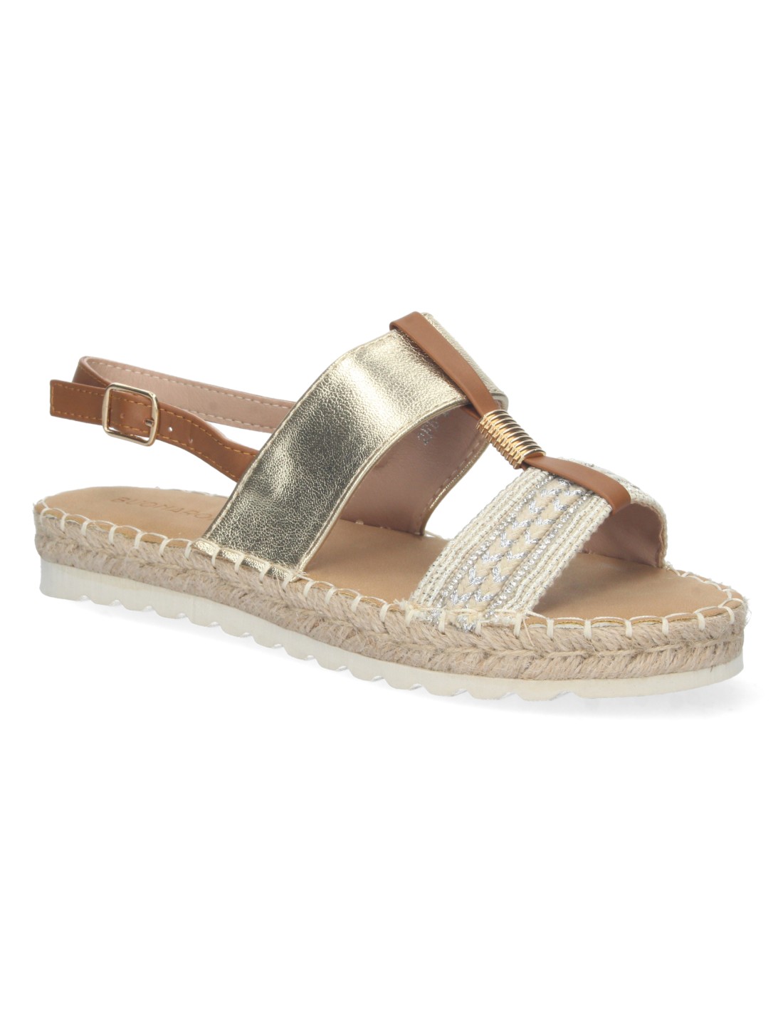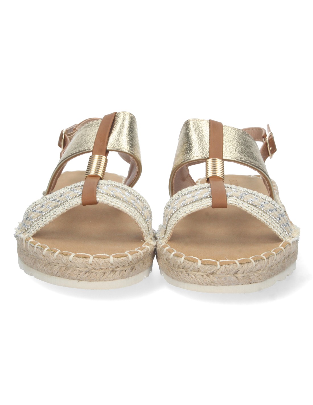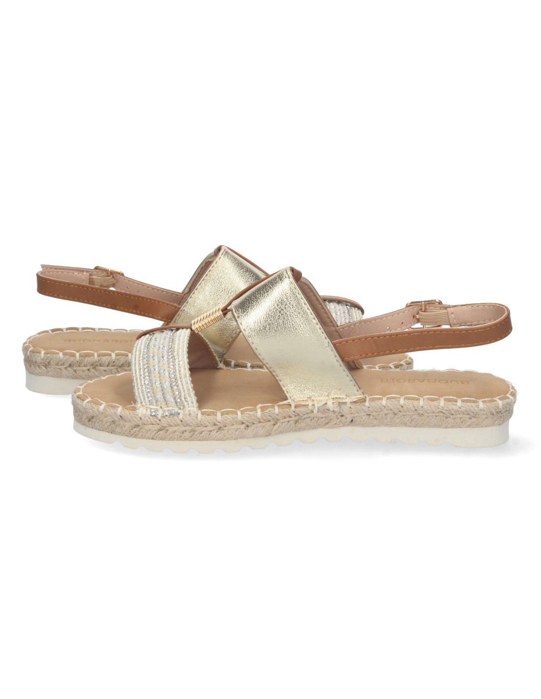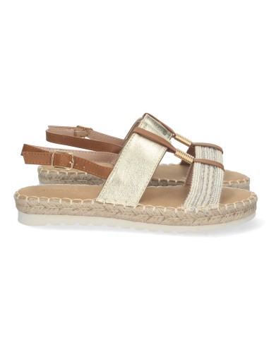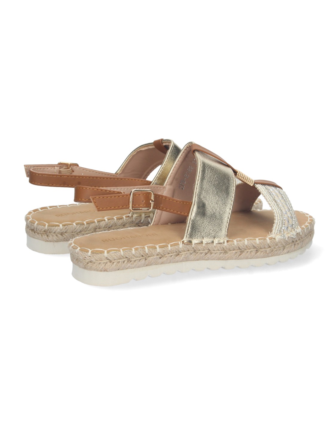 Sandalia Plana para Mujer, Comoda, Forrada de Yute, Doble Pala, Talon Abierto, y Cierre de Hebilla, Primavera Verano 2023