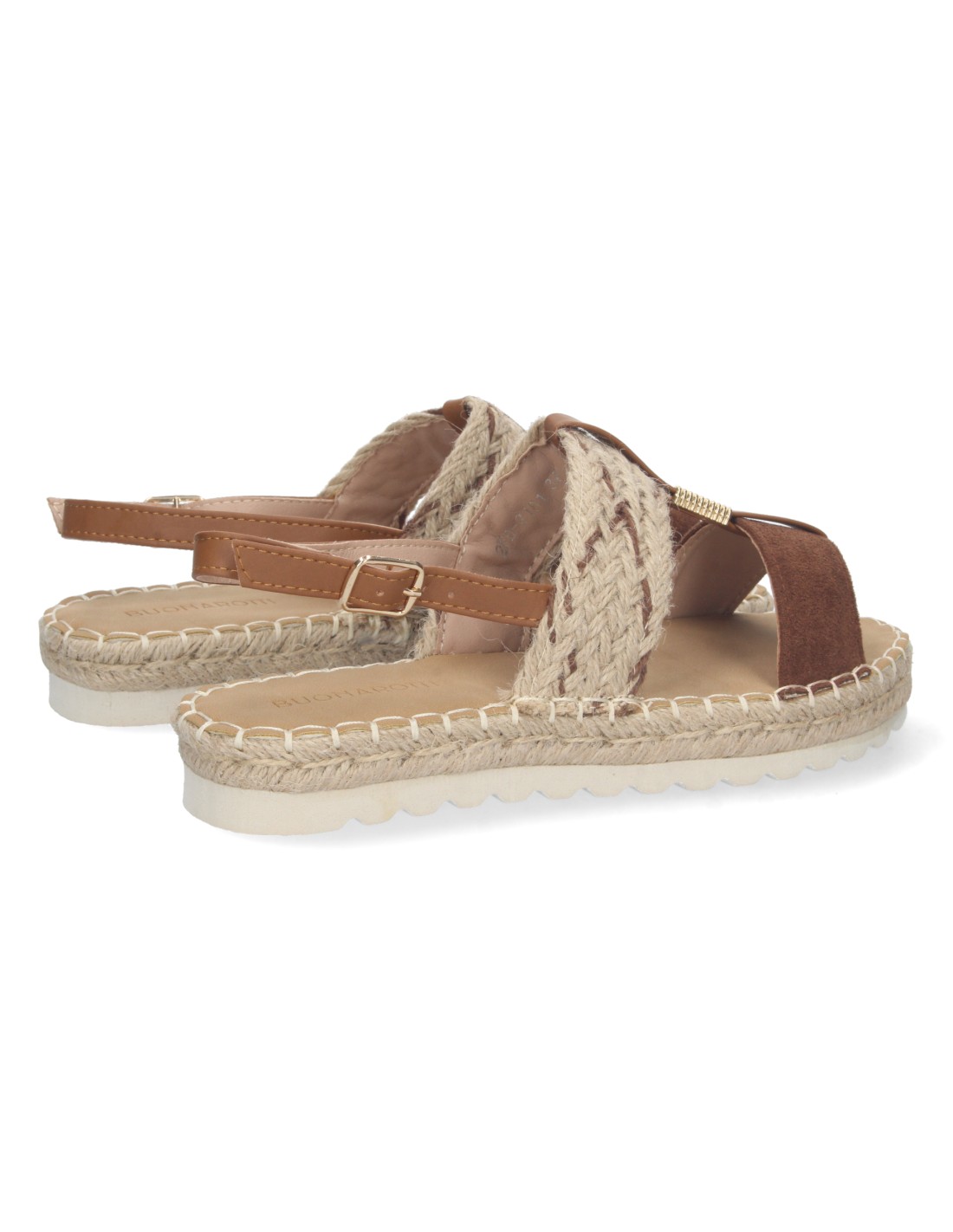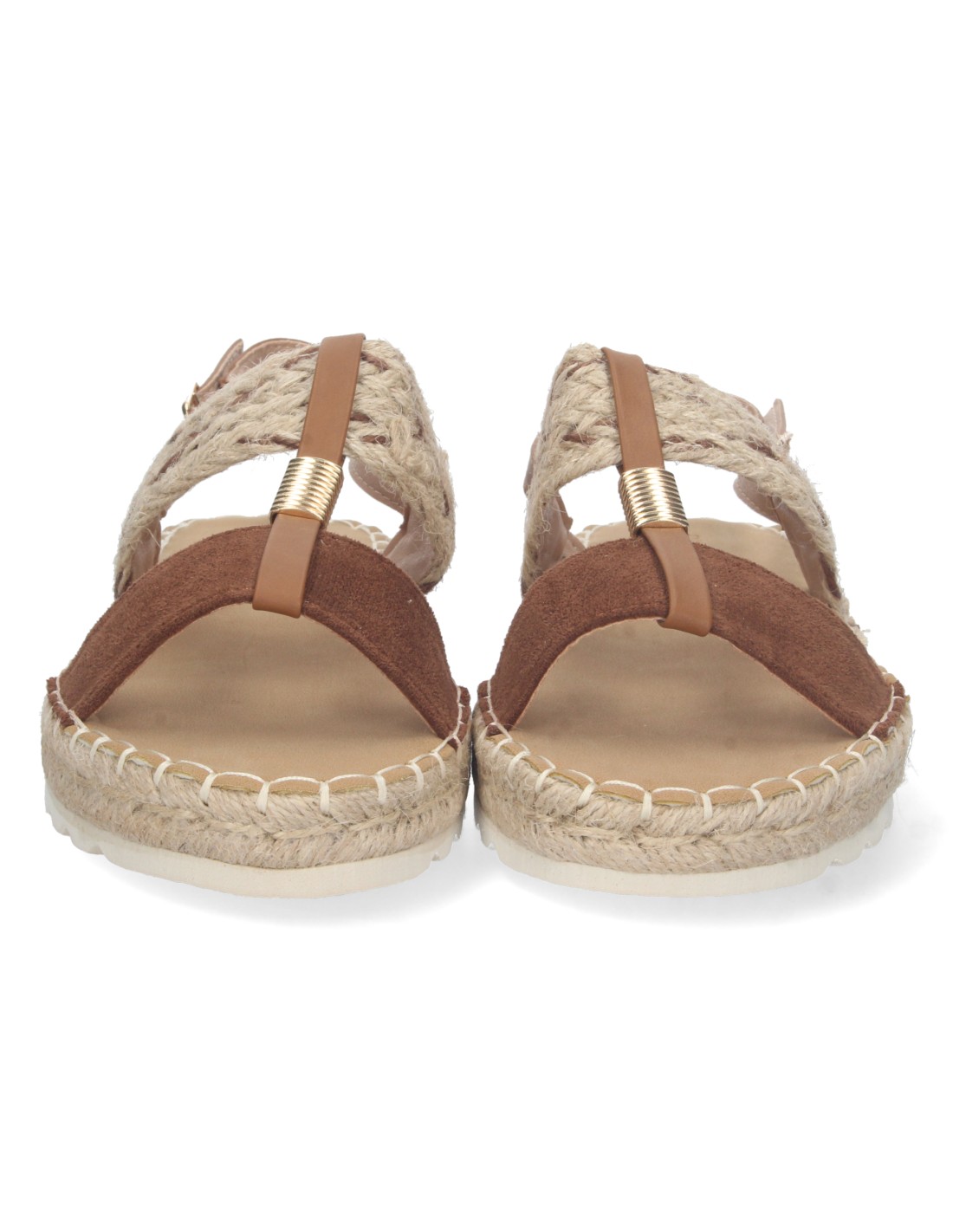 Sandalia Plana para Mujer, Comoda, Forrada de Yute, Doble Pala, Talon Abierto, y Cierre de Hebilla, Primavera Verano 2023