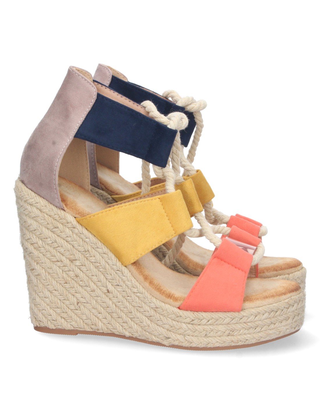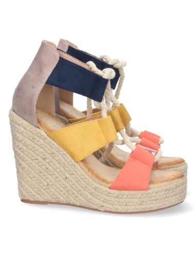 Sandalia de Cuña para Mujer, Forrada de Yute, con Cierre de Cordones Entrelazados, Primavera Verano 2023