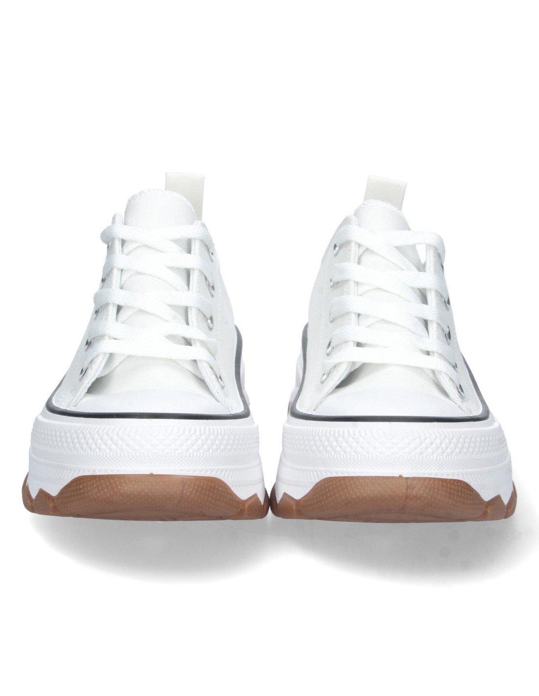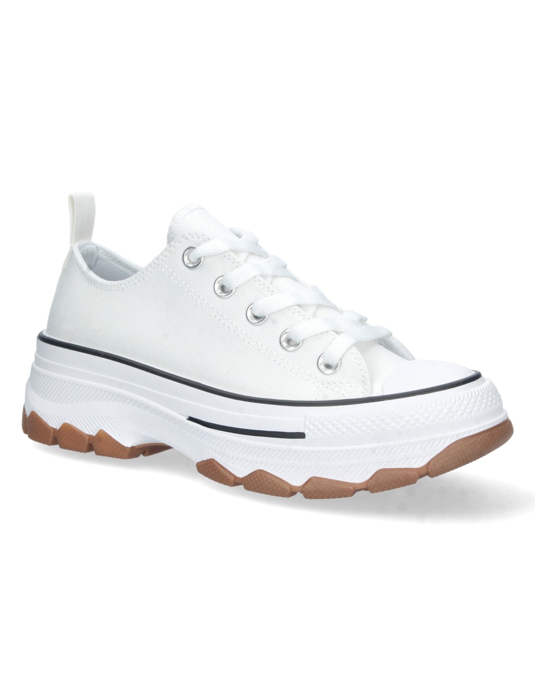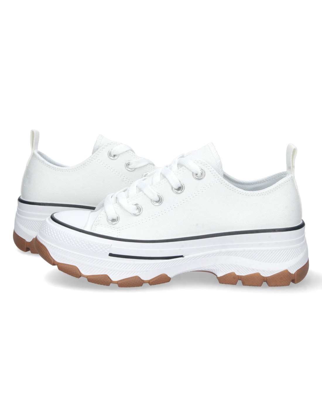 Zapatilla de Plataforma para Mujer, Comoda, Estilo Bamba, Material de Lona, y Cierre de Cordones