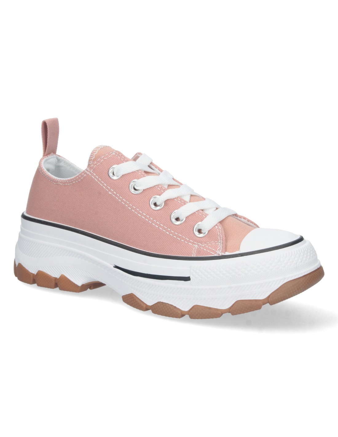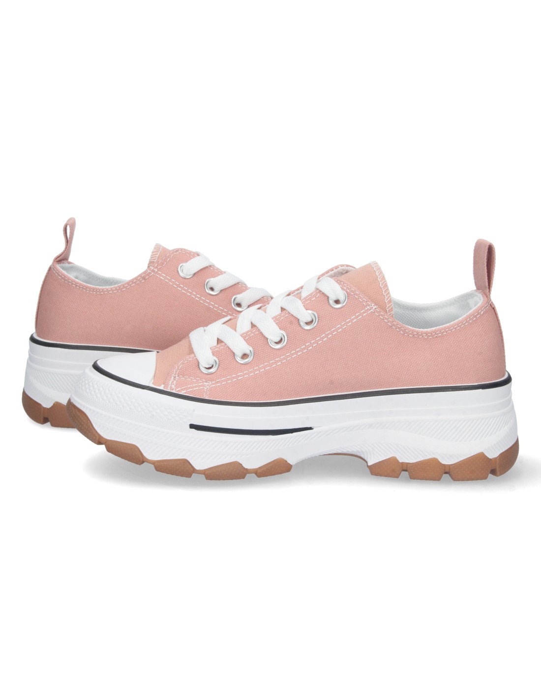 Zapatilla de Plataforma para Mujer, Comoda, Estilo Bamba, Material de Lona, y Cierre de Cordones
