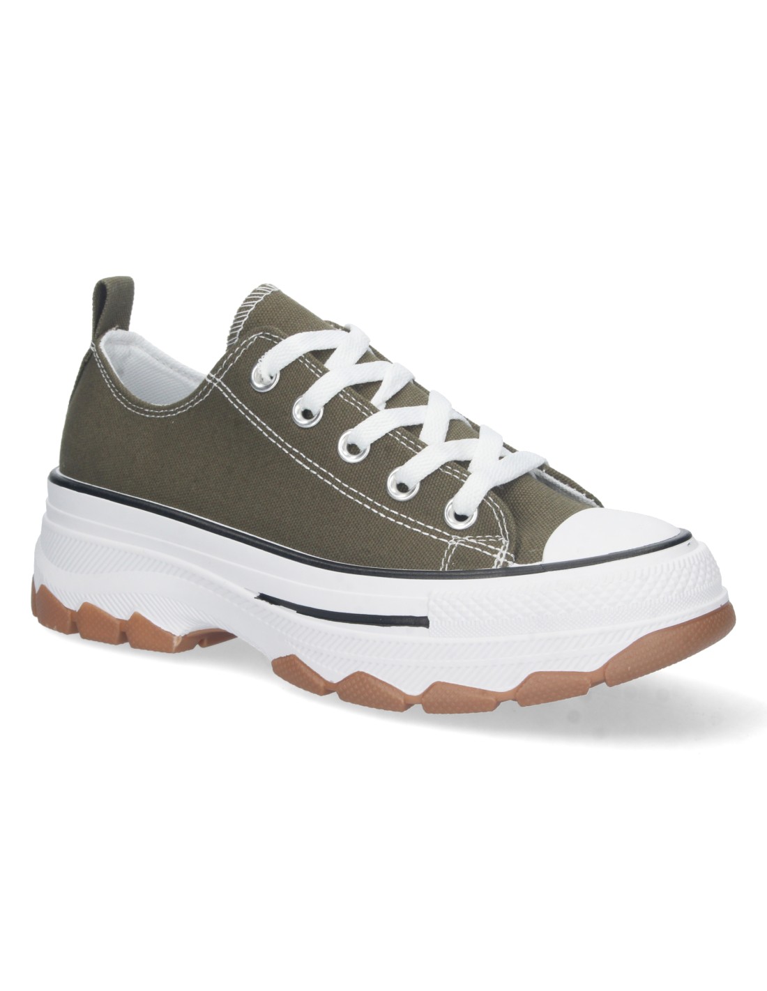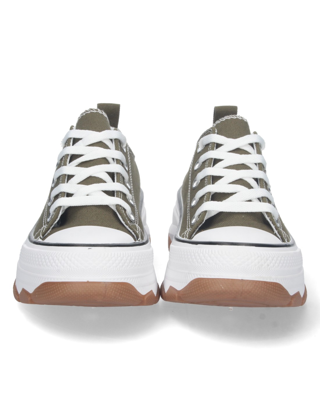 Zapatilla de Plataforma para Mujer, Comoda, Estilo Bamba, Material de Lona, y Cierre de Cordones