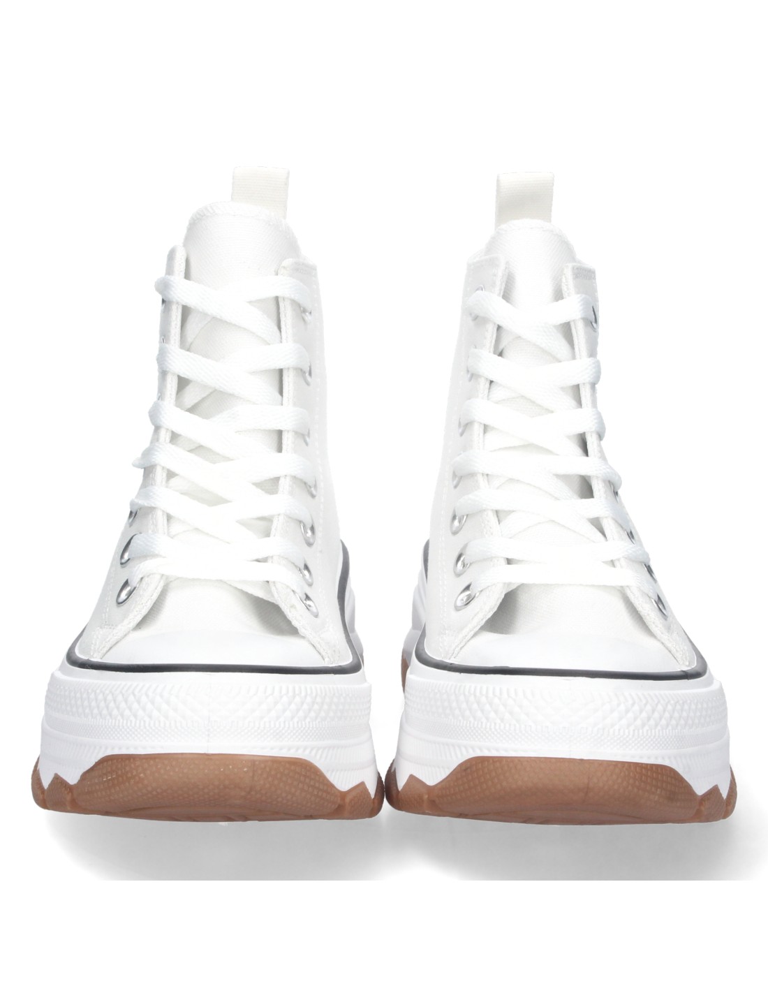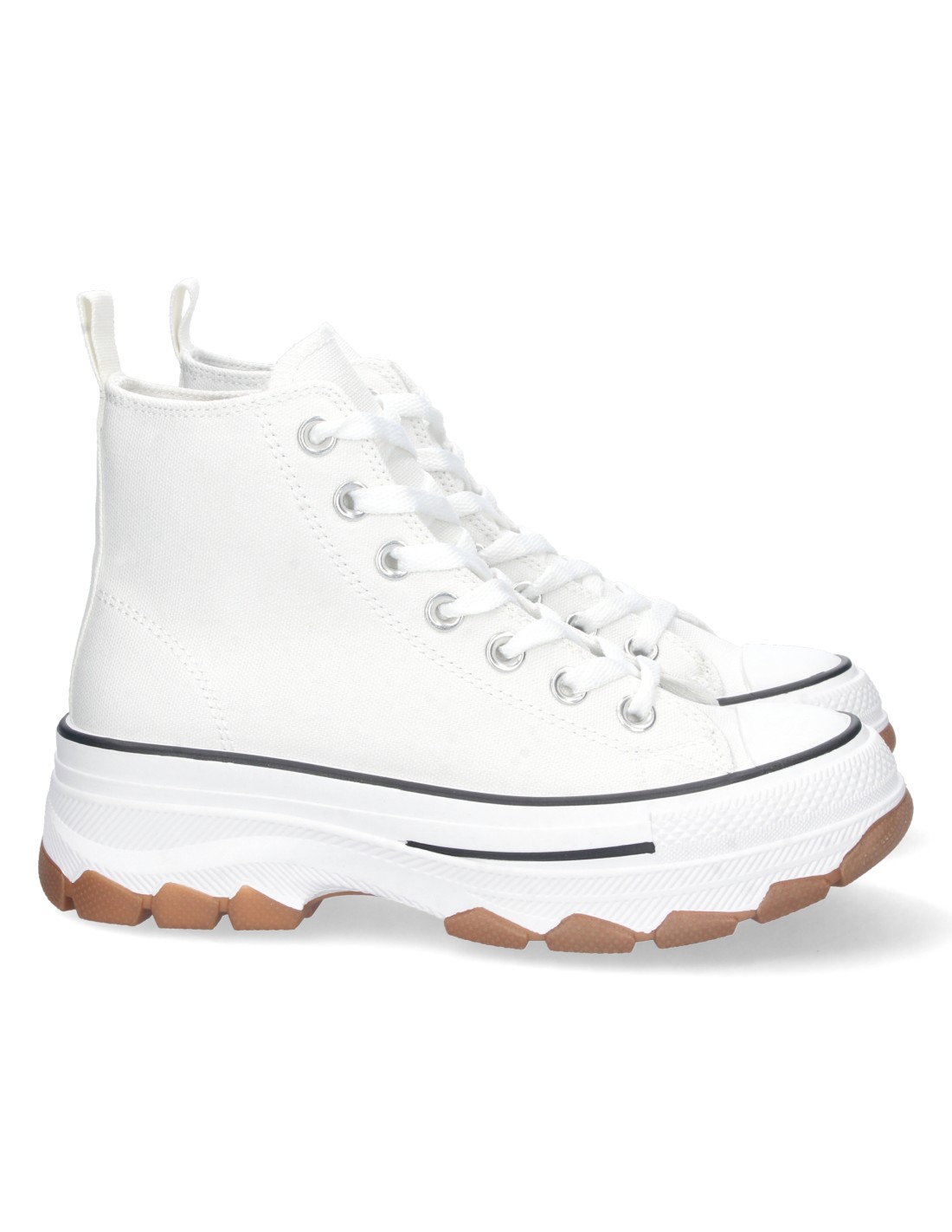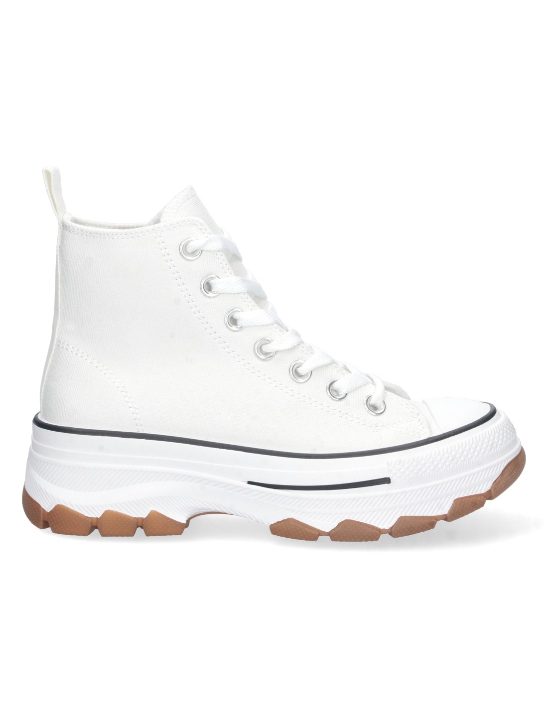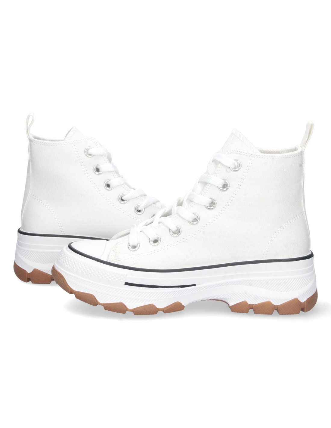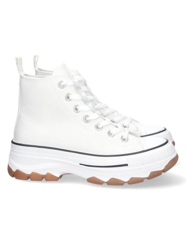 Zapatilla Abotinada de Plataforma para Mujer, Comoda, Estilo Bamba, Material de Lona, y Cierre de Cordones