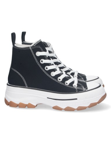 Zapatilla Abotinada de Plataforma para Mujer, Comoda, Estilo Bamba, Material de Lona, y Cierre de Cordones