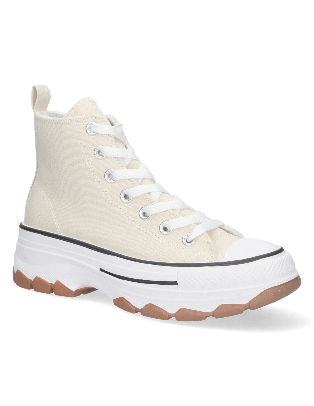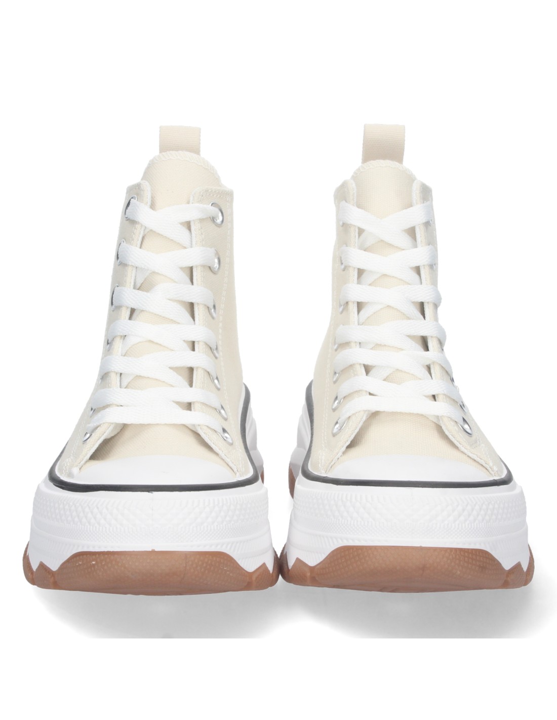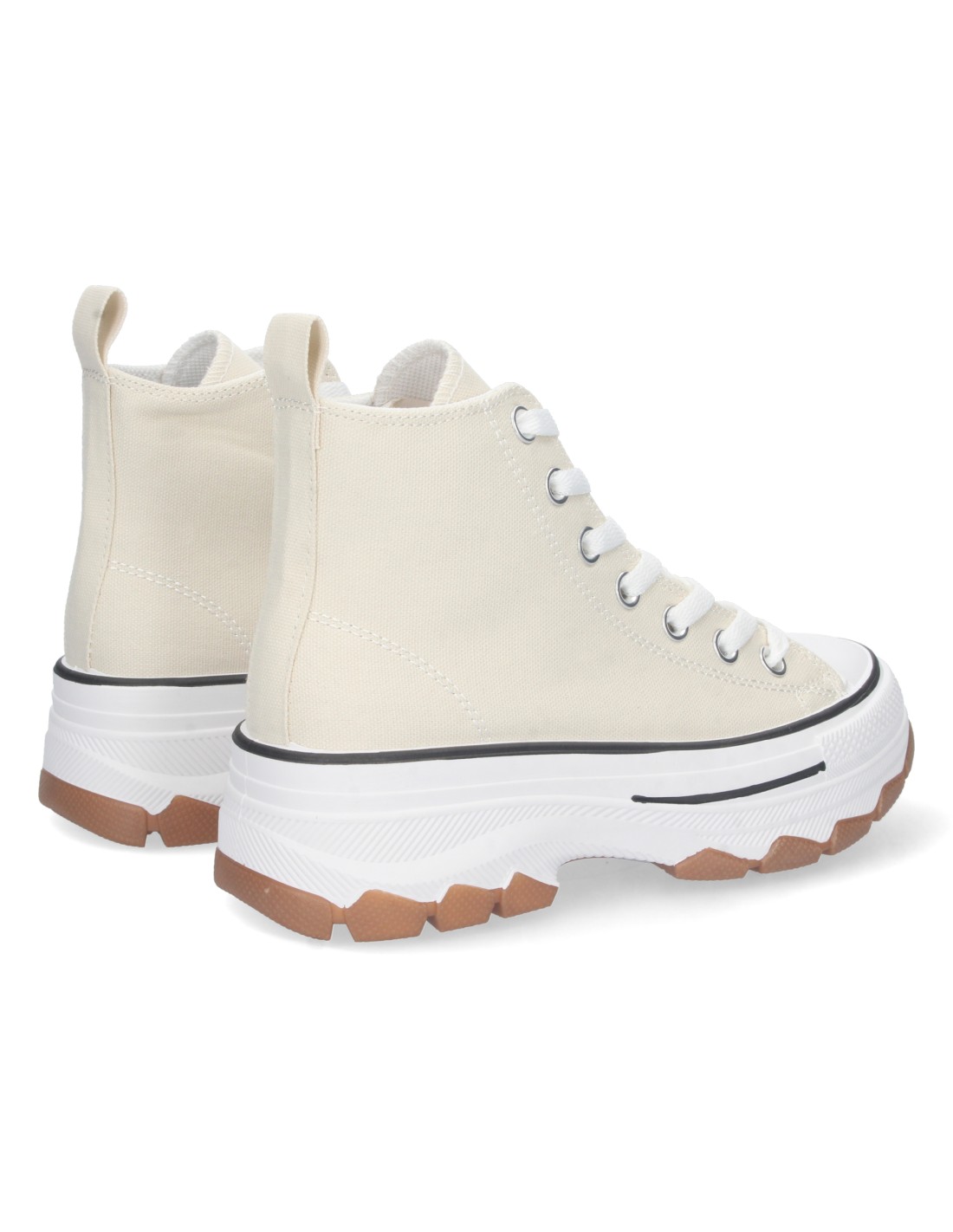 Zapatilla Abotinada de Plataforma para Mujer, Comoda, Estilo Bamba, Material de Lona, y Cierre de Cordones