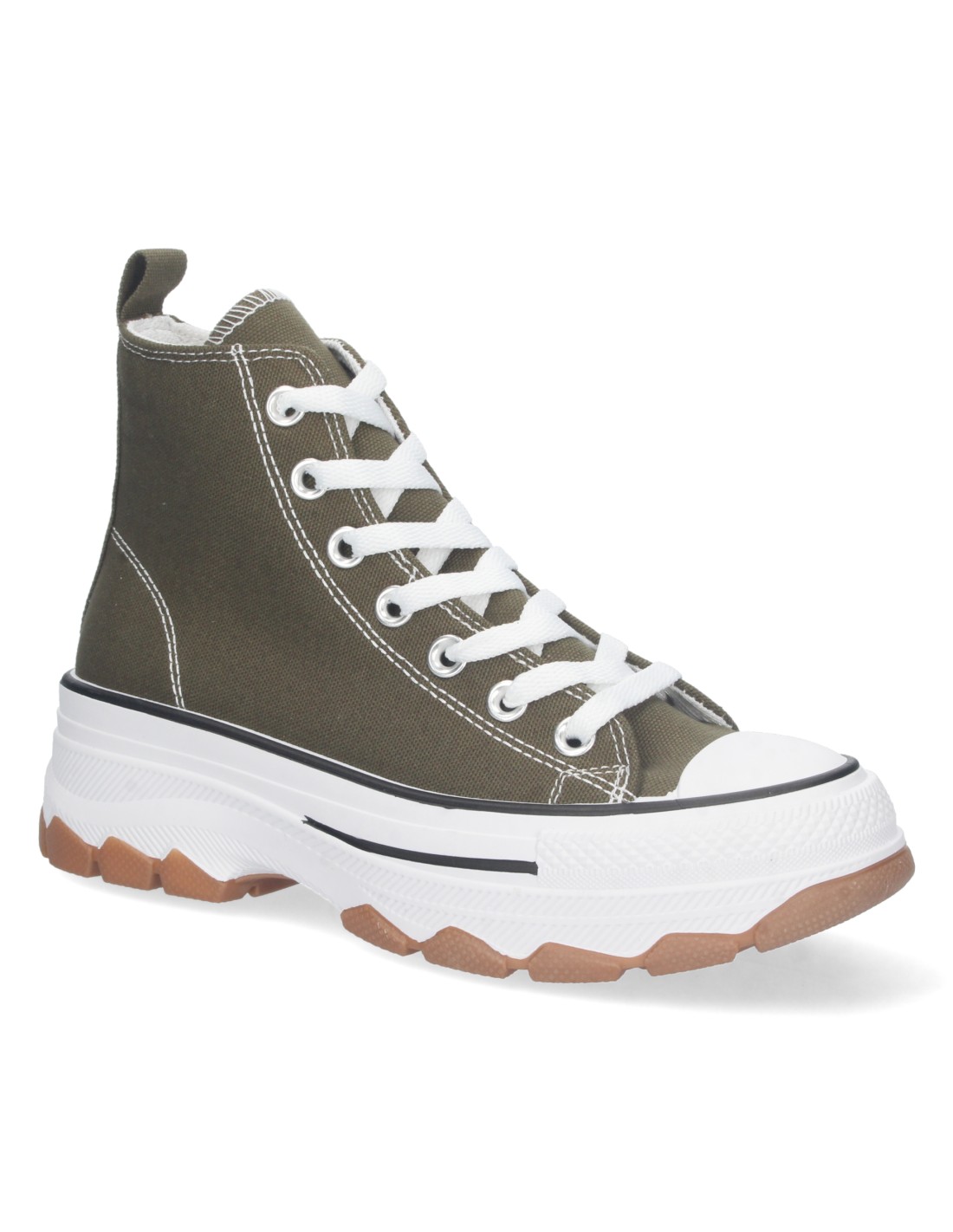 Zapatilla Abotinada de Plataforma para Mujer, Comoda, Estilo Bamba, Material de Lona, y Cierre de Cordones