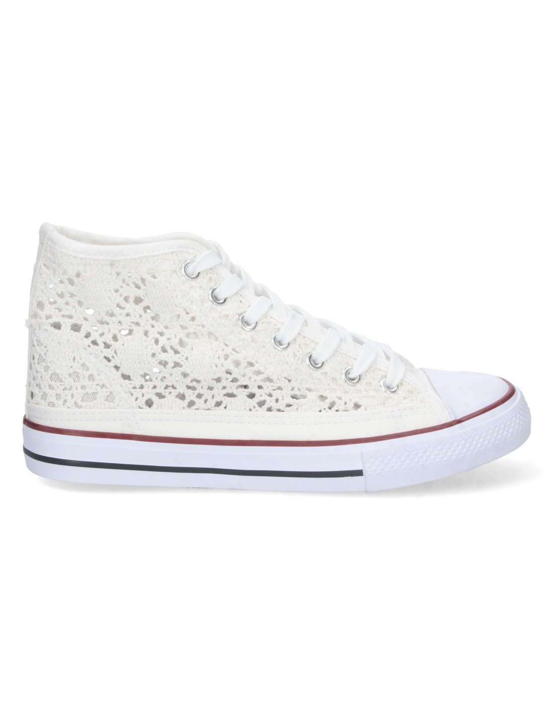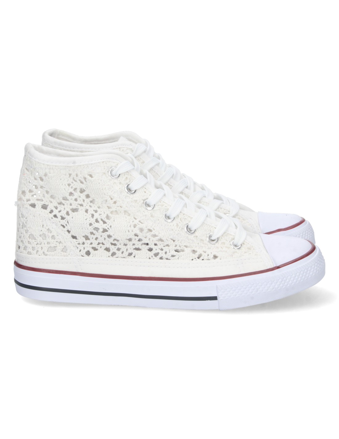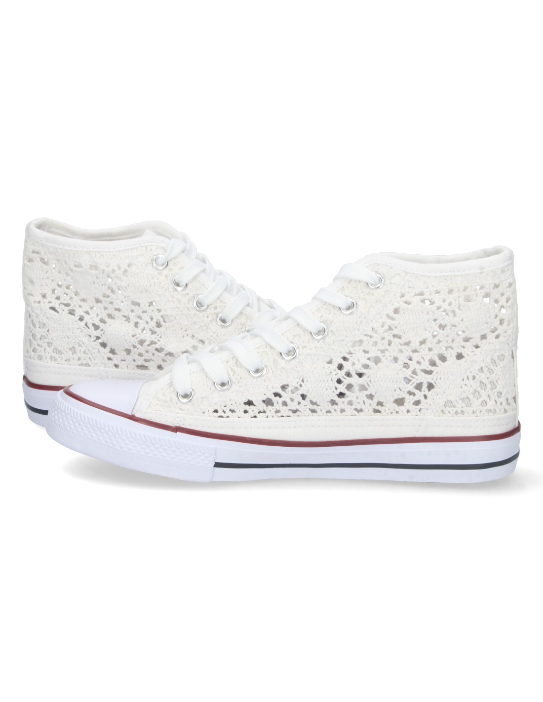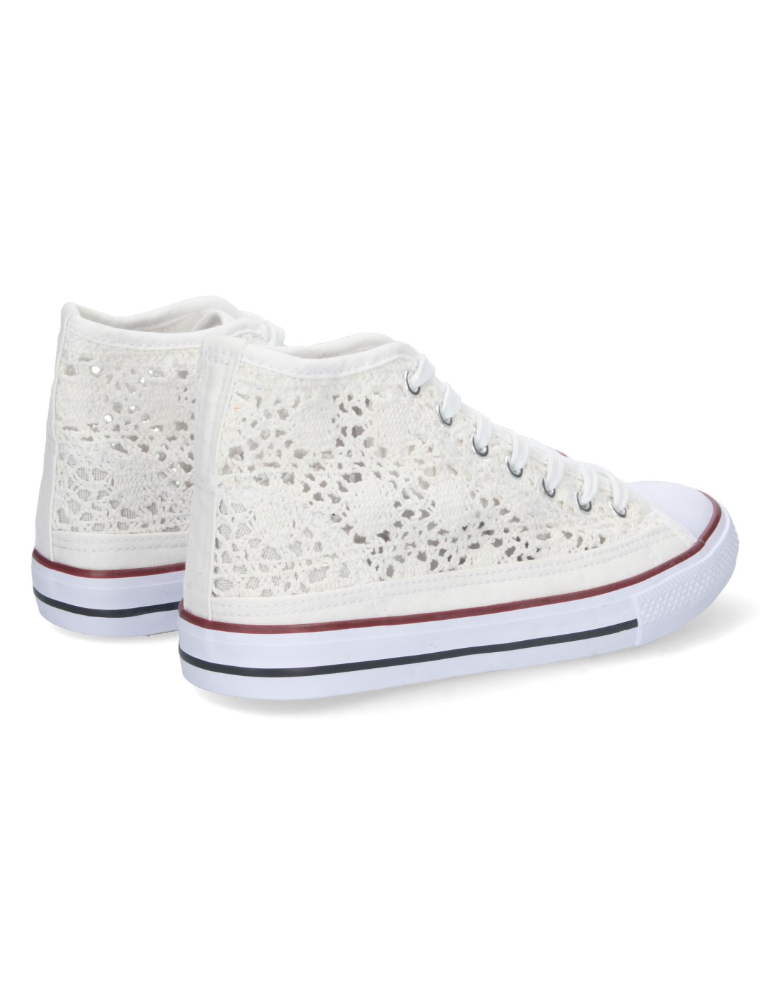 Zapatilla Abotinada para Mujer, Comoda, con Material Bordado y Calado, Transpirable, y Cierre de Cordones