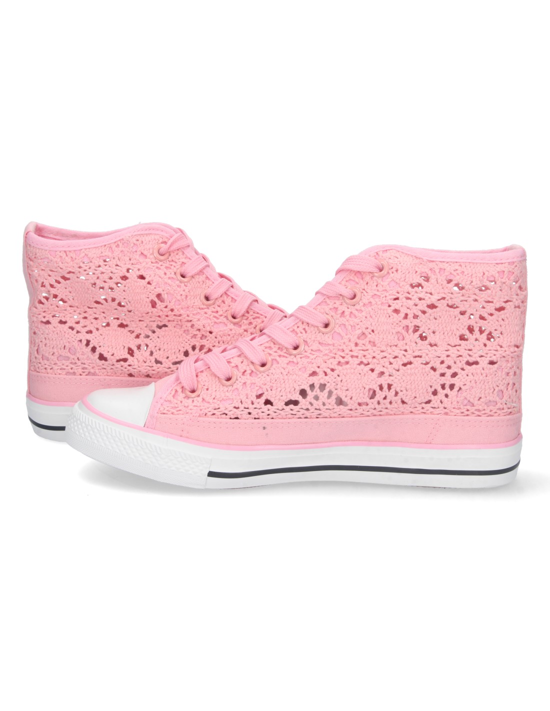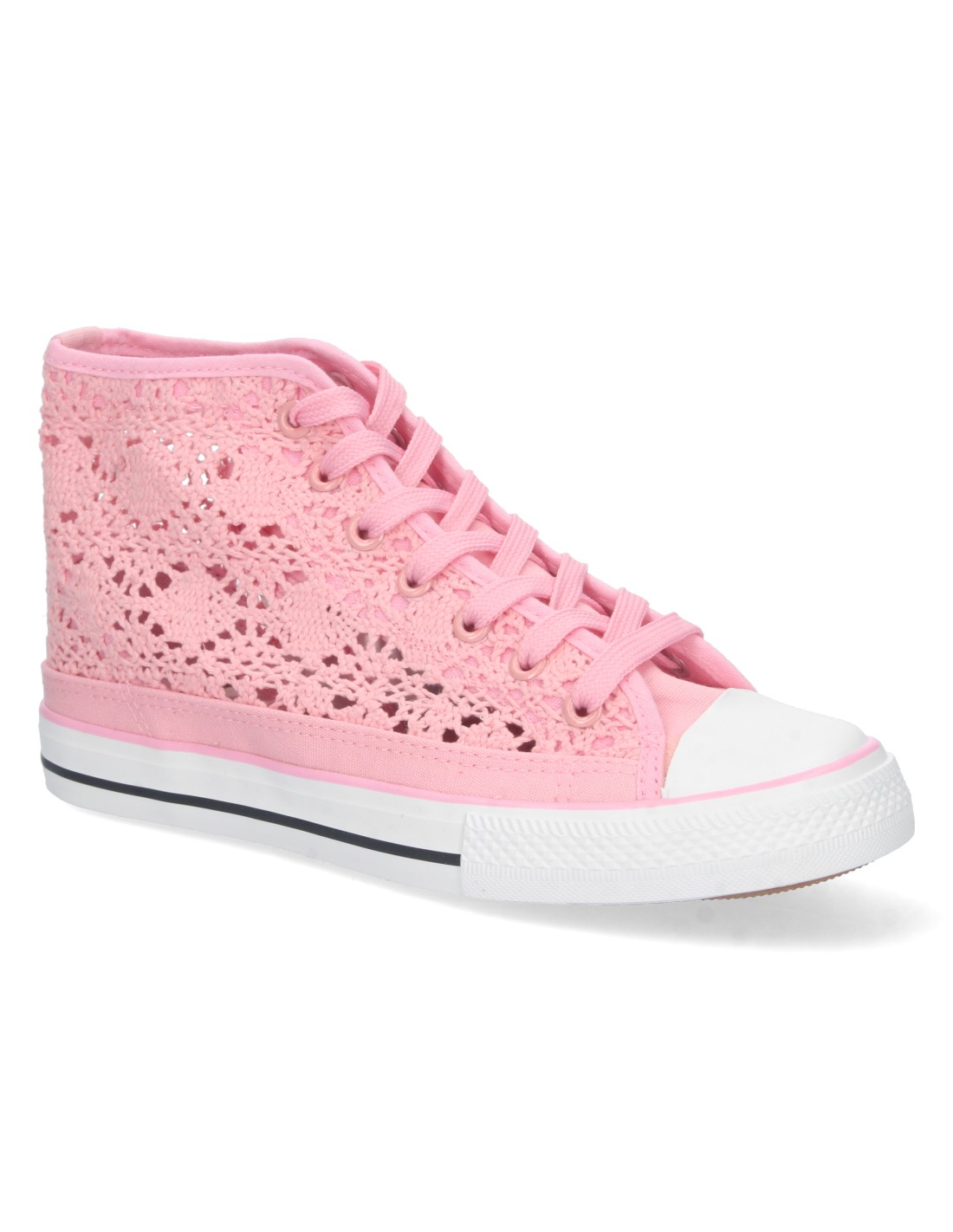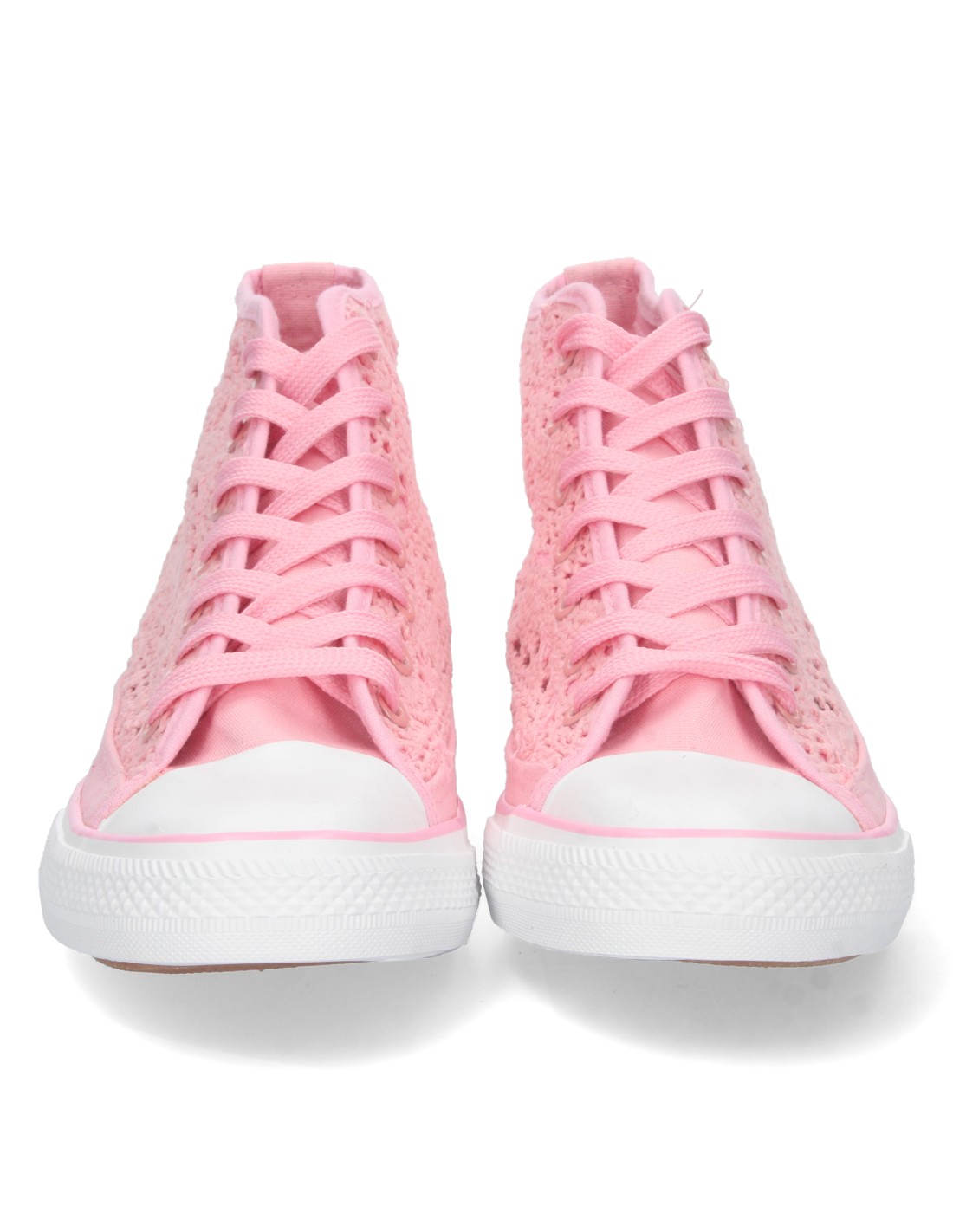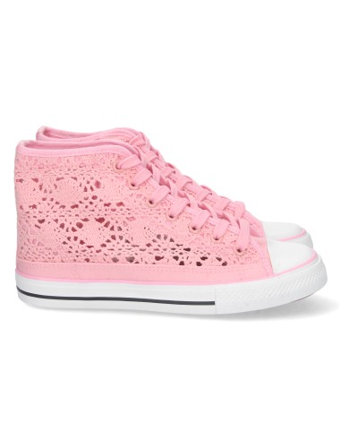 Zapatilla Abotinada para Mujer, Comoda, con Material Bordado y Calado, Transpirable, y Cierre de Cordones