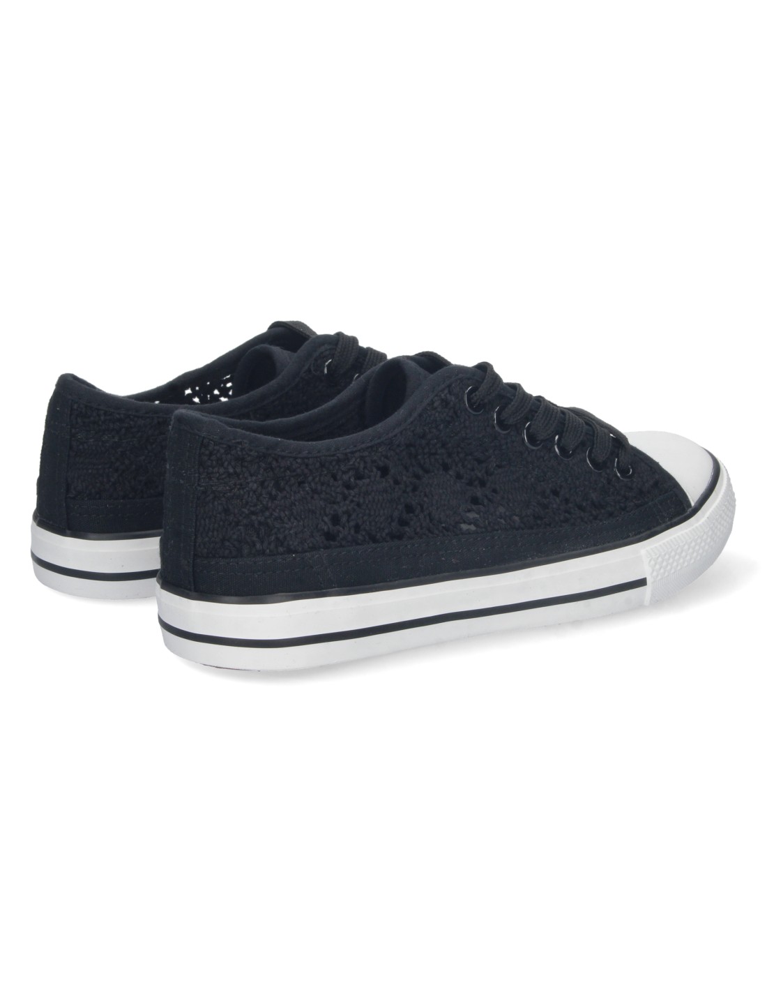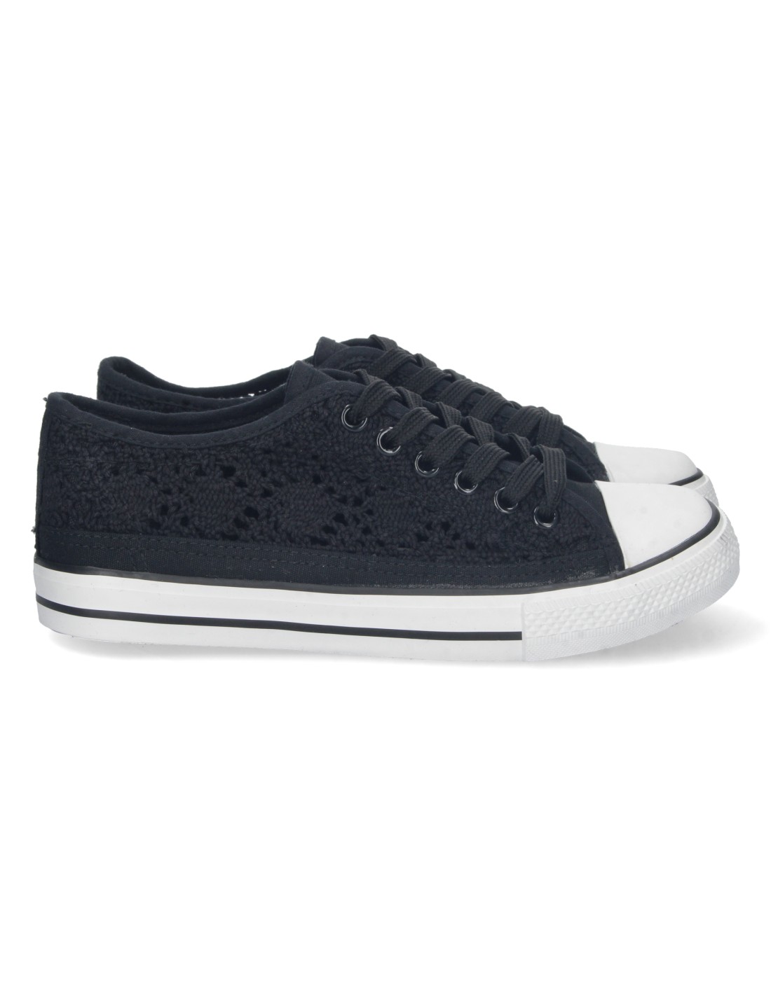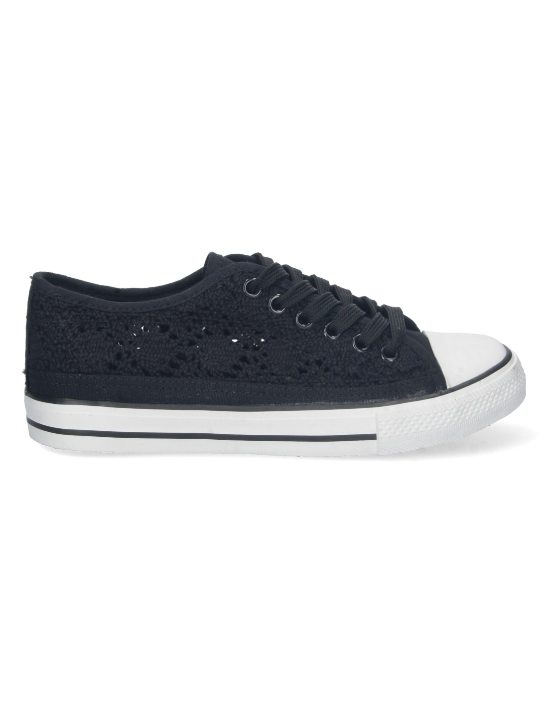 Zapatilla Plana para Mujer, Comoda, Estilo Bamba, con Material Bordado y Calado, Transpirable, y Cierre de Cordones