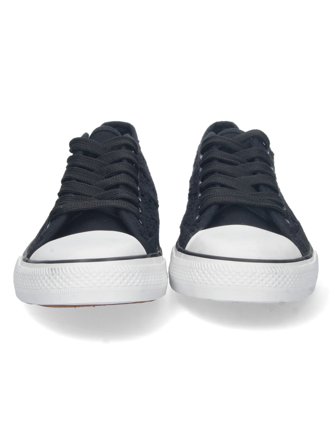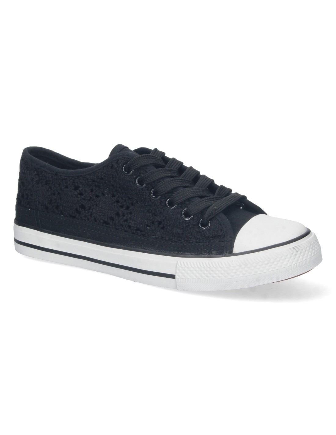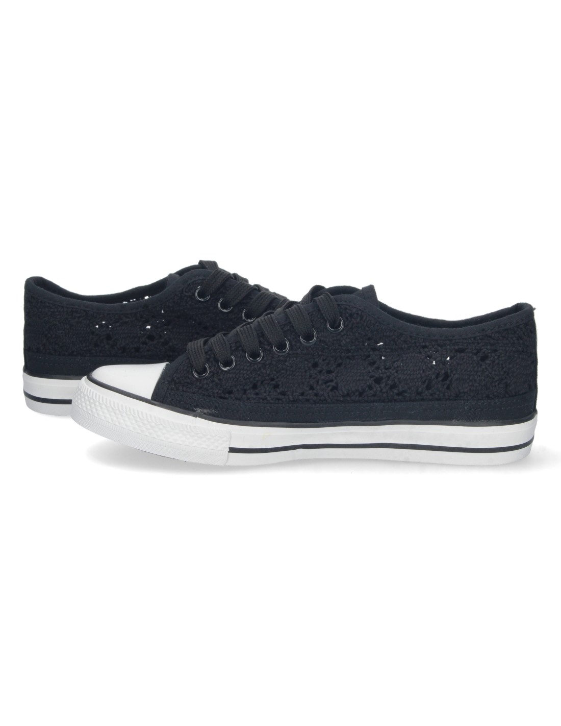 Zapatilla Plana para Mujer, Comoda, Estilo Bamba, con Material Bordado y Calado, Transpirable, y Cierre de Cordones