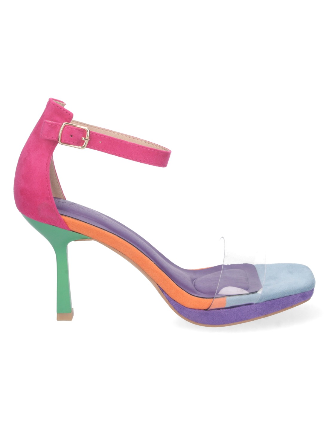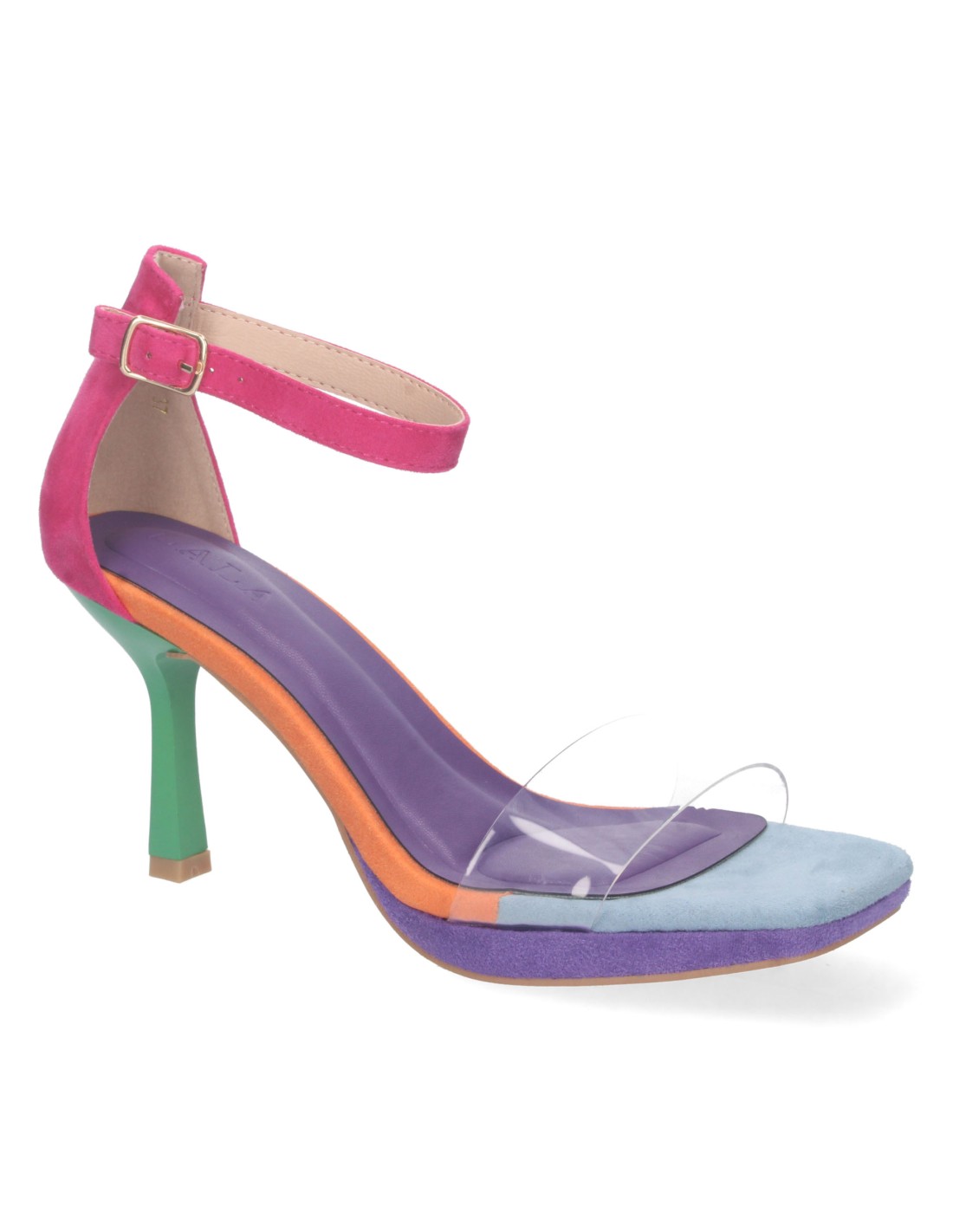 Sandalia de Tacon Fino Multicolor con Hebilla
