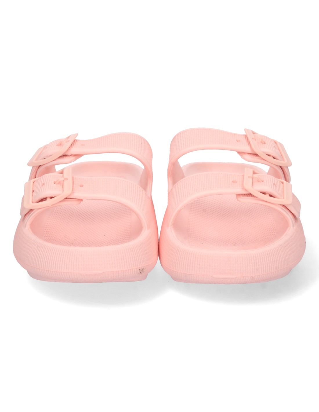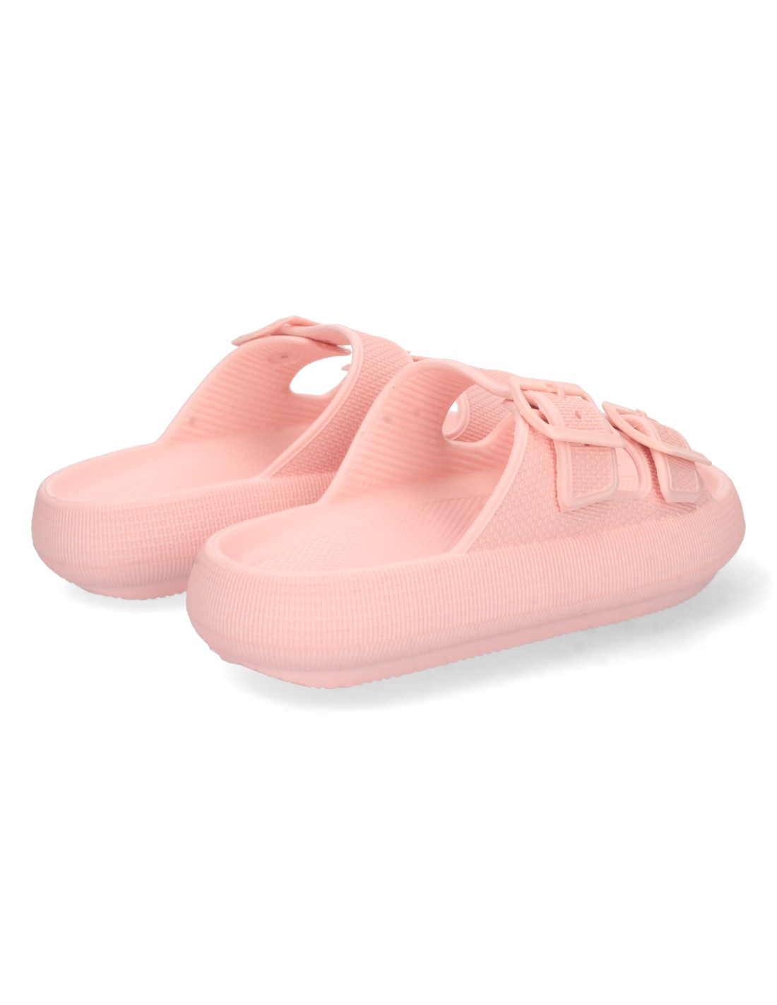 Sandalia Plana para Mujer, Comoda y Acolchada, Doble Pala con Cierre de Hebilla, y Talon Abierto