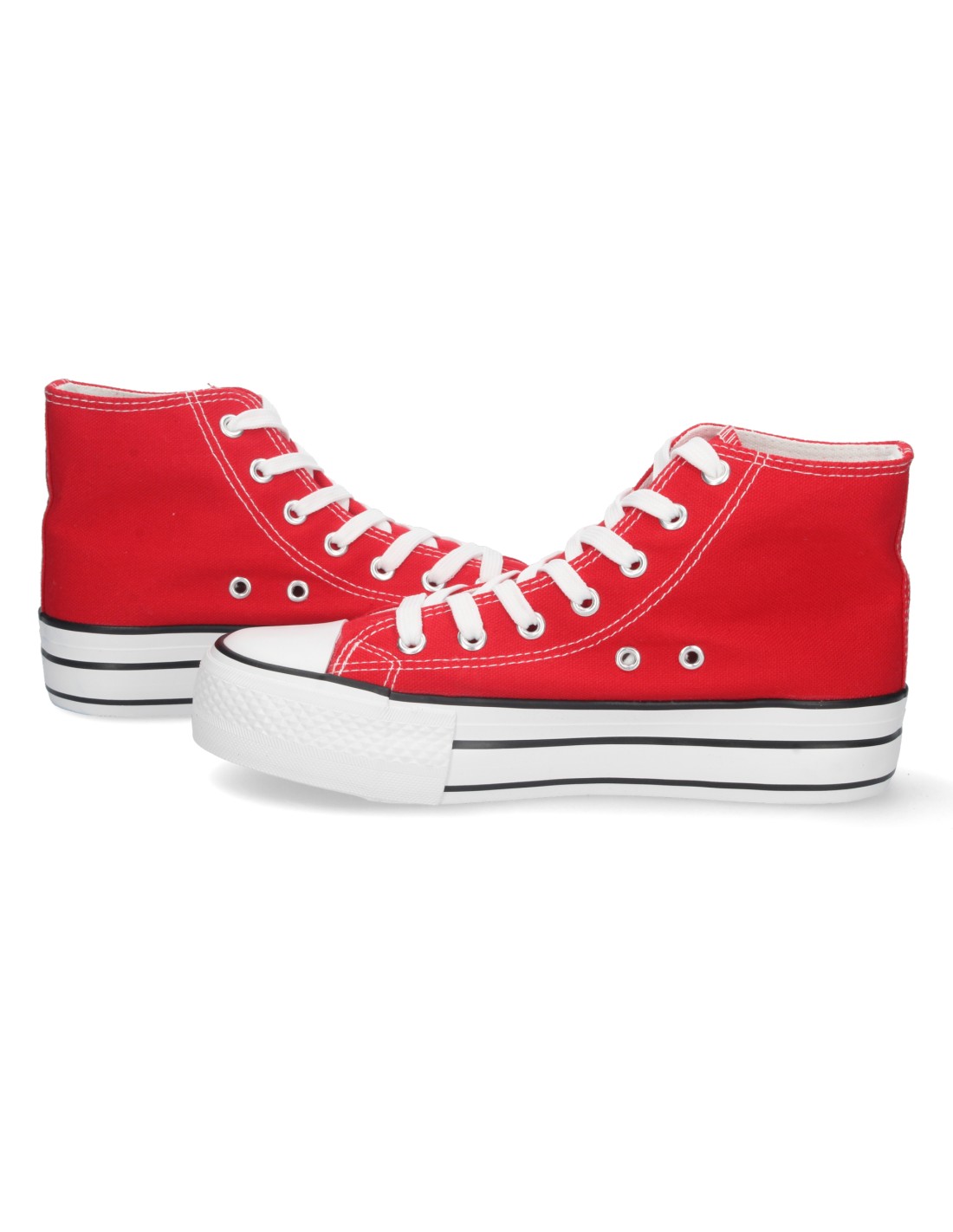 Zapatilla Abotinada de Mujer, de Doble Suela, Comoda, con Material de Lona, Estilo Bamba Casual, y Cierre de Cordones