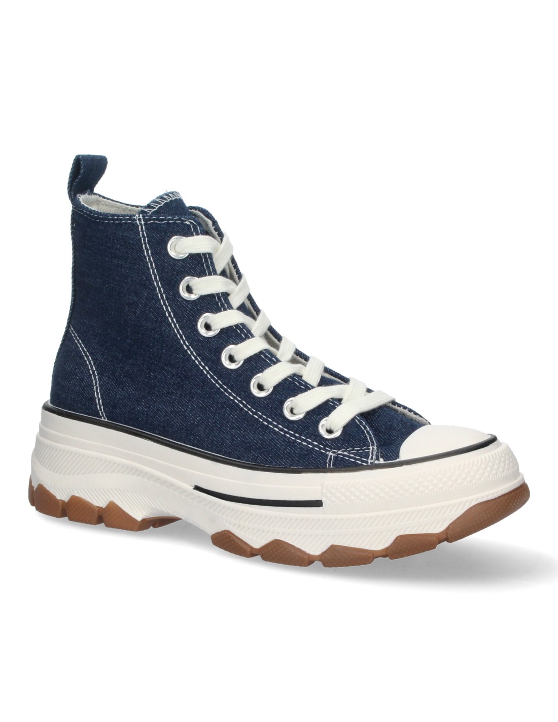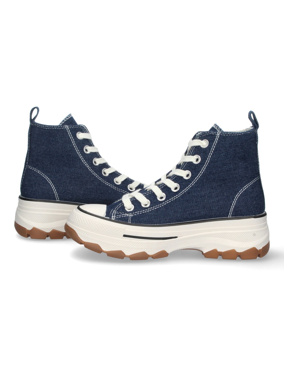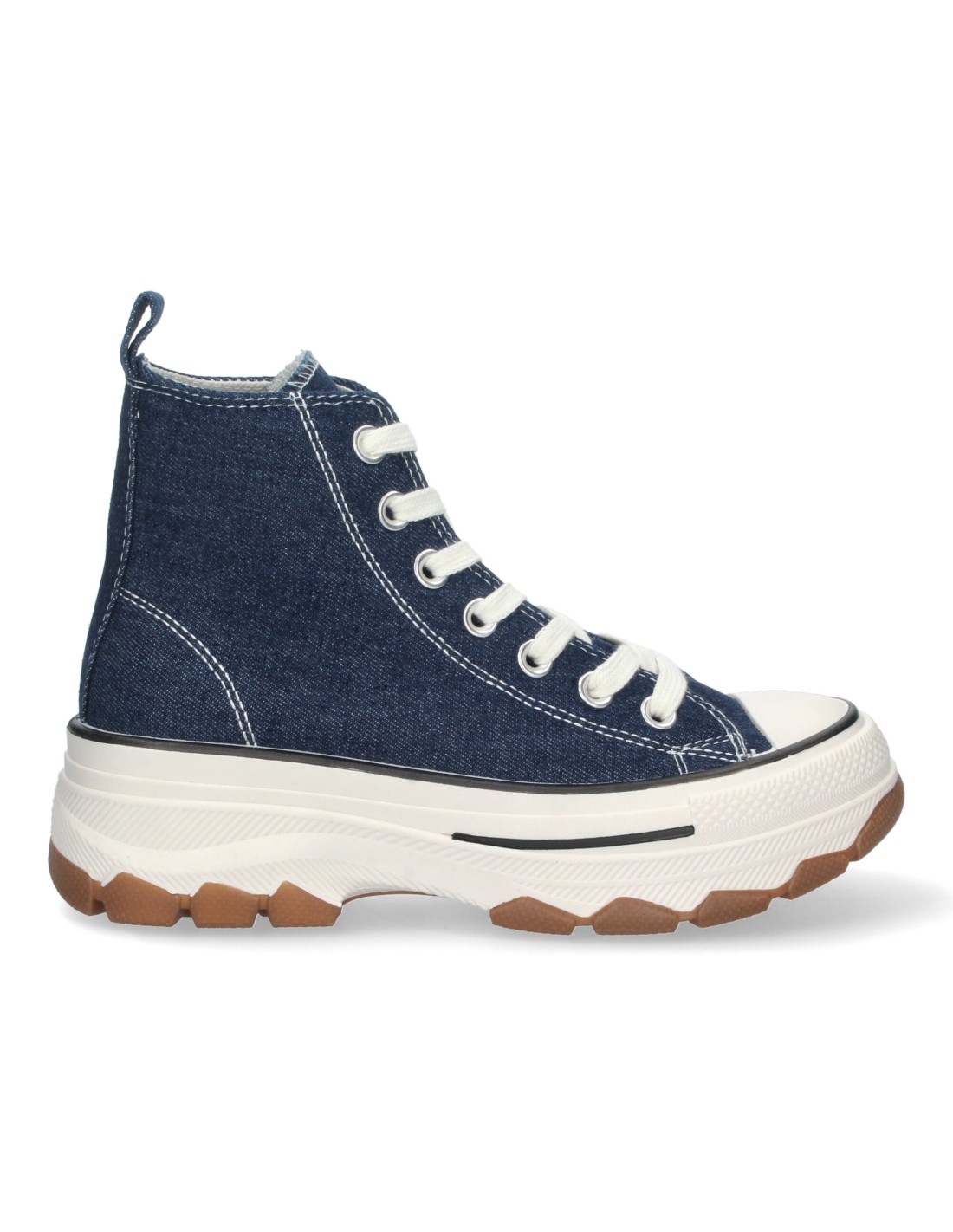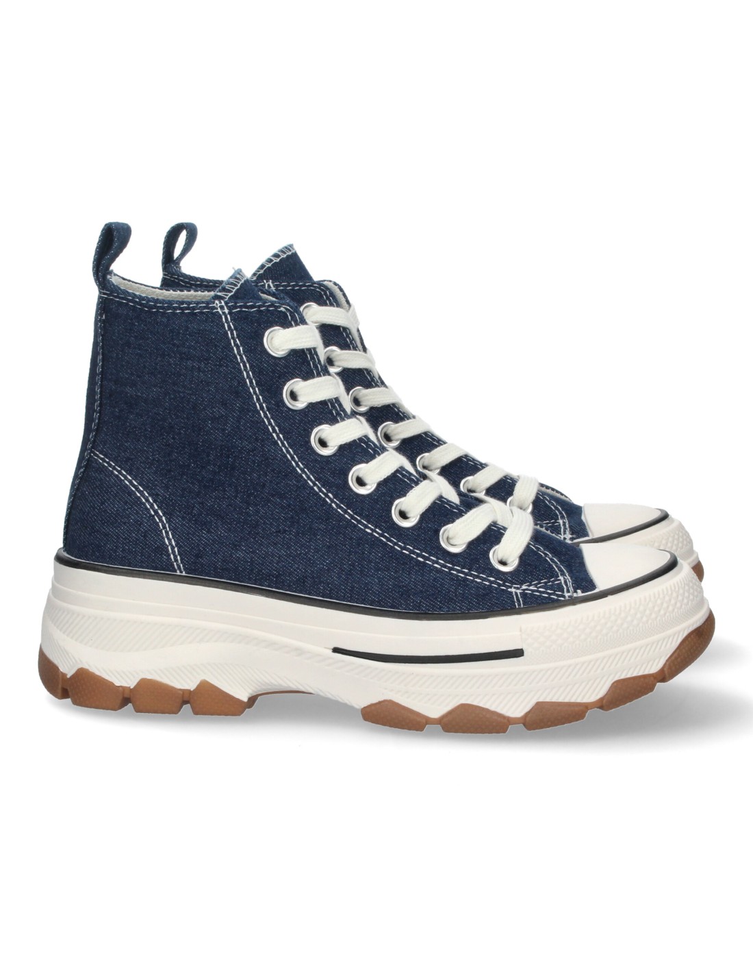 Zapatilla Abotinada de Plataforma para Mujer, Comoda, Estilo Bamba, Material de Lona, y Cierre de Cordones