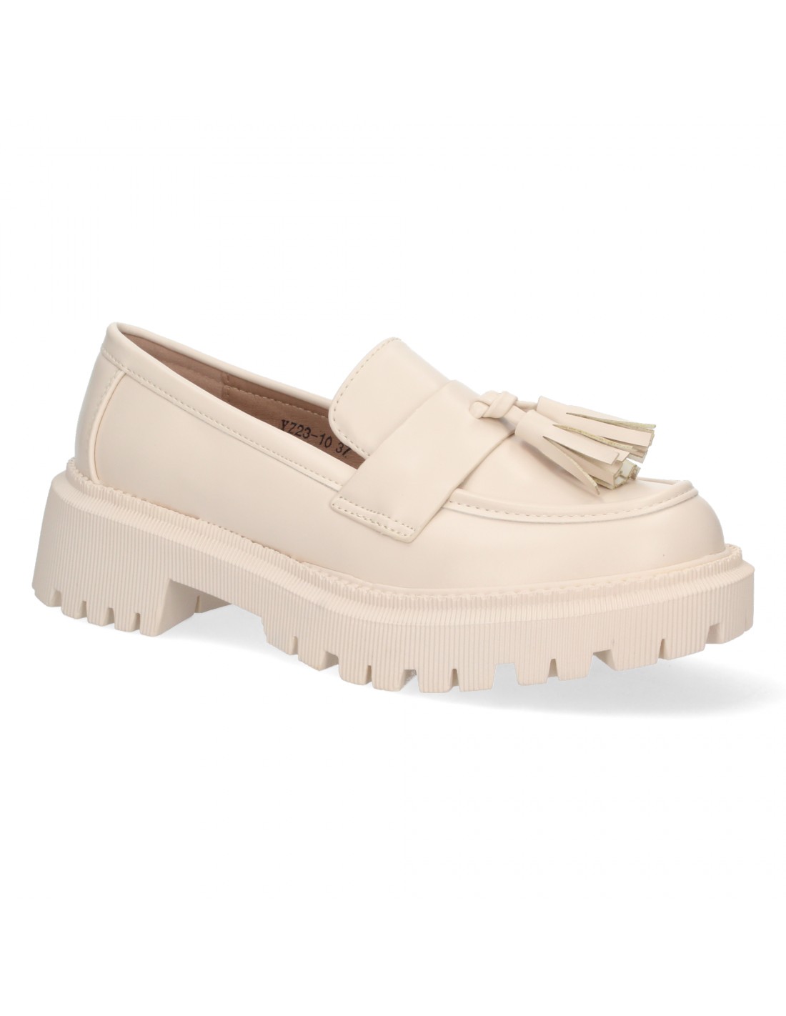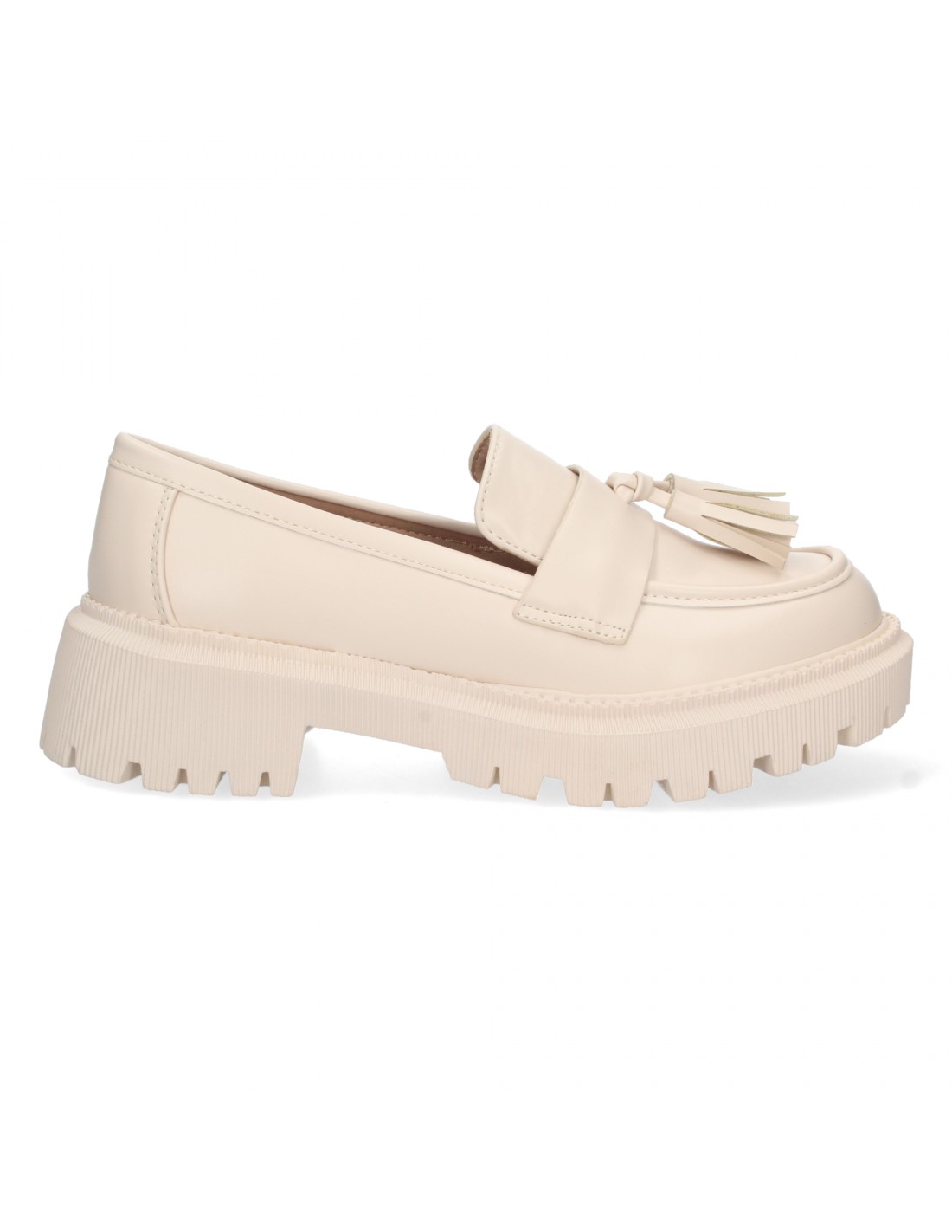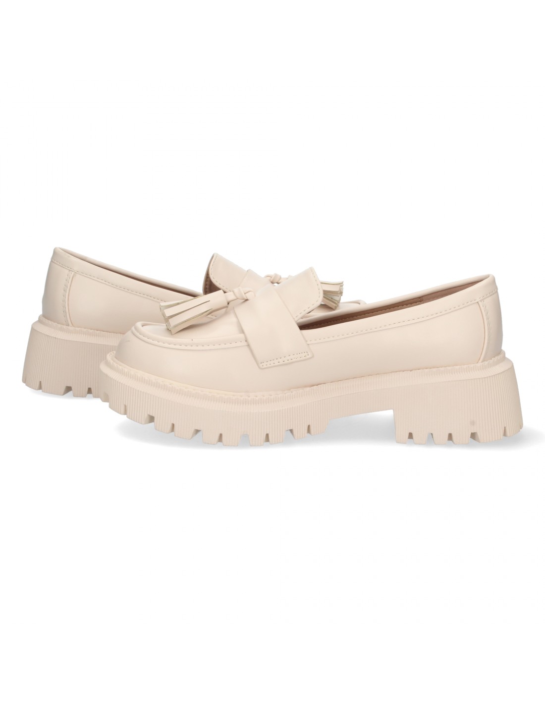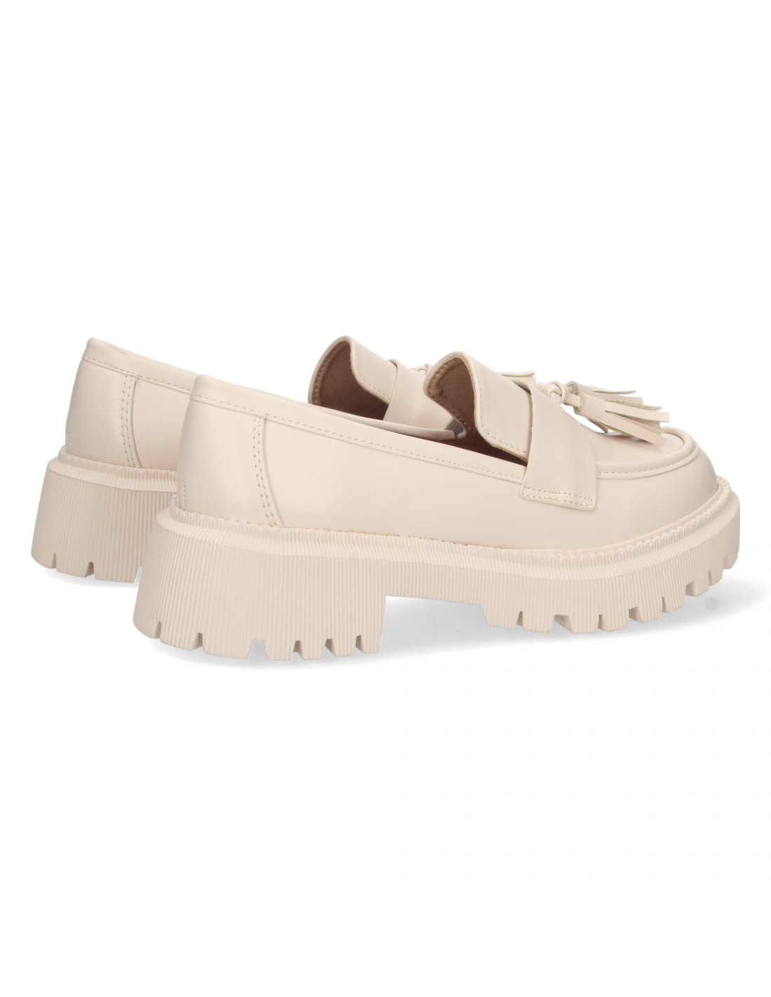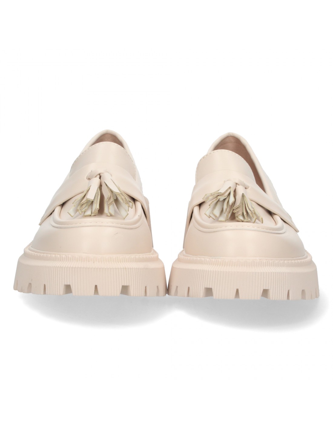 Mocasin de Mujer, Comodo, con Suela Dentada, Antifaz con Borlas, sin Cierre, Ajustado al Pie