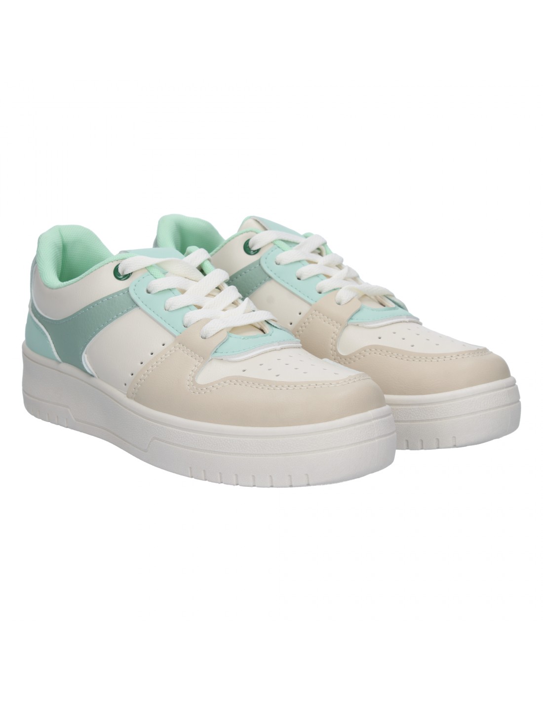 Deportiva plana para mujer con cierre de cordones y colores claros. Temporada otoño invierno 2023
