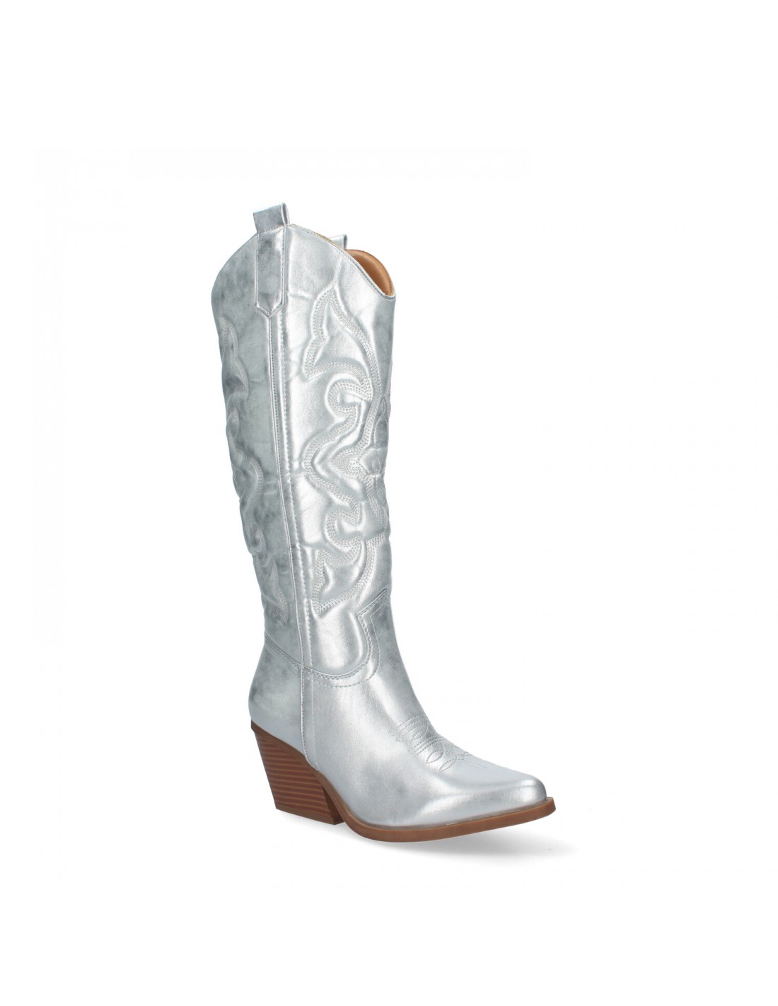 Bota para mujer con tacon cubano con grabado en caña y en la pala estilo cowboy