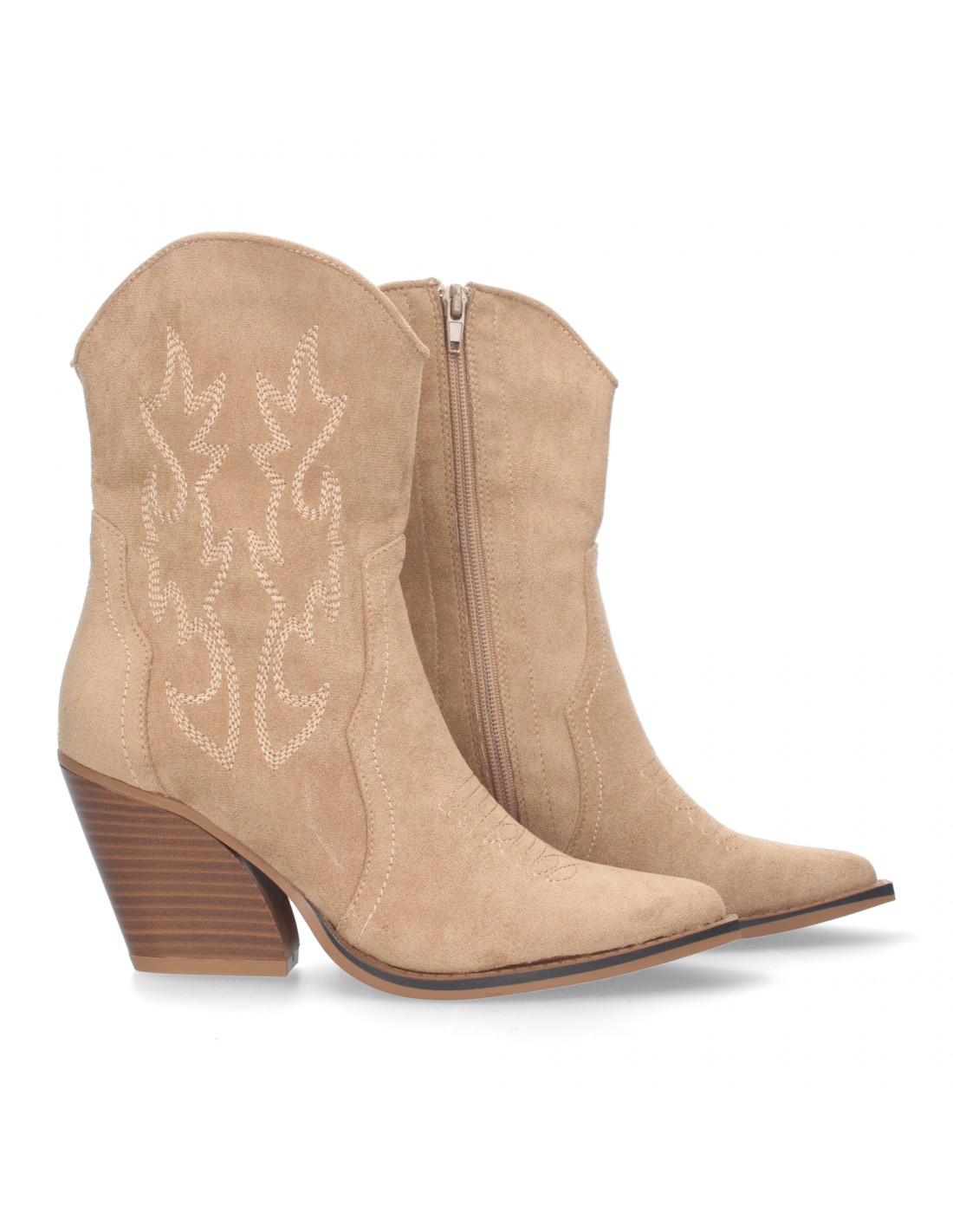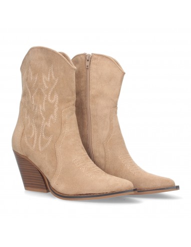 Botín Campero con Tacón, Cómodos, Diseño con Bordado en Caña y Empeine y Cierre de Cremallera.