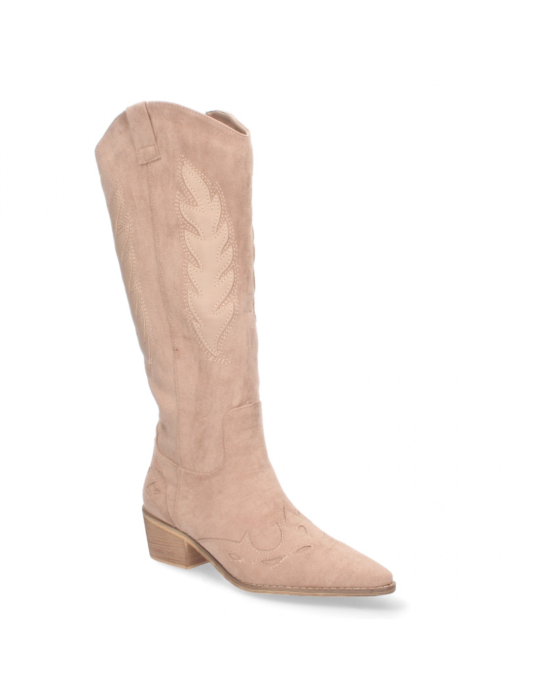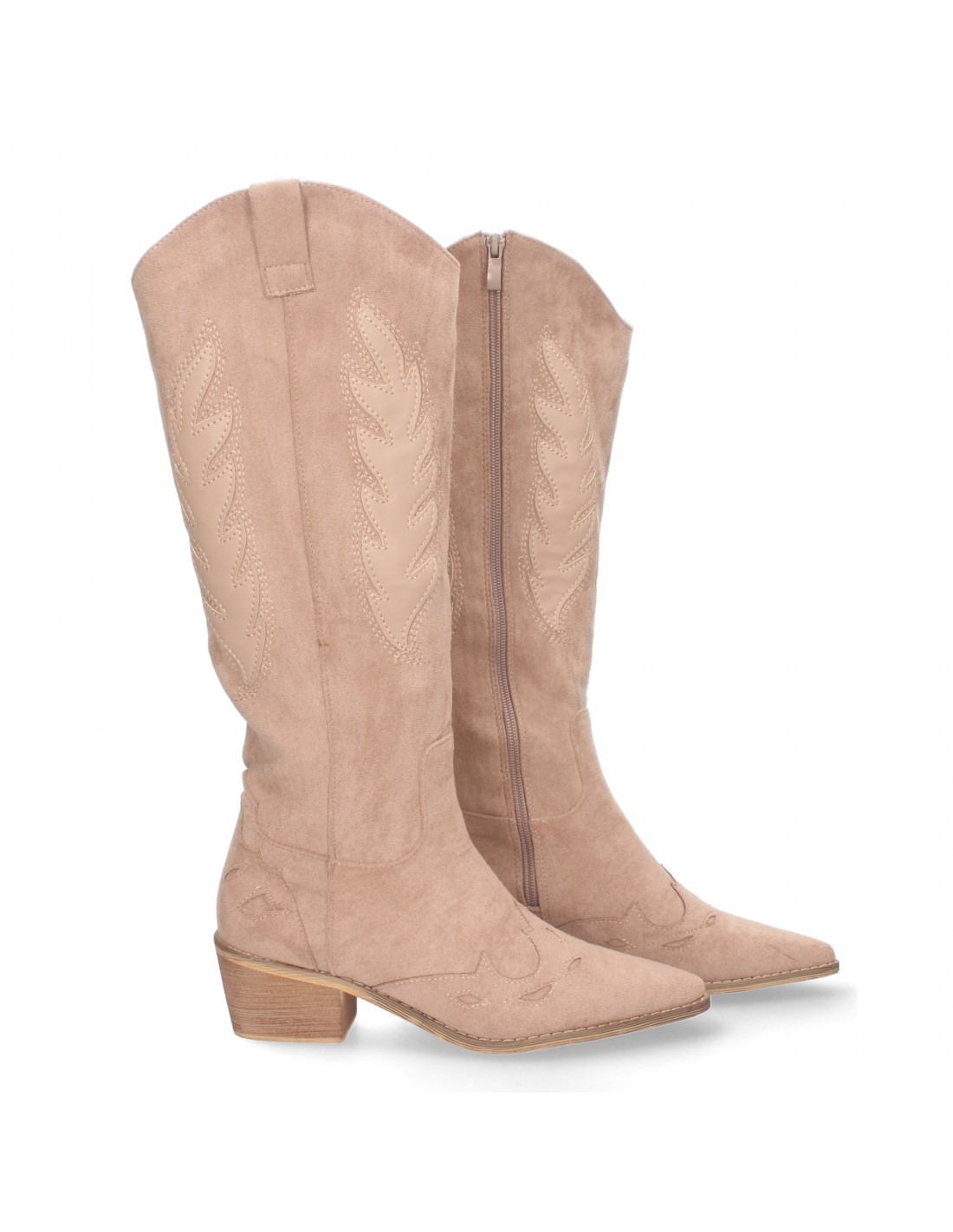 Bota de tacon para mujer comodas, de material aterciopelado, con estampado en la caña