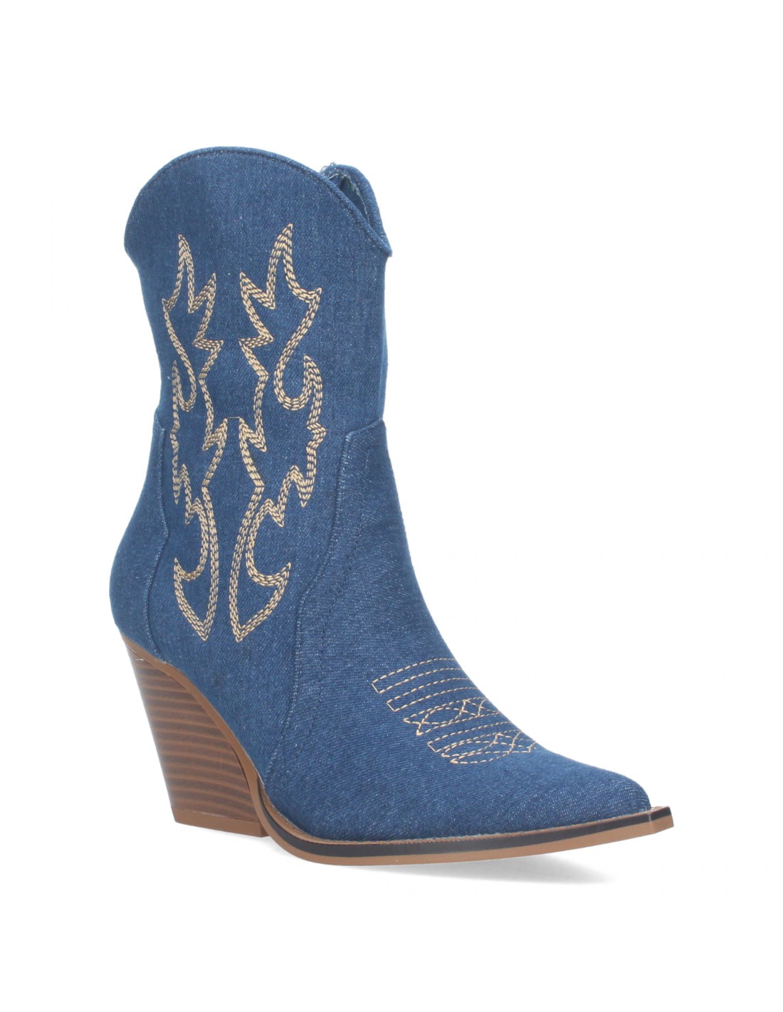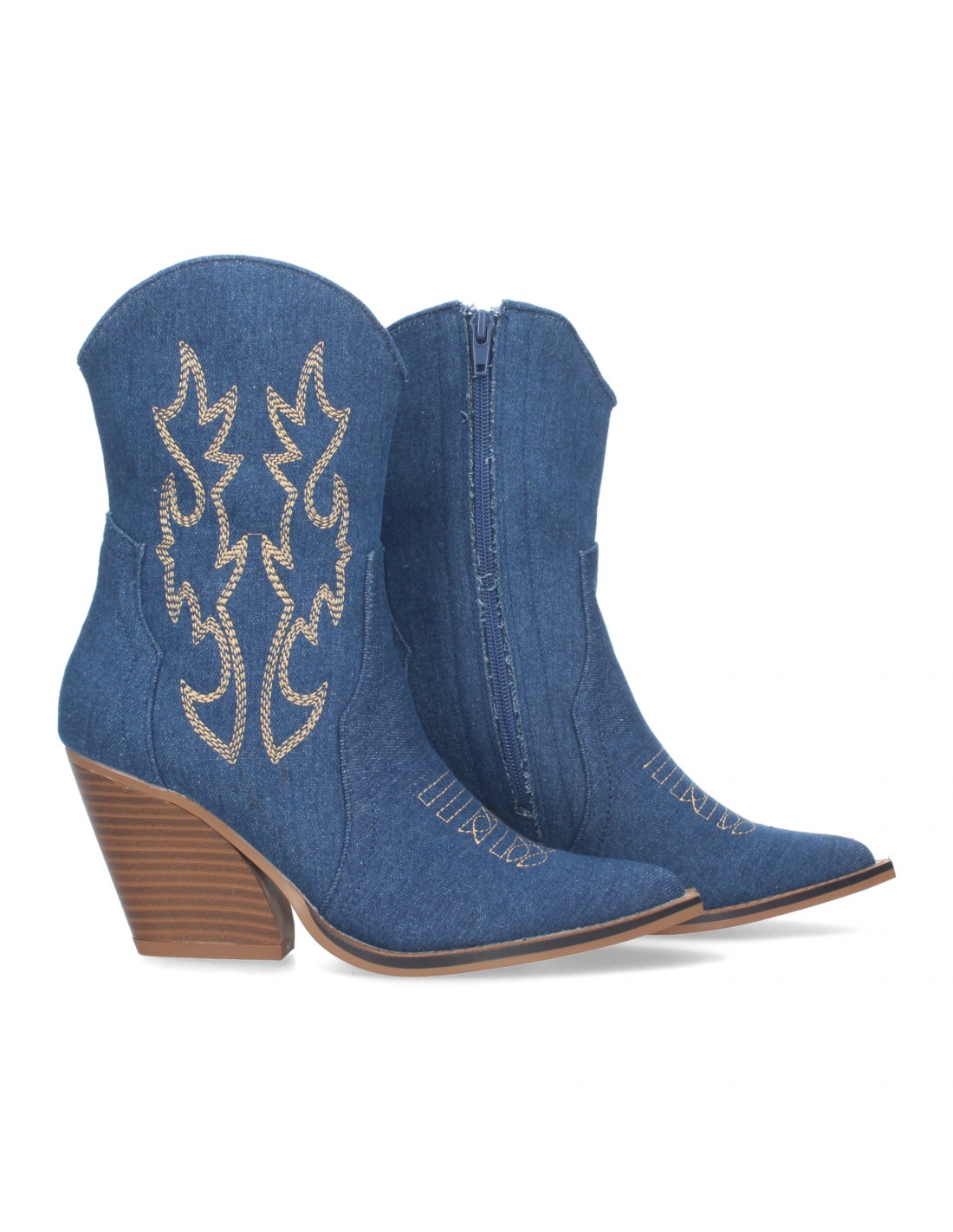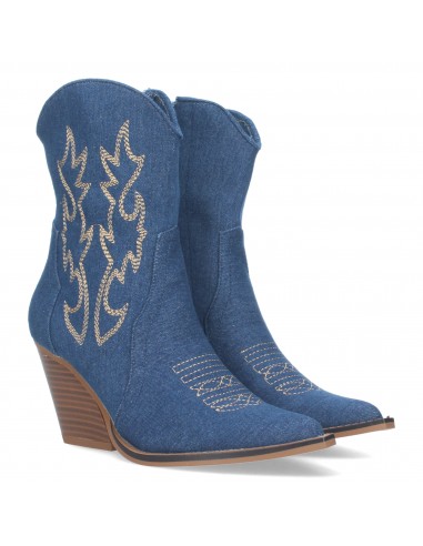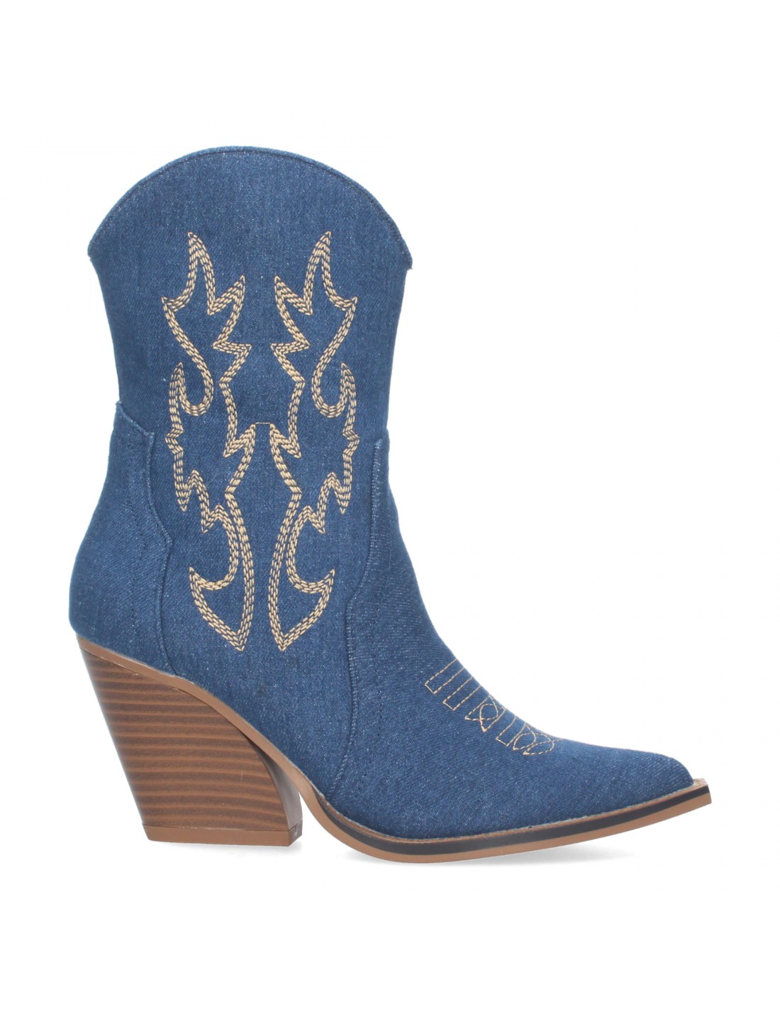 Botín Campero con Tacón, Cómodos, Diseño con Bordado en Caña y Empeine y Cierre de Cremallera.