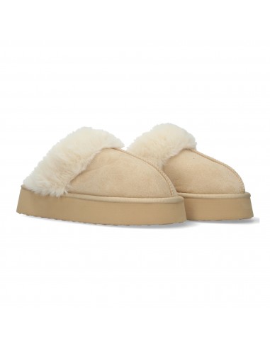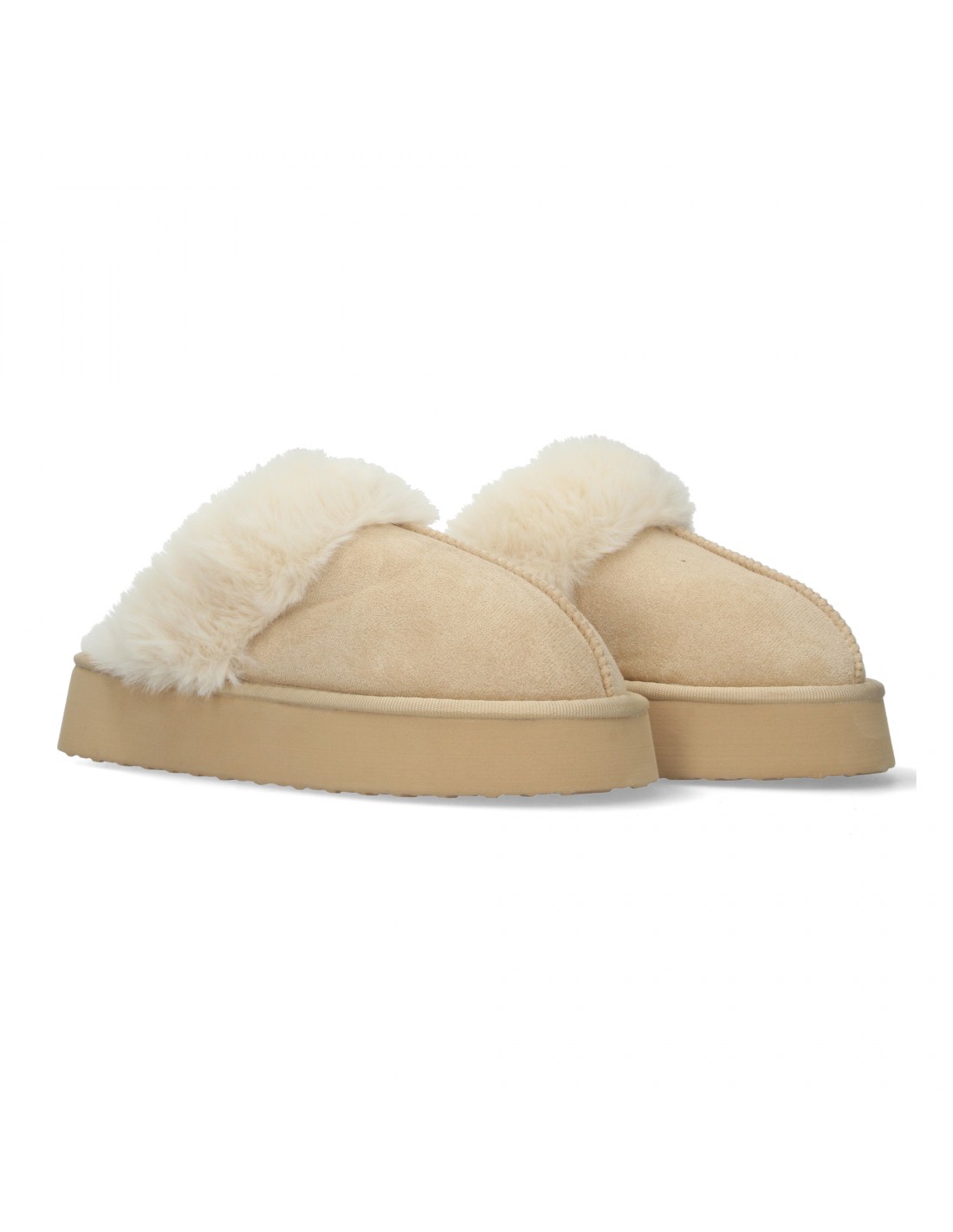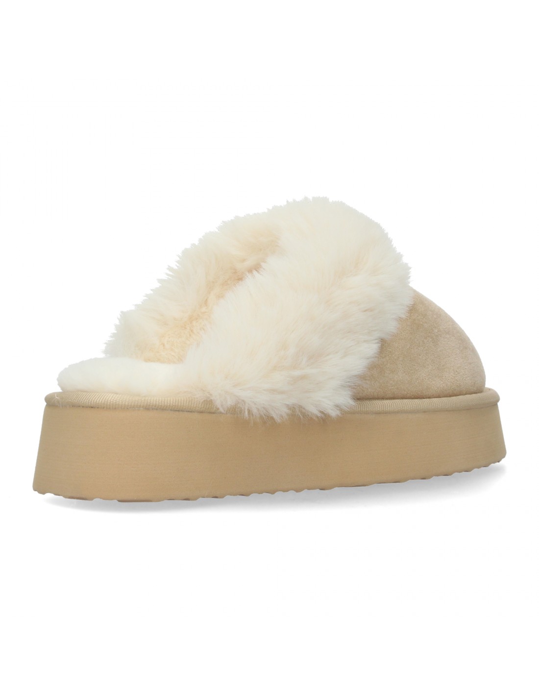 Zapatilla de casa estilo australiano, calidas, forradas de pelo, de plataforma y puntera rendonda.