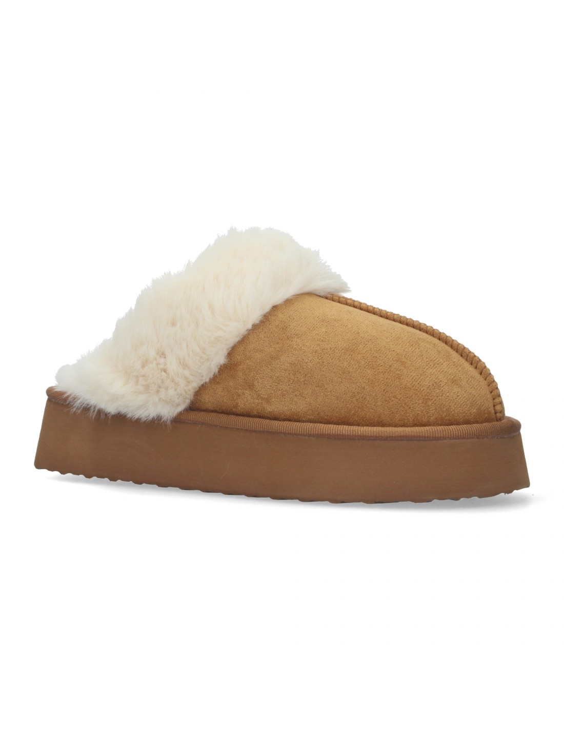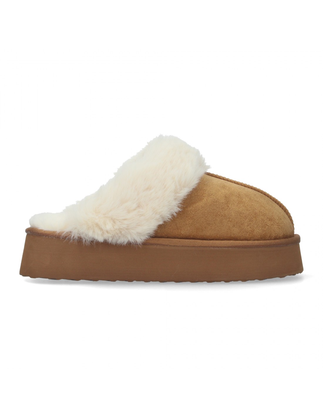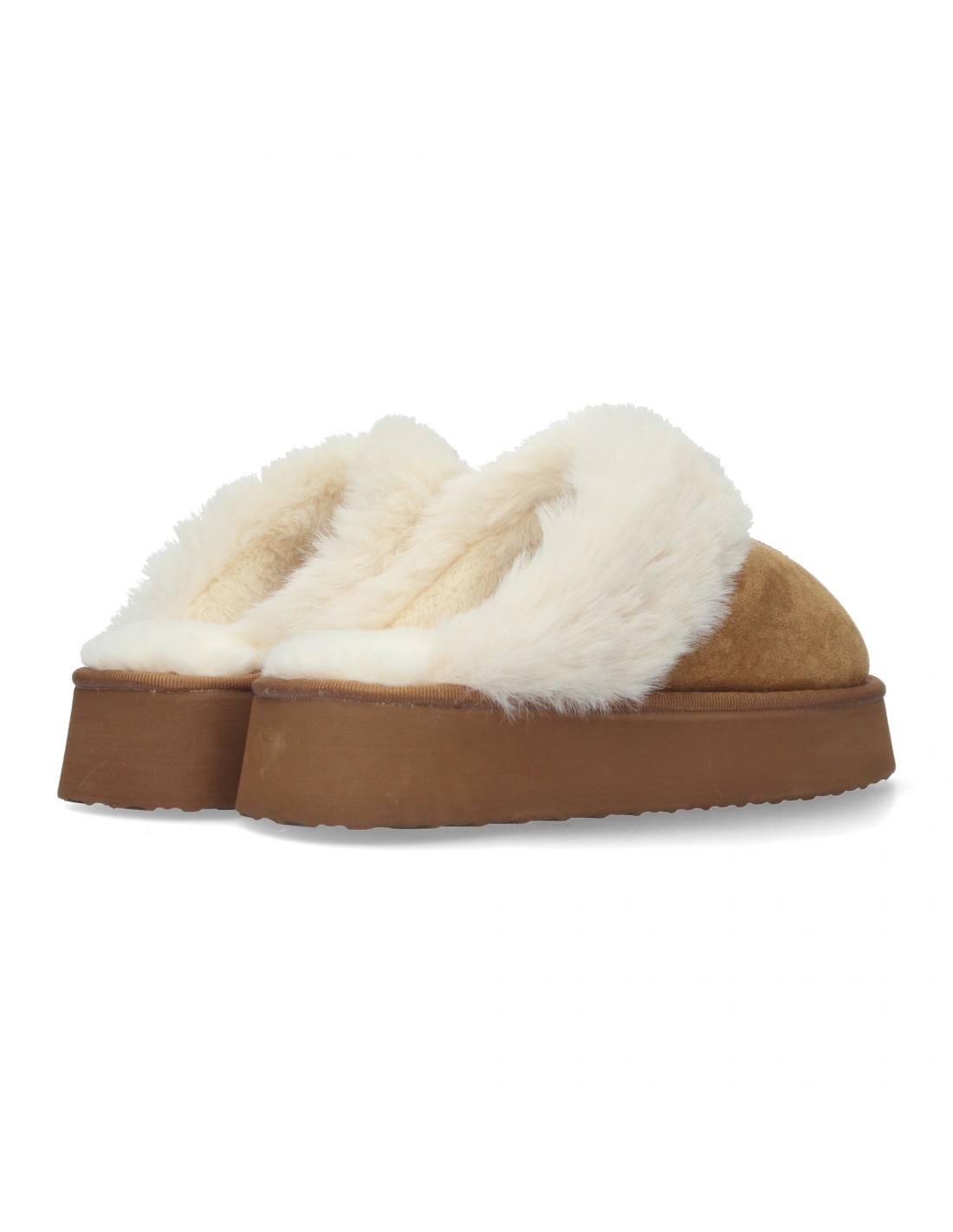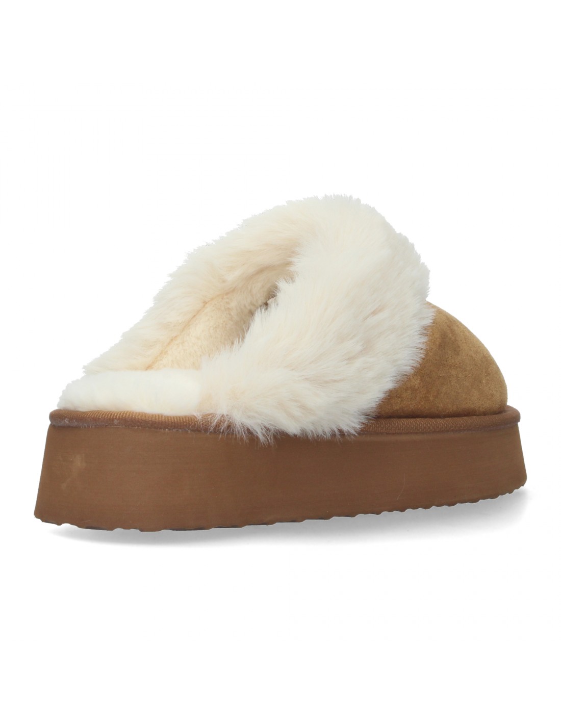 Zapatilla de casa estilo australiano, calidas, forradas de pelo, de plataforma y puntera rendonda.