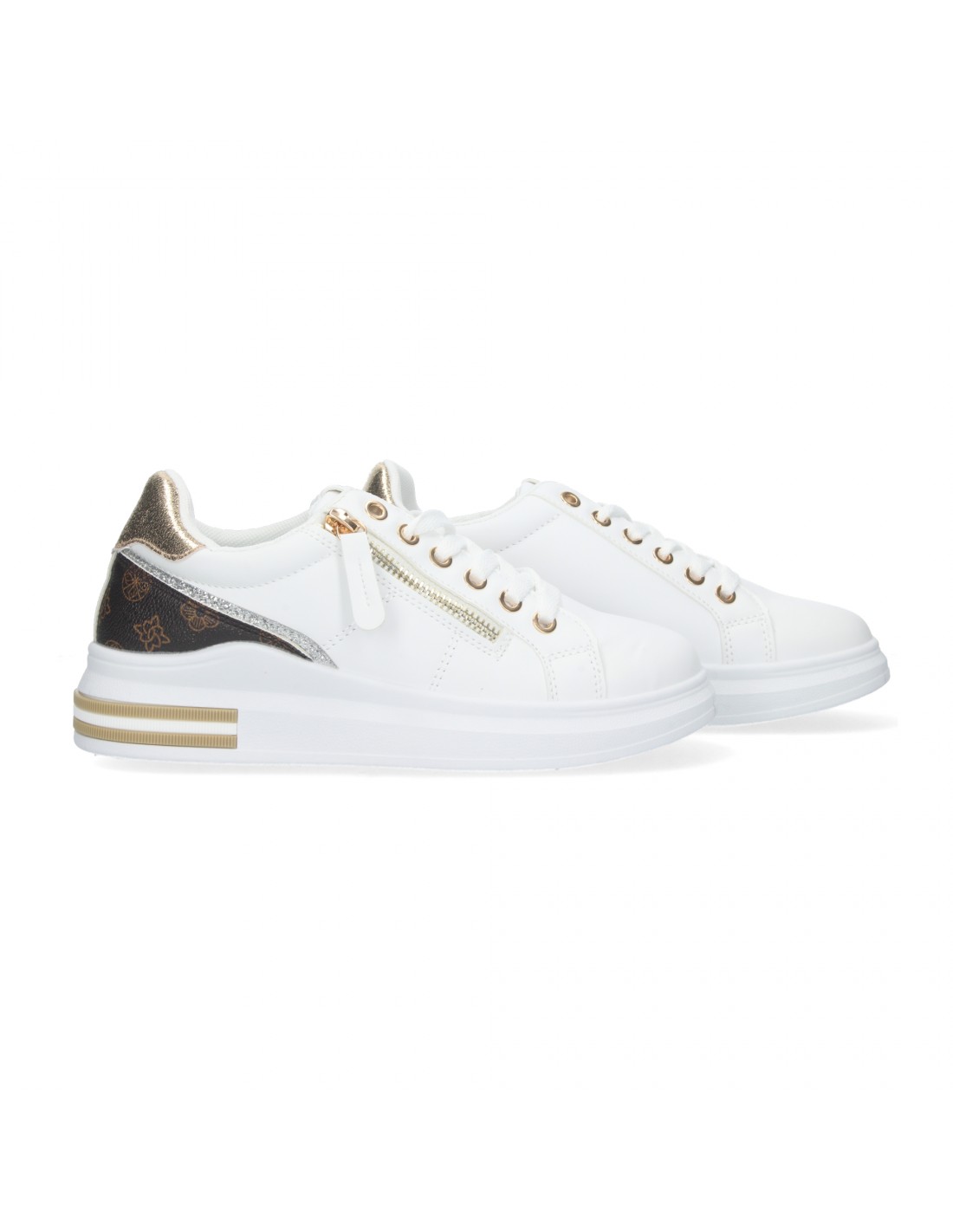 Zapatillas Deportivas Casual de Mujer, con Estampado en la parte trasera, Detalle Metálico y Cremallera, Cierre de cordoneras.