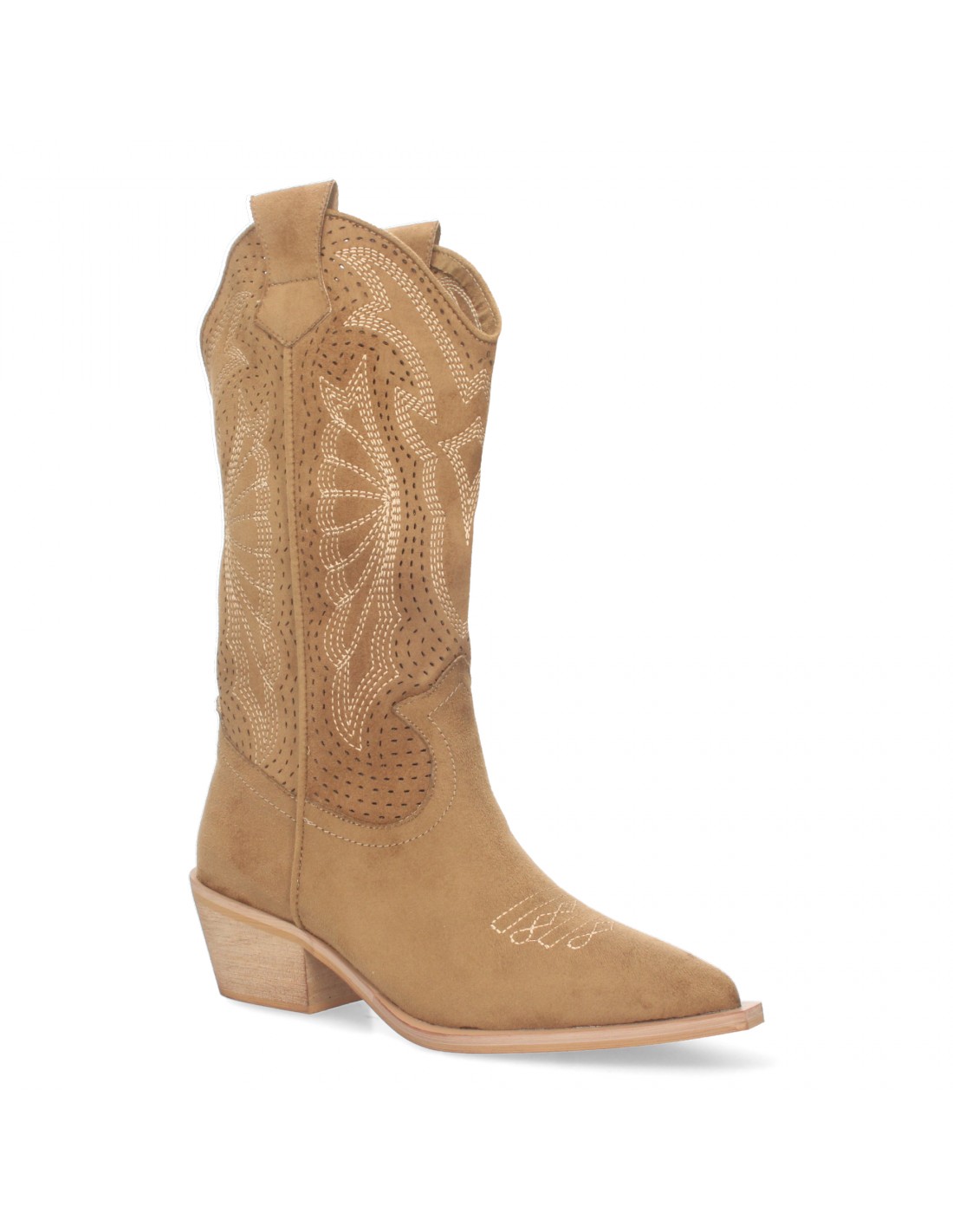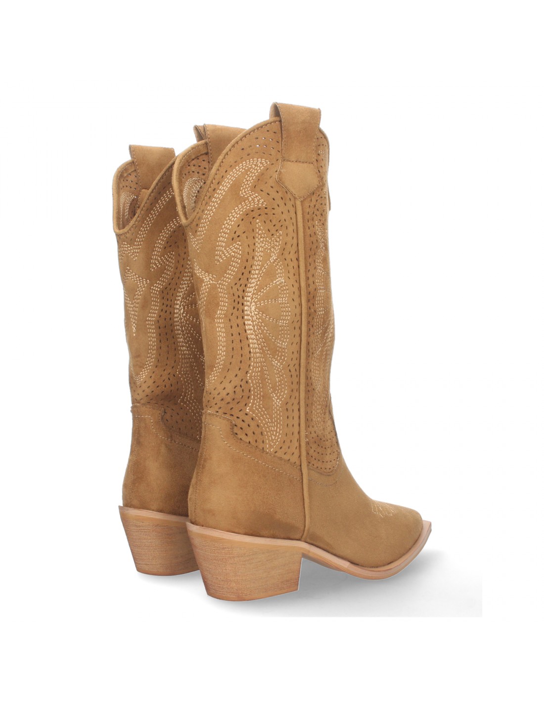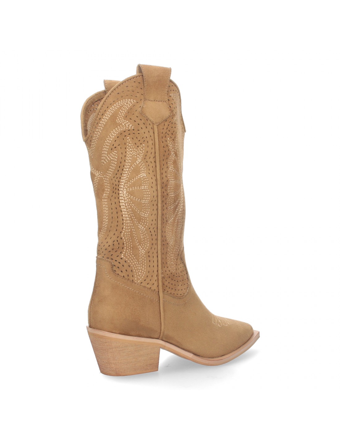 Botas de tacon campero para Mujer, Diseño Perforado, Punta Fina y Cierre de Cremallera Lateral.