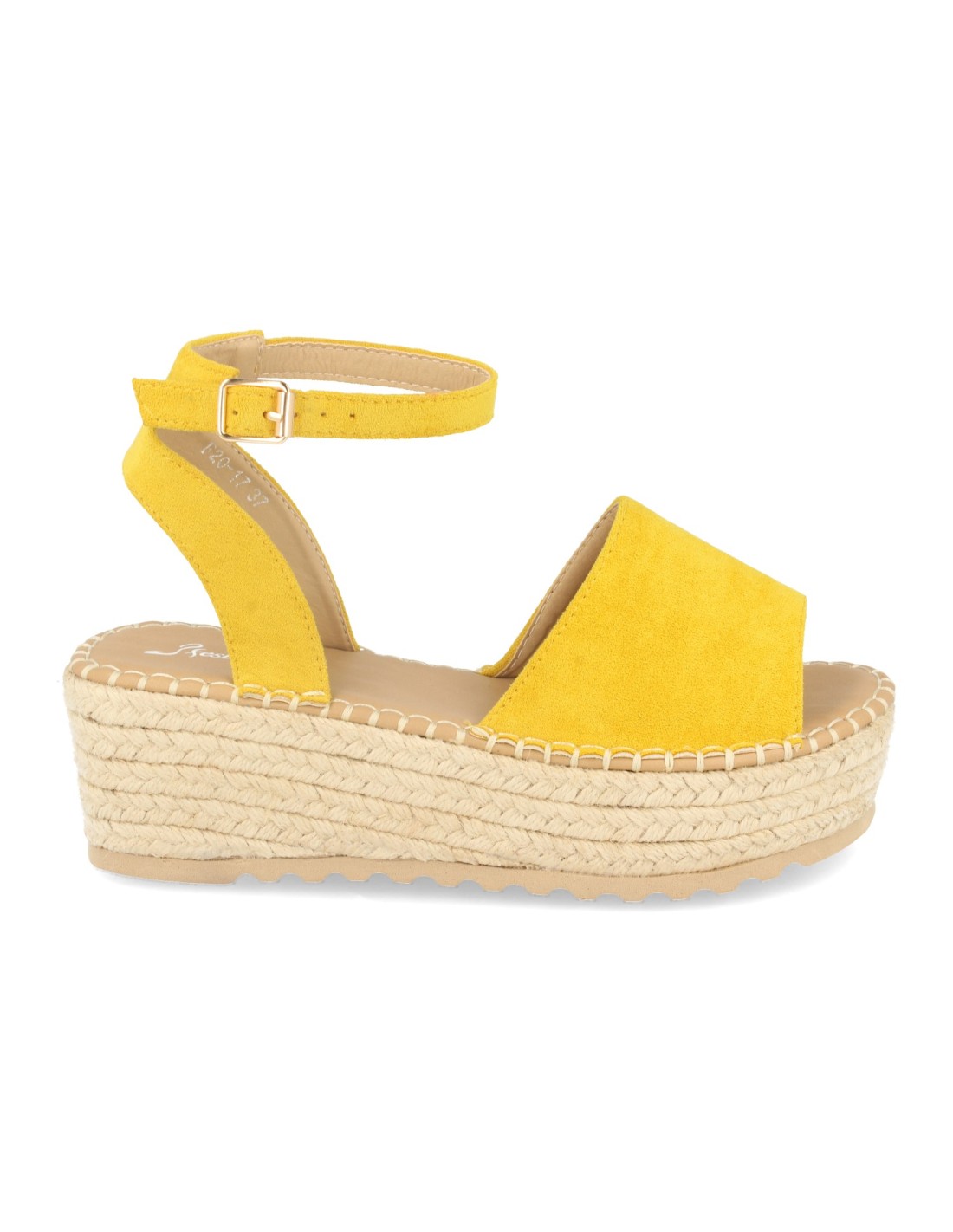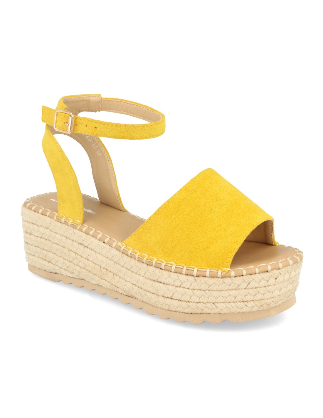 Sandalia Mujer con Plataforma de Yute, Pala Ancha, Talon Abierto y Cierre de Hebilla Primavera Verano 2020
