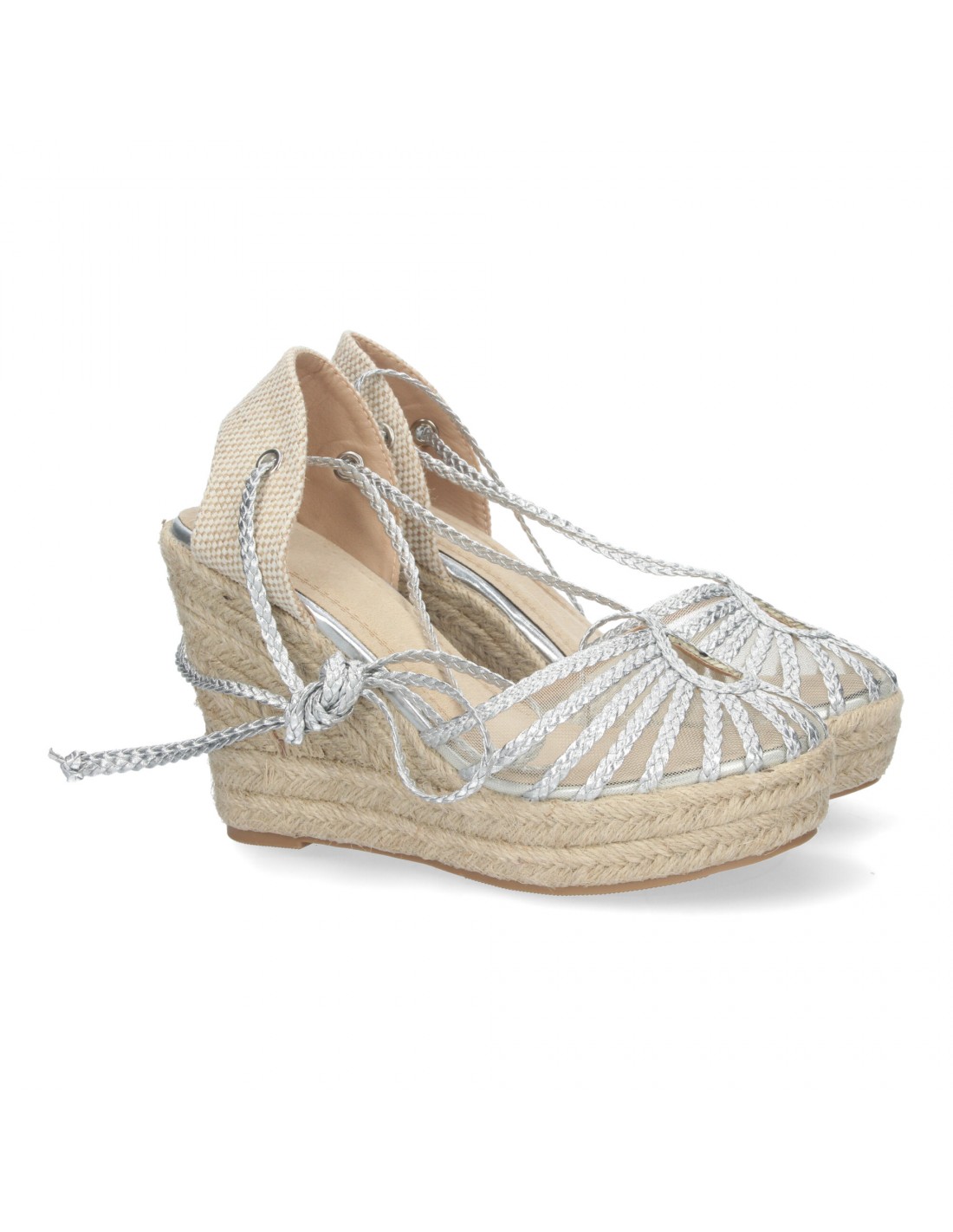 Sandalias de Cuña con Cordones Anudables al tobillo