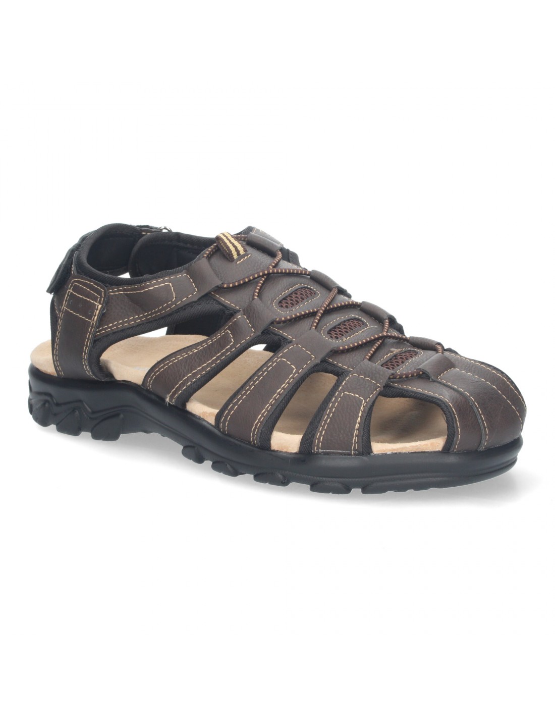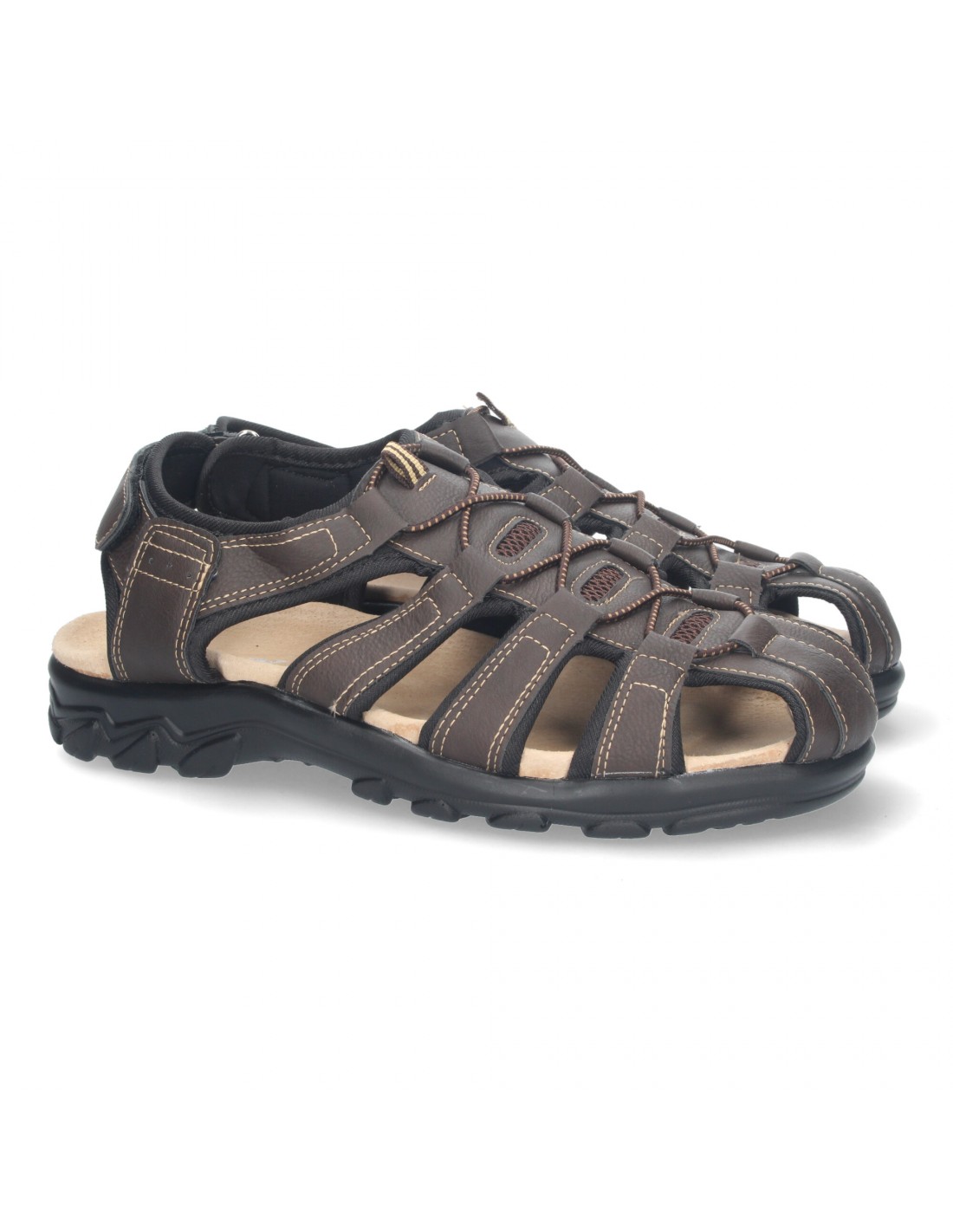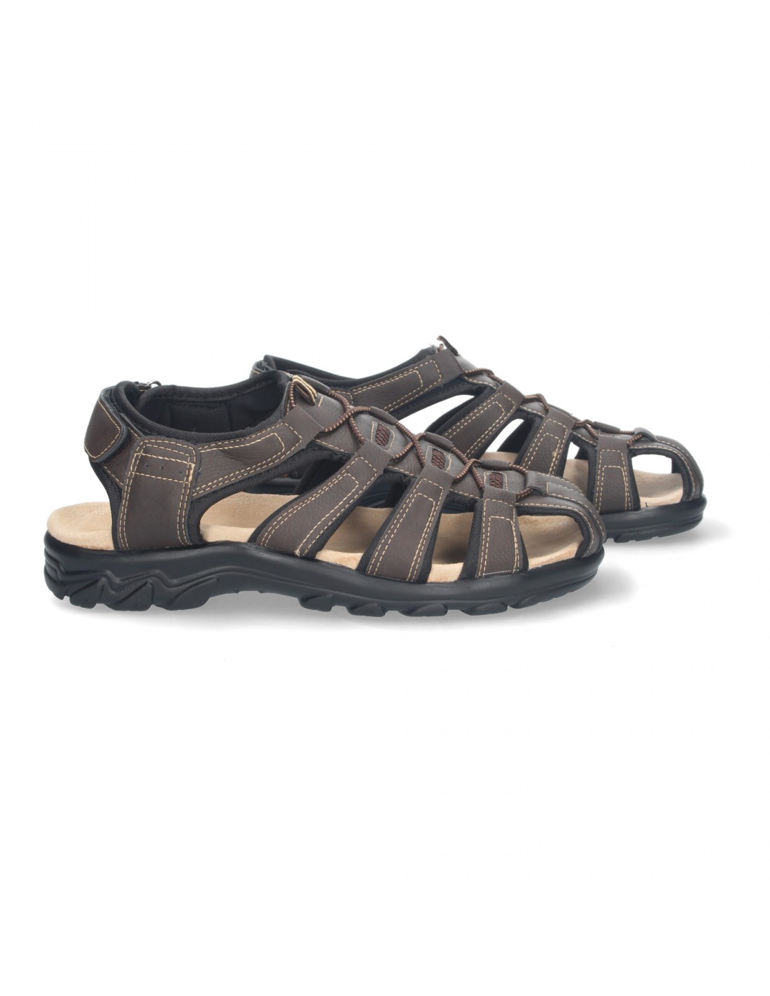 Sandalia Cangrejera Plana de Hombre, Comoda, con Planta de Piel, y Cierres de Velcro.