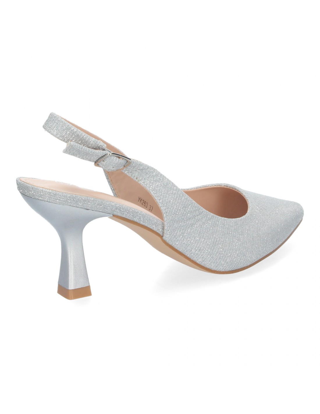 Zapato de Salón para Mujer, Diseño Elegante con Tacón, Abierto por el Talón, Puntera Fina y Cierre de Hebilla Ajustable.