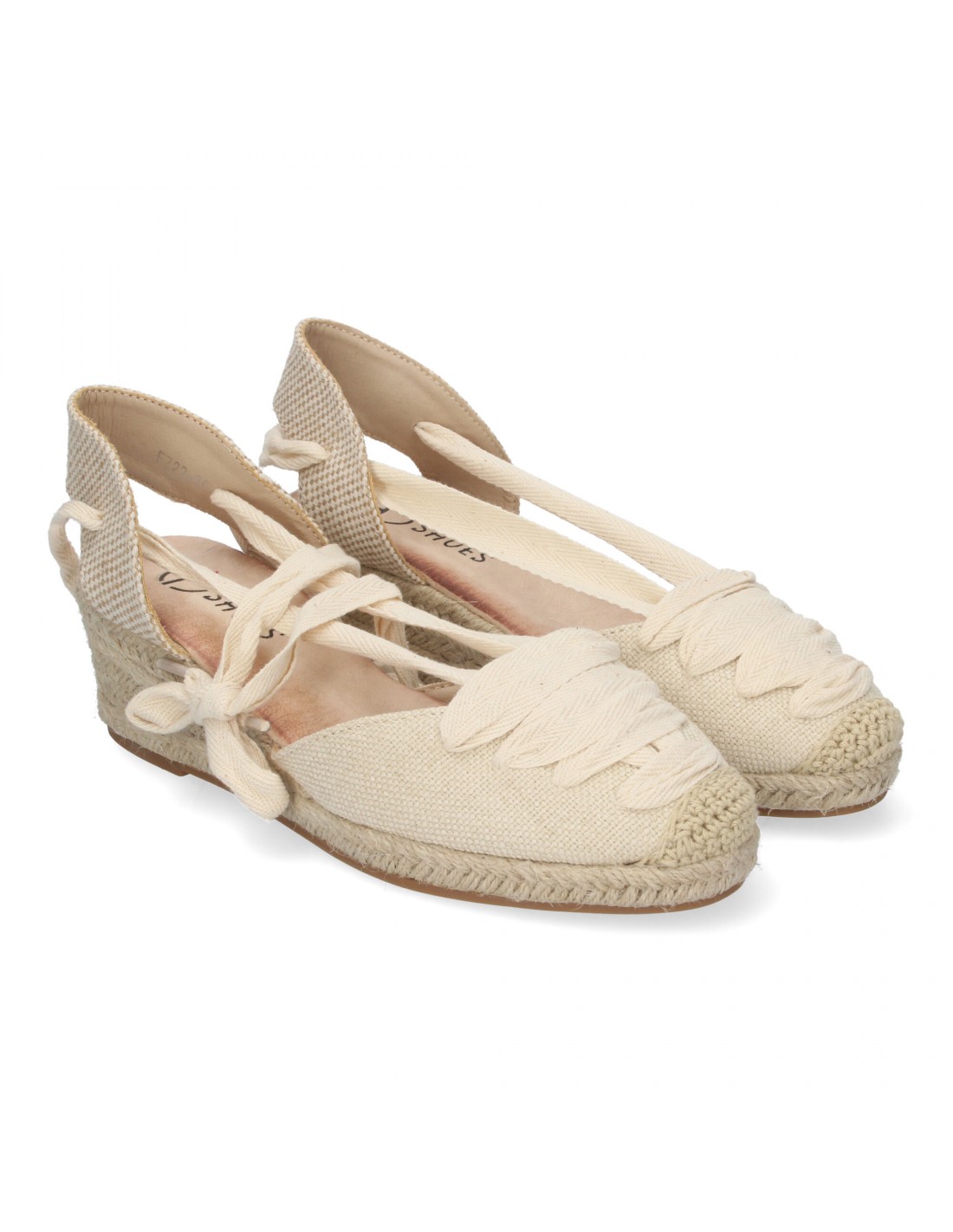 Sandalia de Cuña para Mujer, Forrada de Yute, con Pala Cerrada