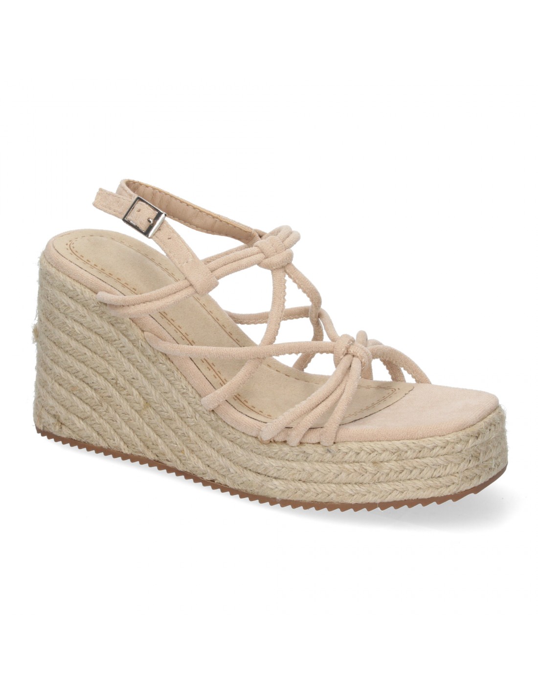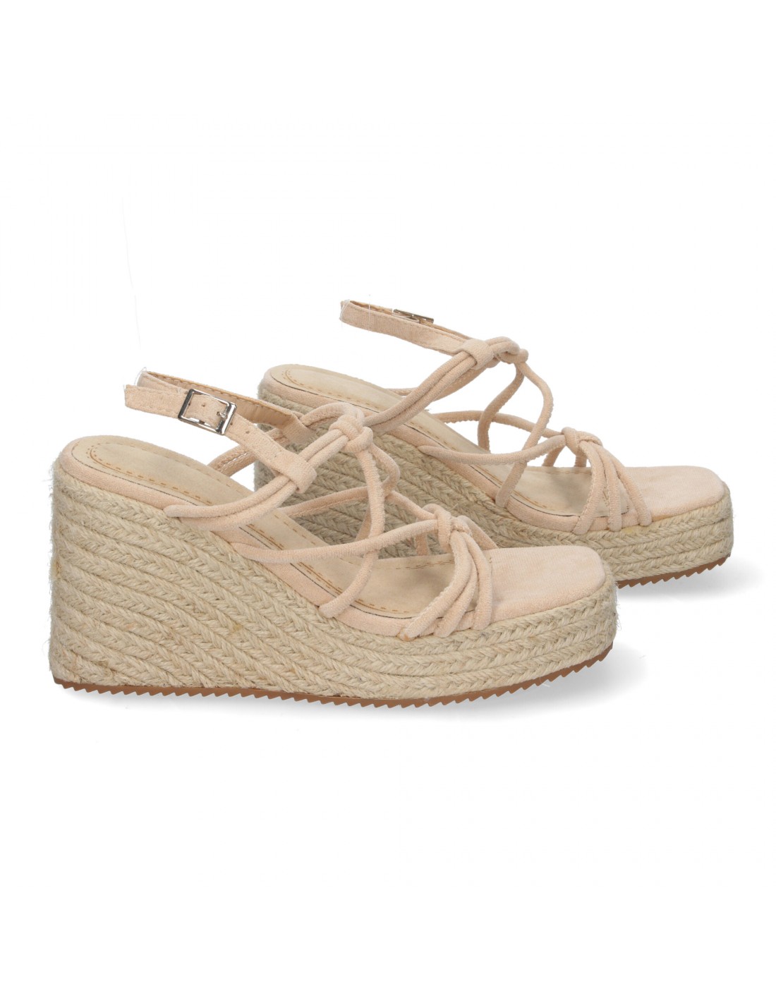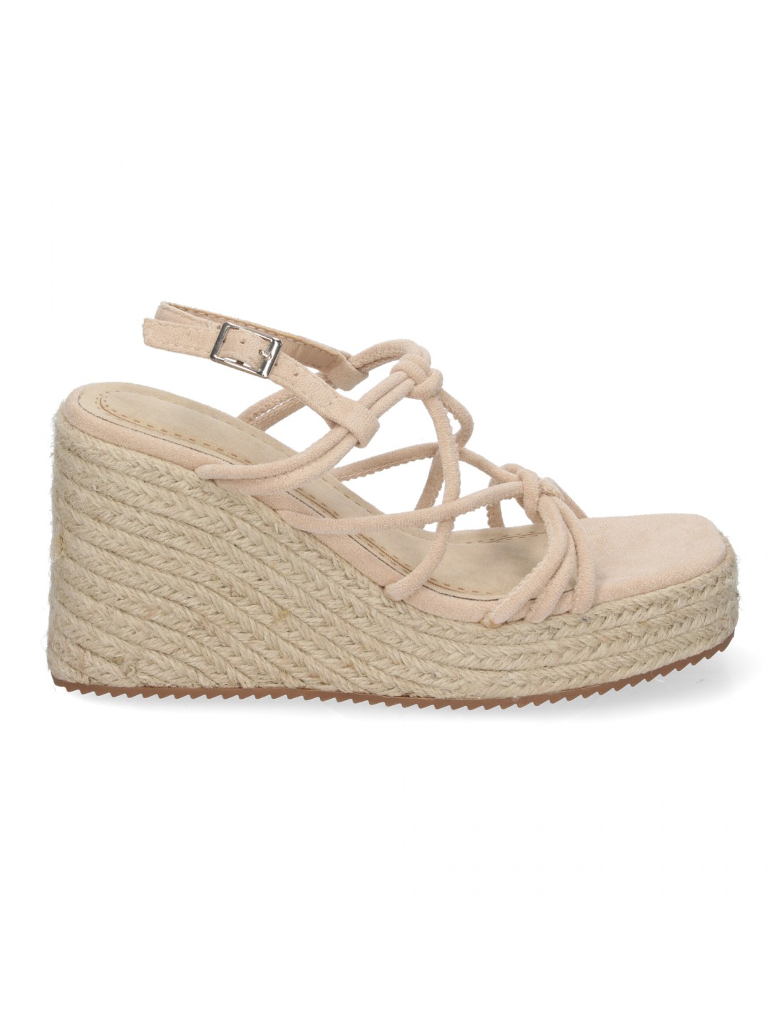 Sandalias de Cuña de Yute, para Mujer con Adornos Cruzados