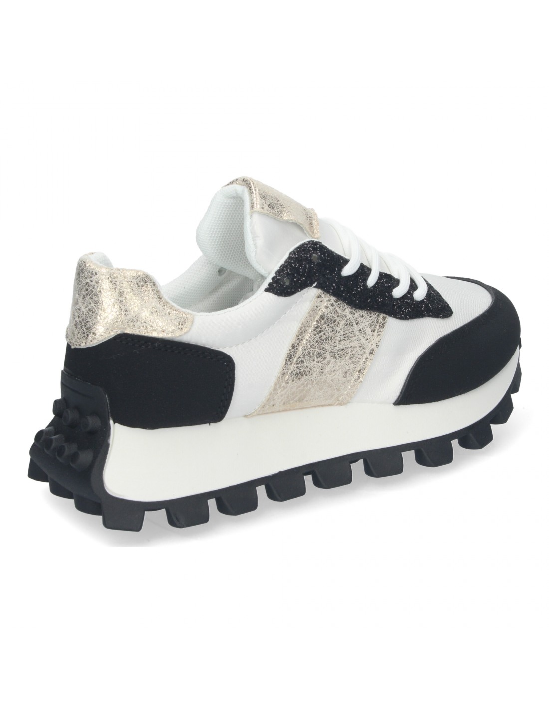 Zapatillas Deportivas Casual para Mujer, Planas, Cómodas con Adornos Brillantes, Suela Dentada y Cierre de Cordones.