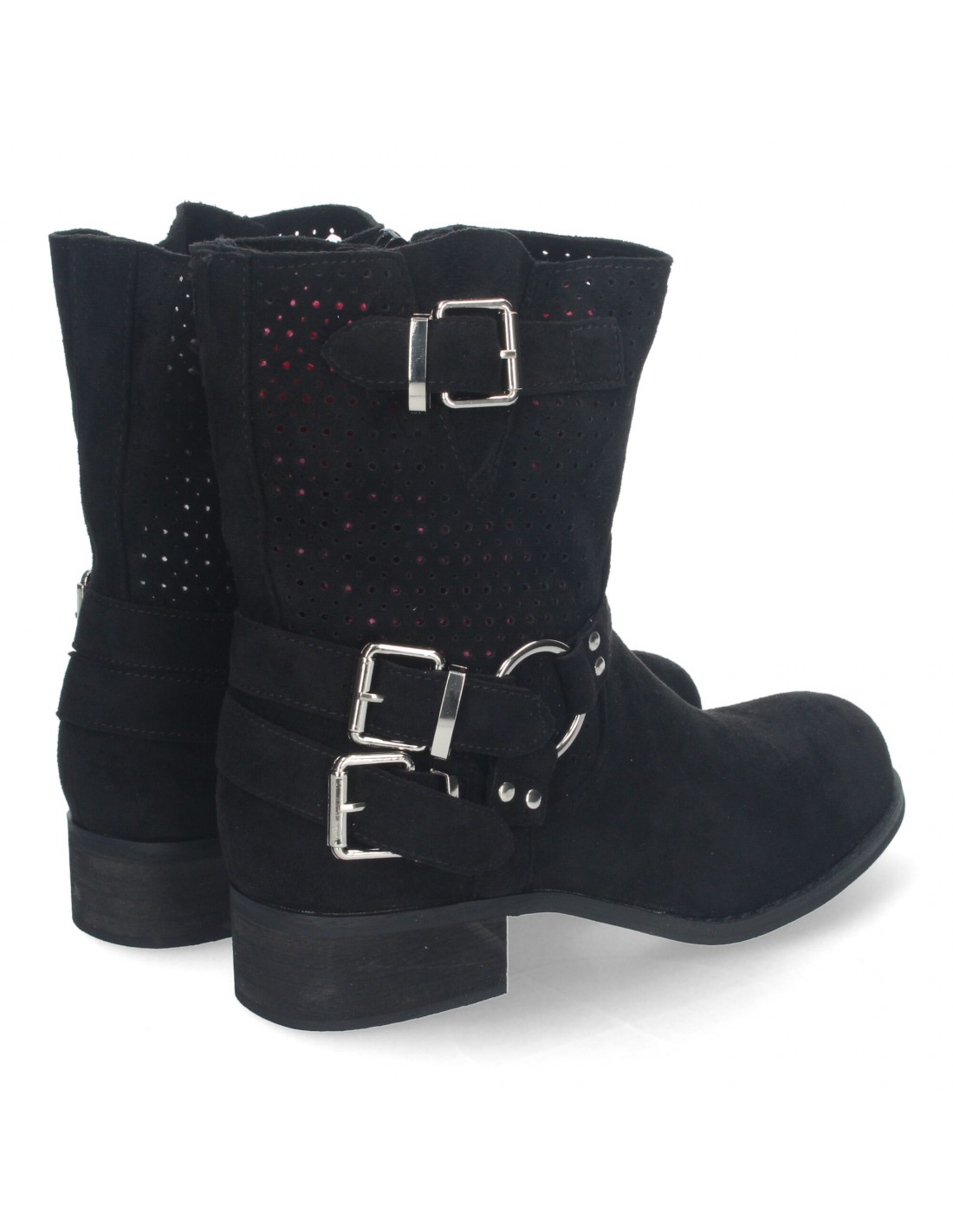 Botines de Mujer con Tacón Bajo y Adornos de Hebillas