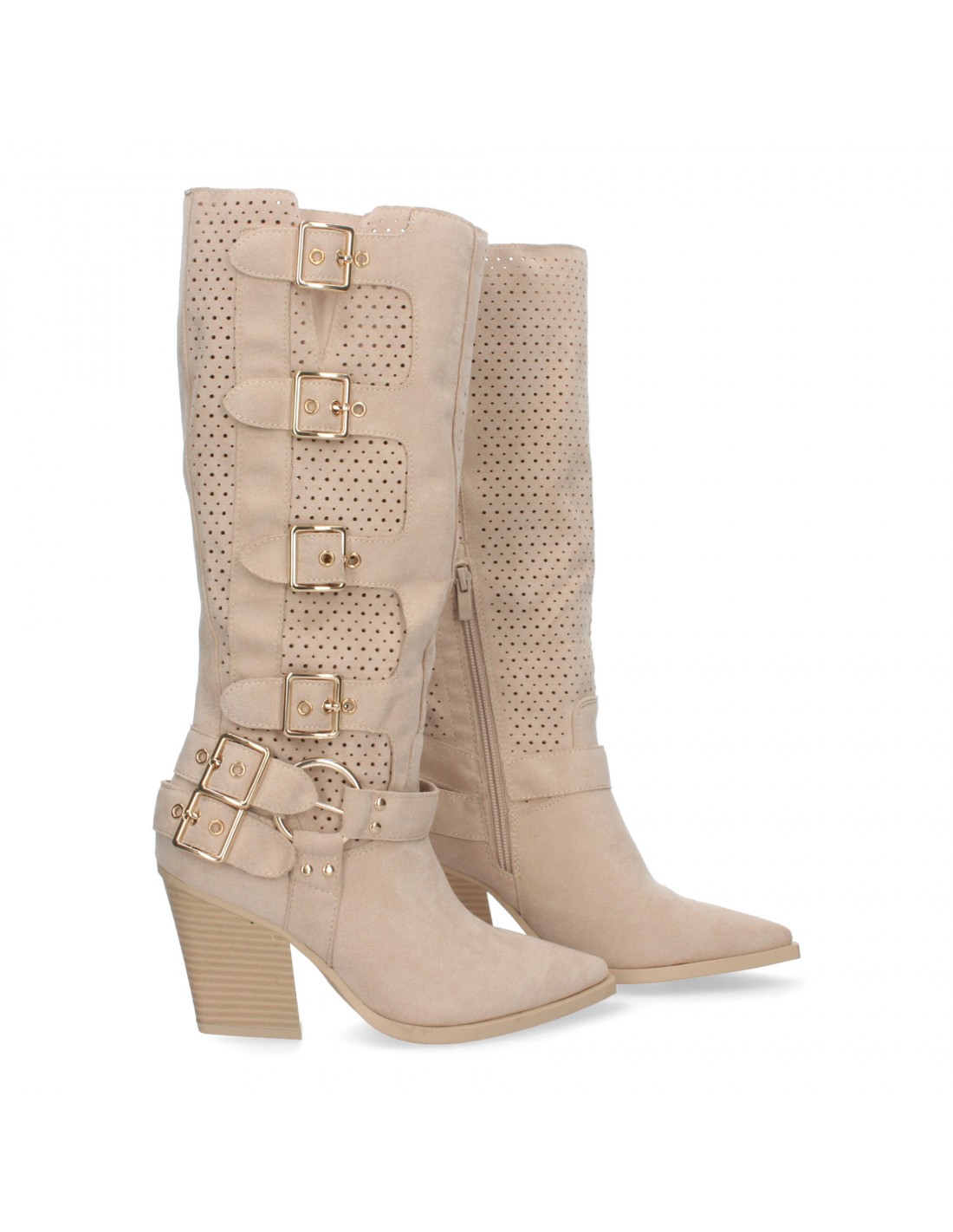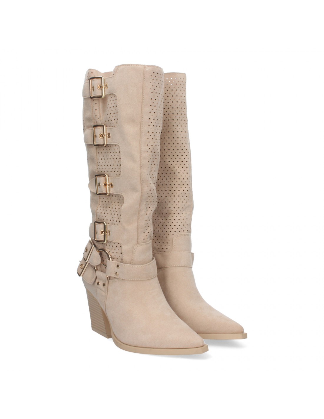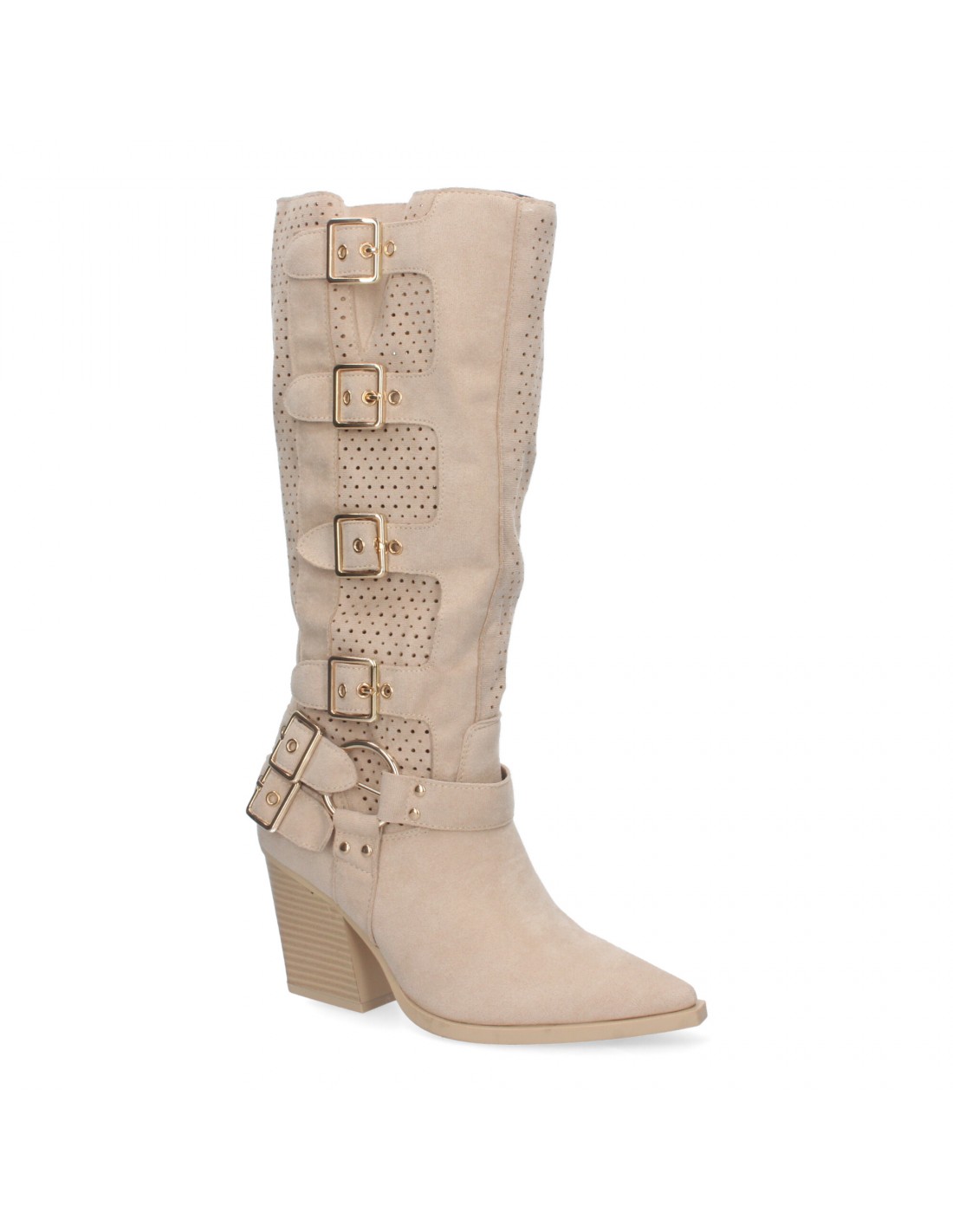 Botines de Mujer con Tacón Bajo y Adornos de Hebillas