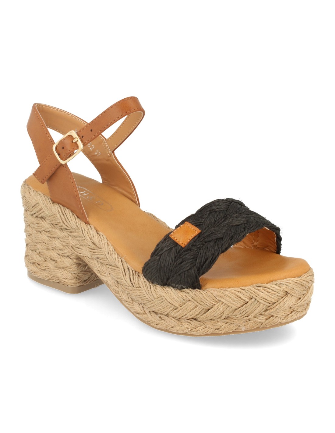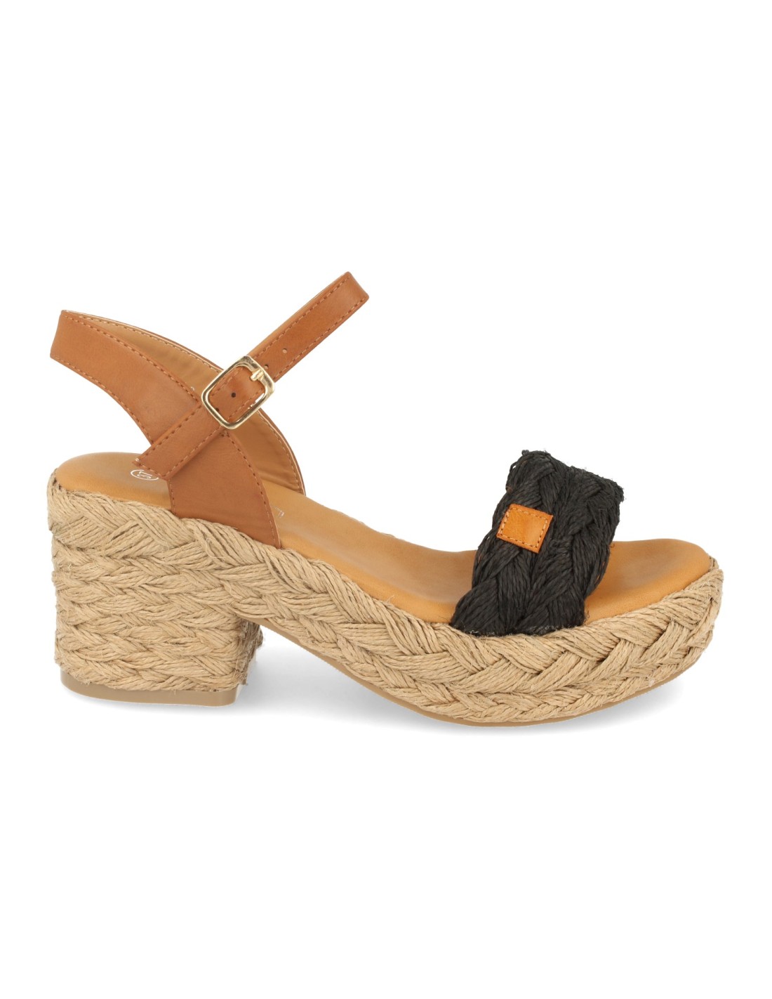 Sandalia de Tacón con Plataforma de Yute y Hebilla