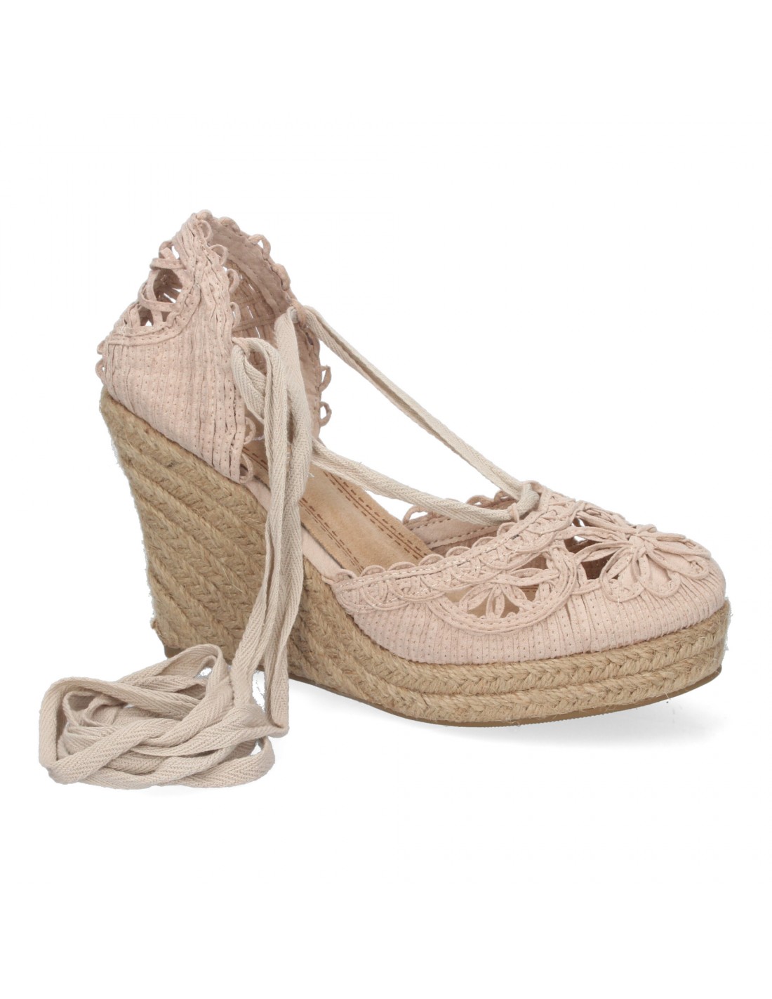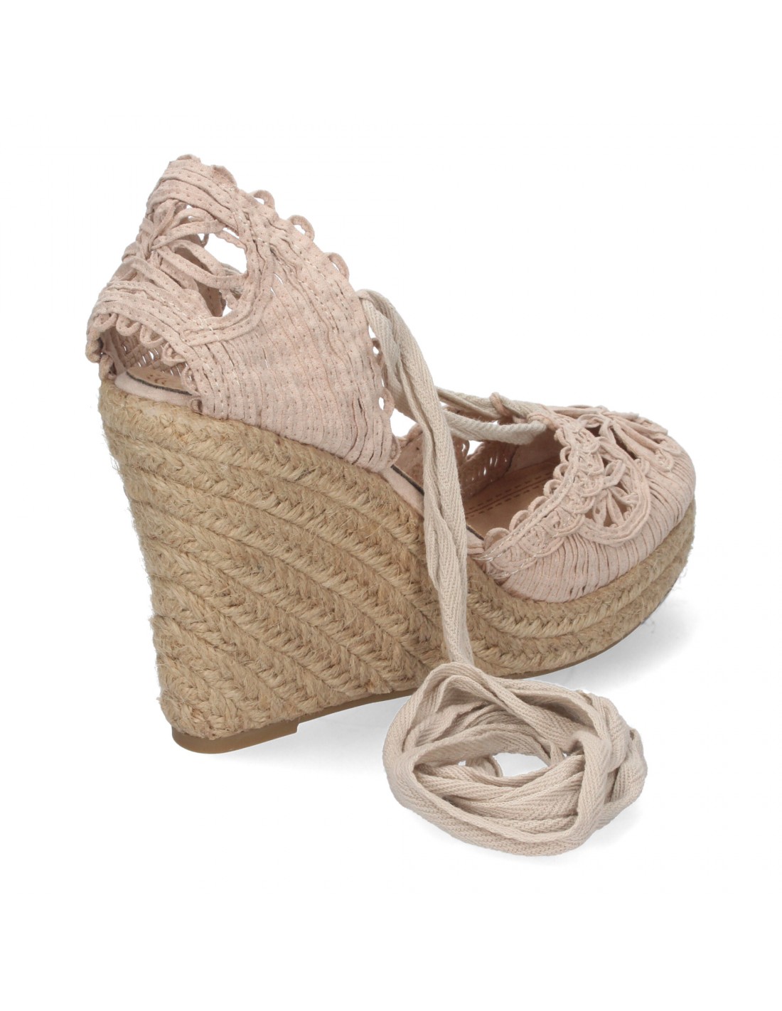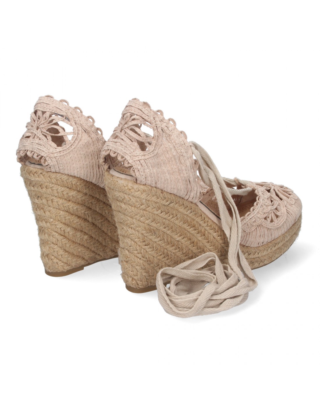 Sandalia de Cuña con Yute y Cordones en el Tobillo