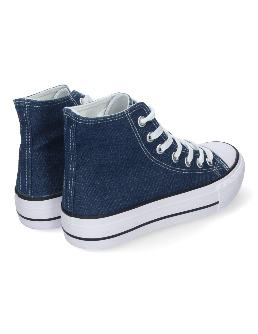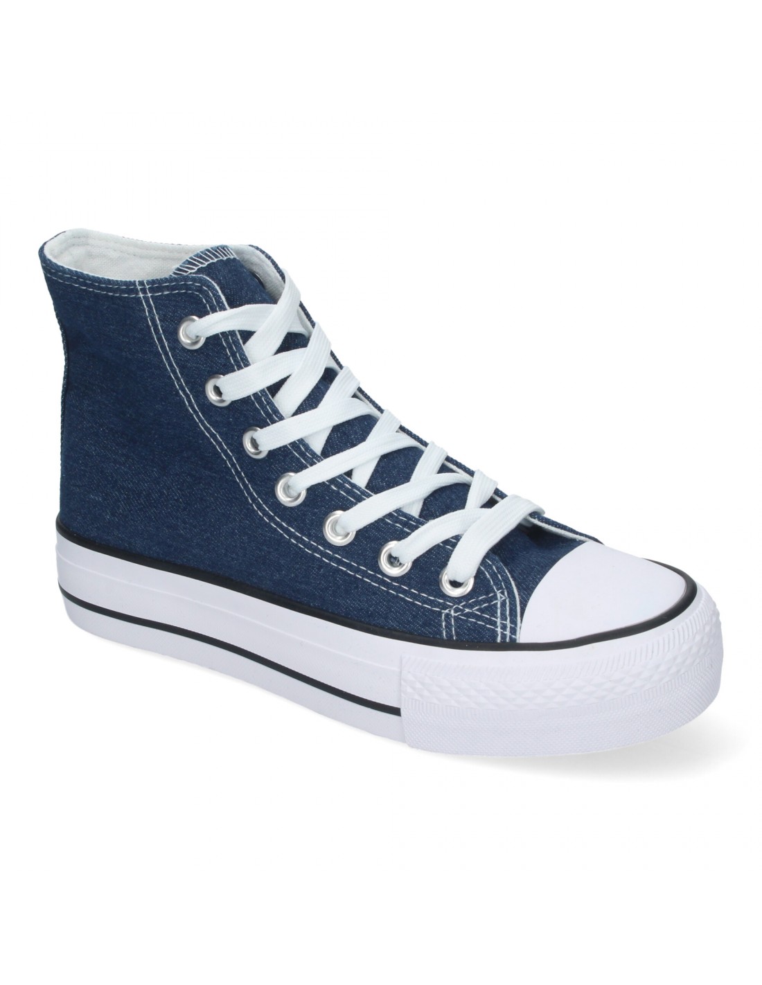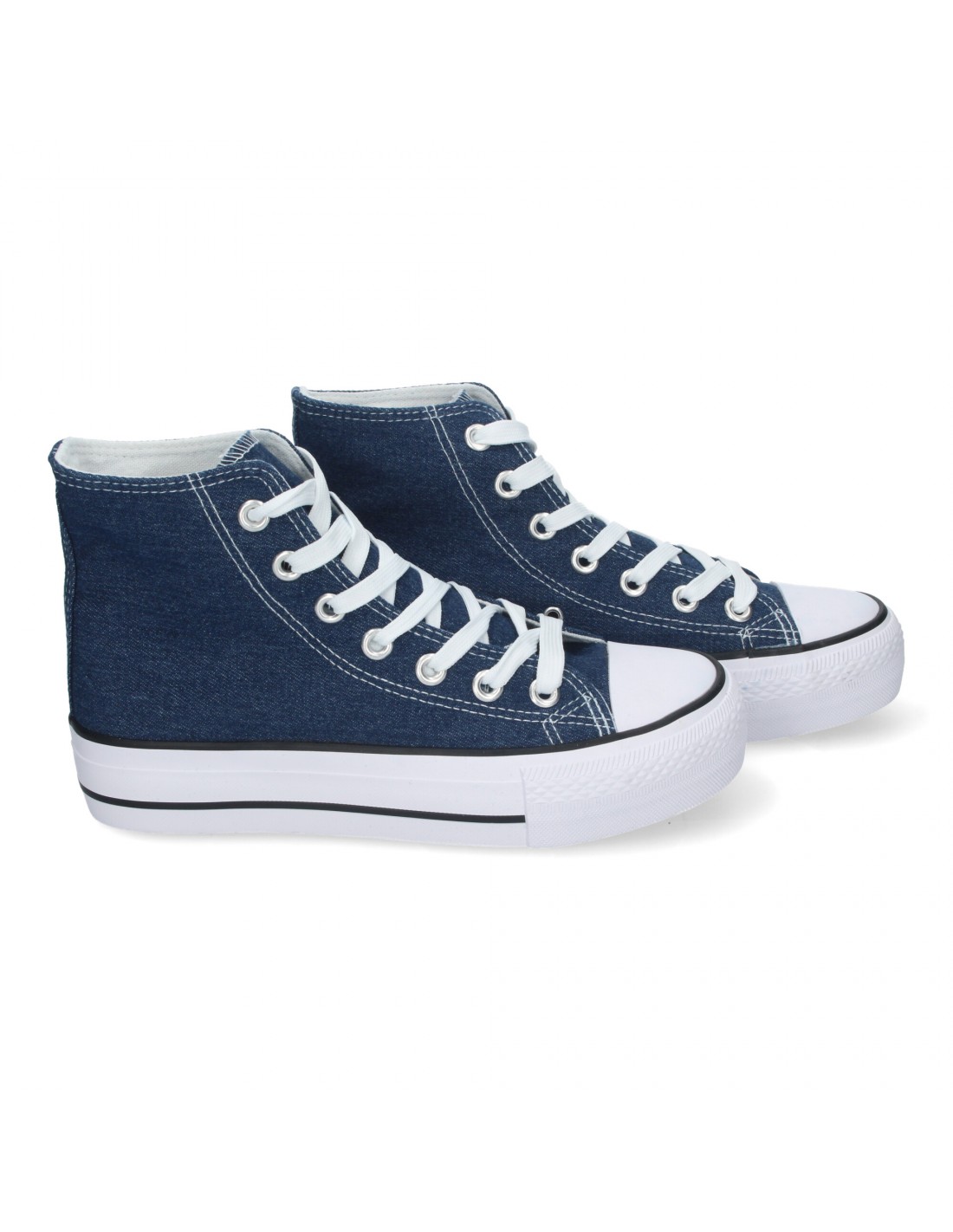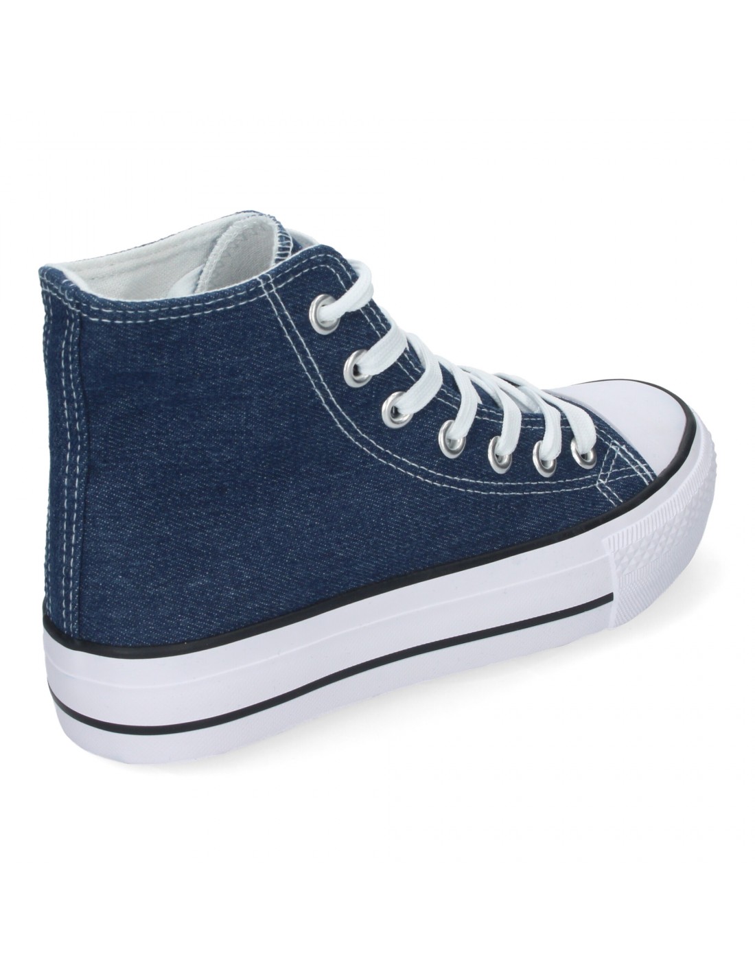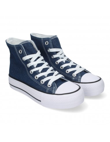 Zapatilla Abotinada de Mujer, Comoda, con Material de Lona, Estilo Bamba Casual, y Cierre de Cordones
