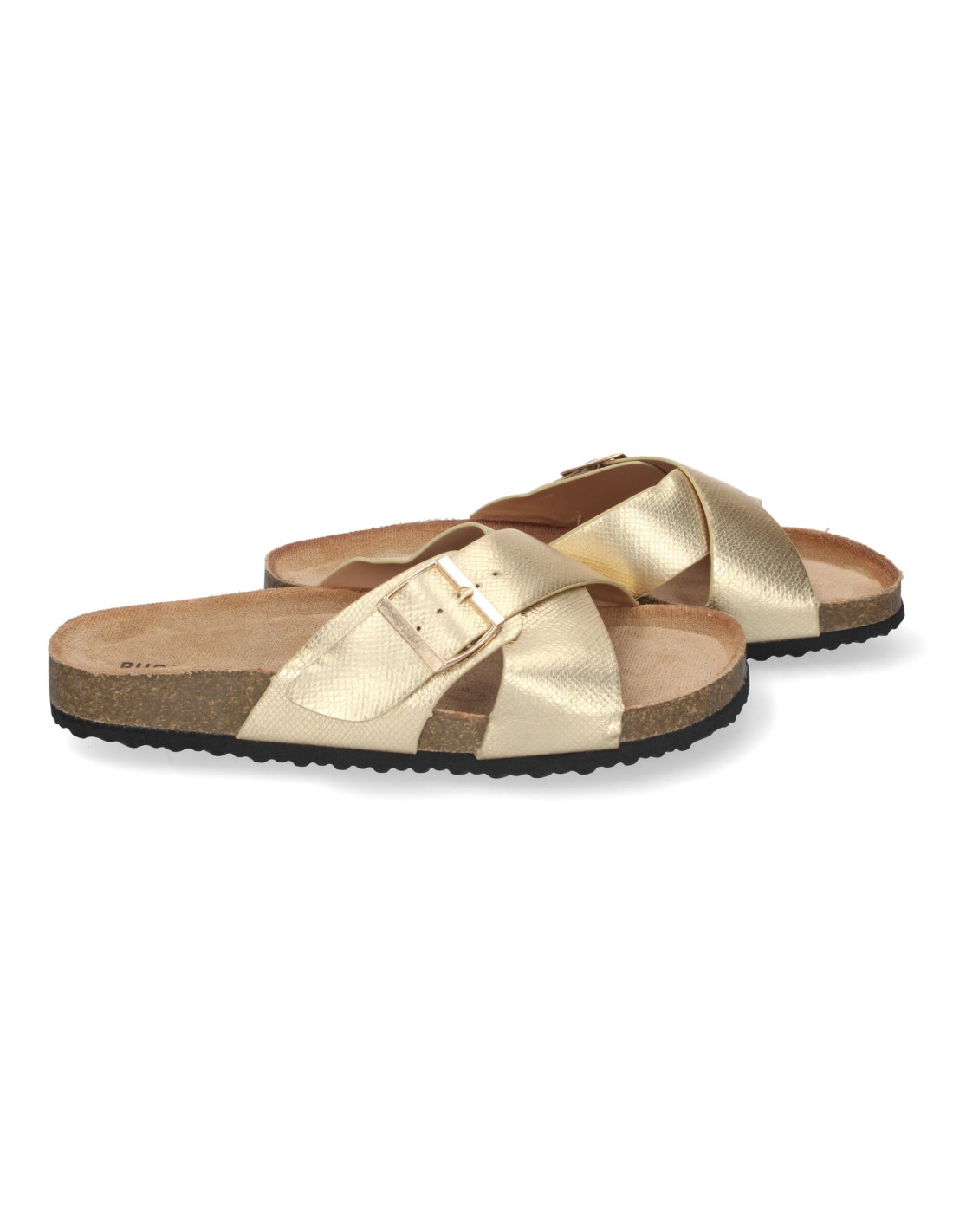 Sandalia Plana de Mujer, Pala entrecruzada, con Planta Anatomica de Bio, y Hebilla, Primavera Verano