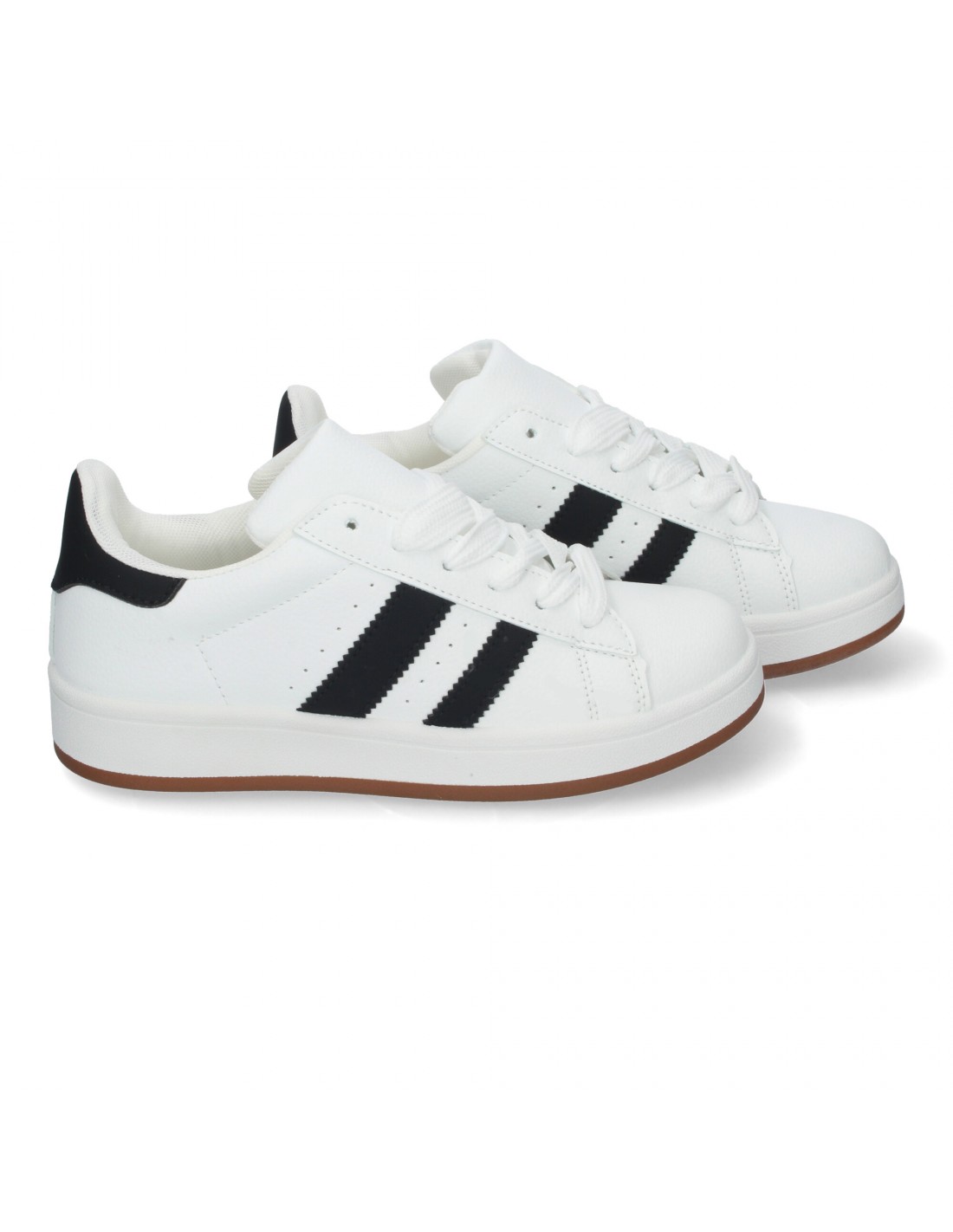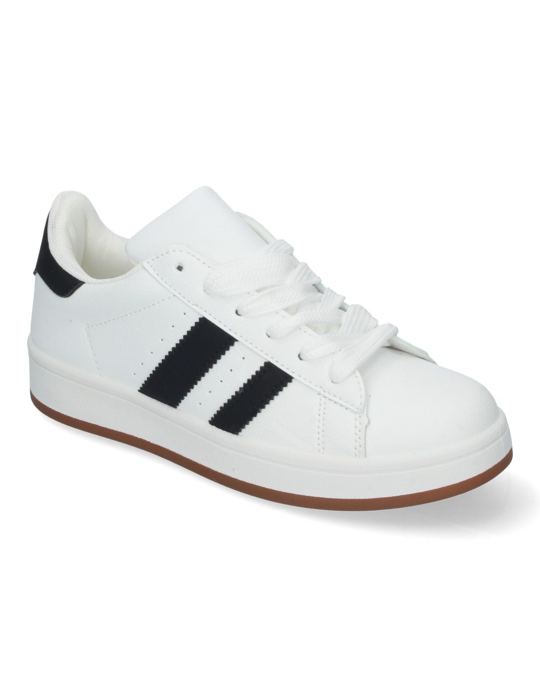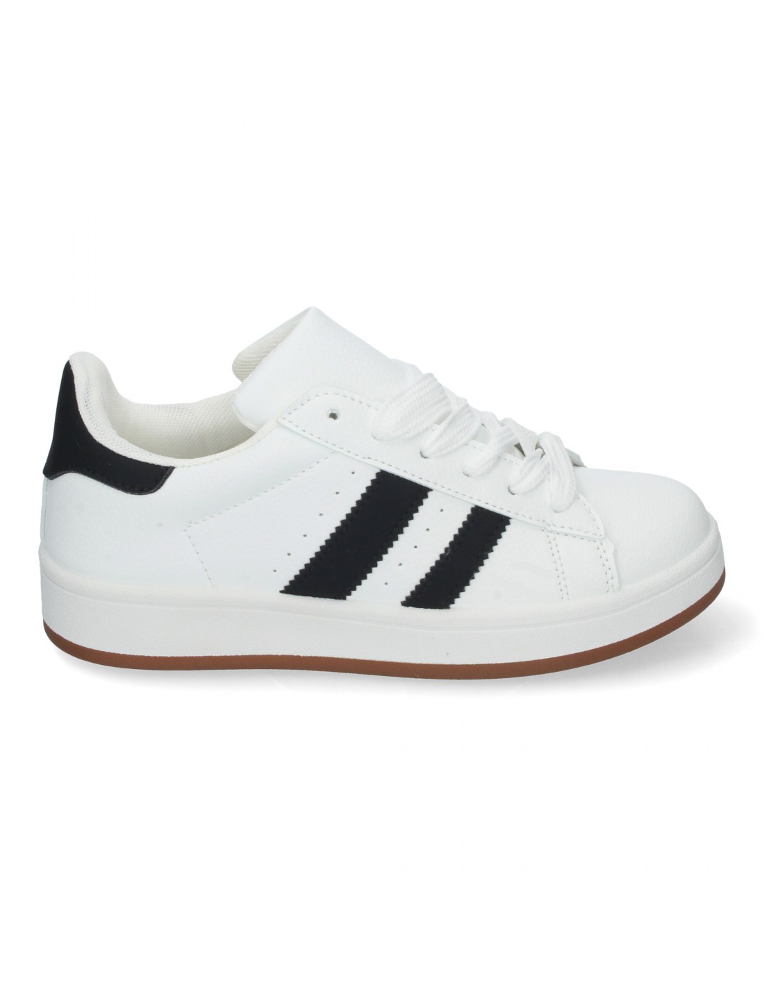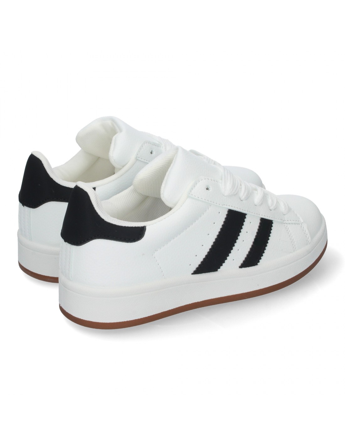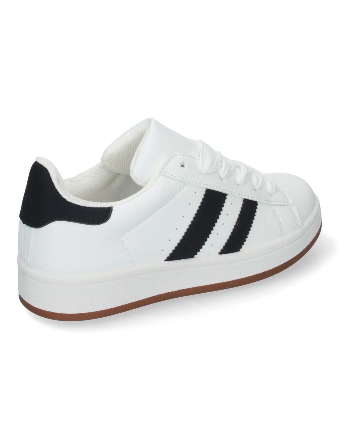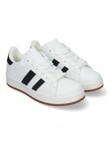 Zapatillas Deportivas Planas Estilo Casual para Mujer, Cierre de Cordones y Detalle de Franjas Laterales.