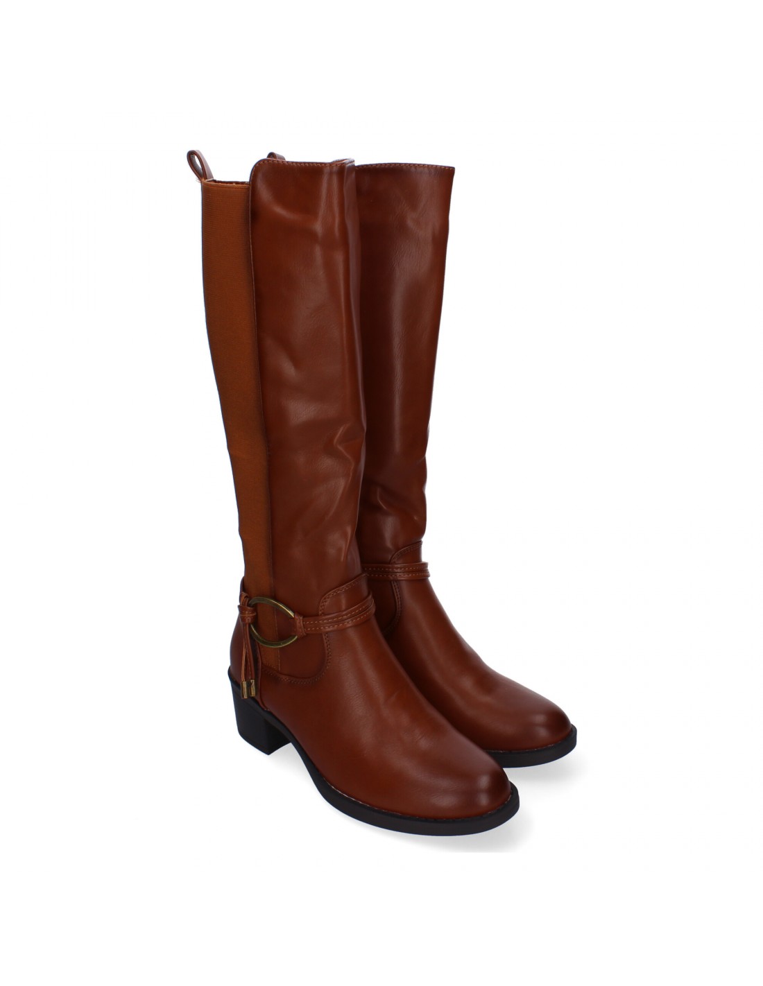 Botas de Tacón para Mujer, Comodas y Elegantes, Detalle de Hebilla, Puntera Redonda y Cierre de Cremallera Lateral.