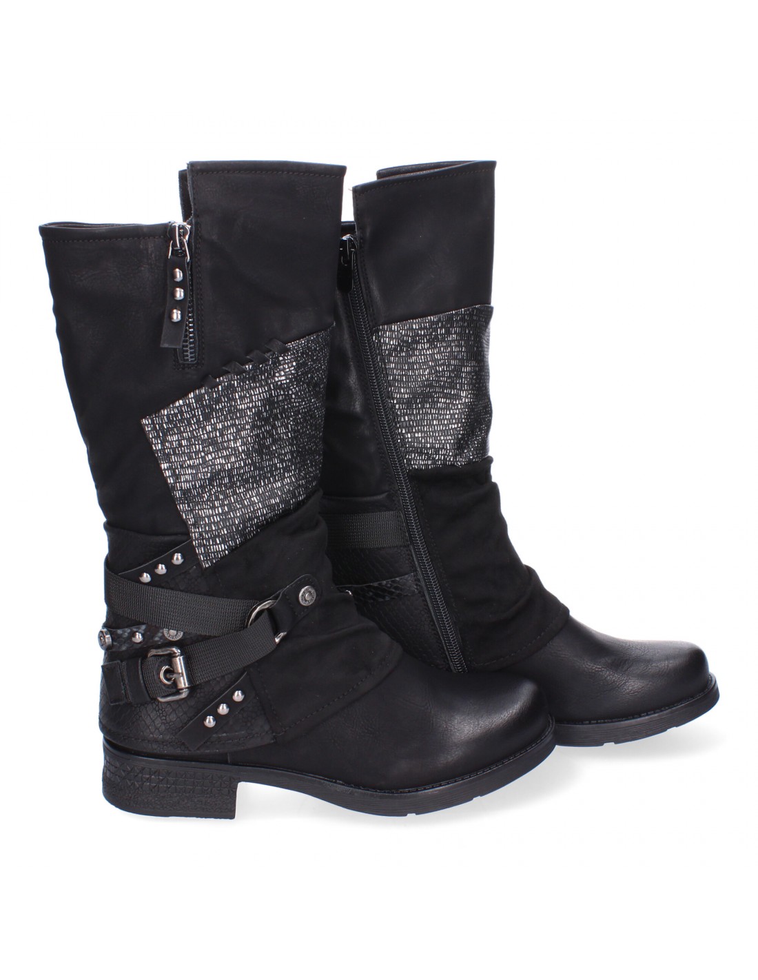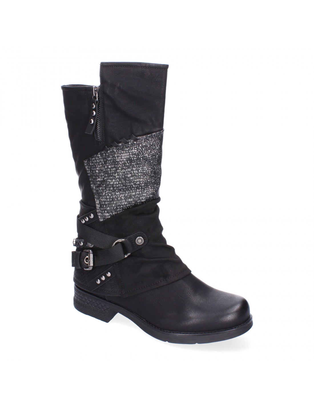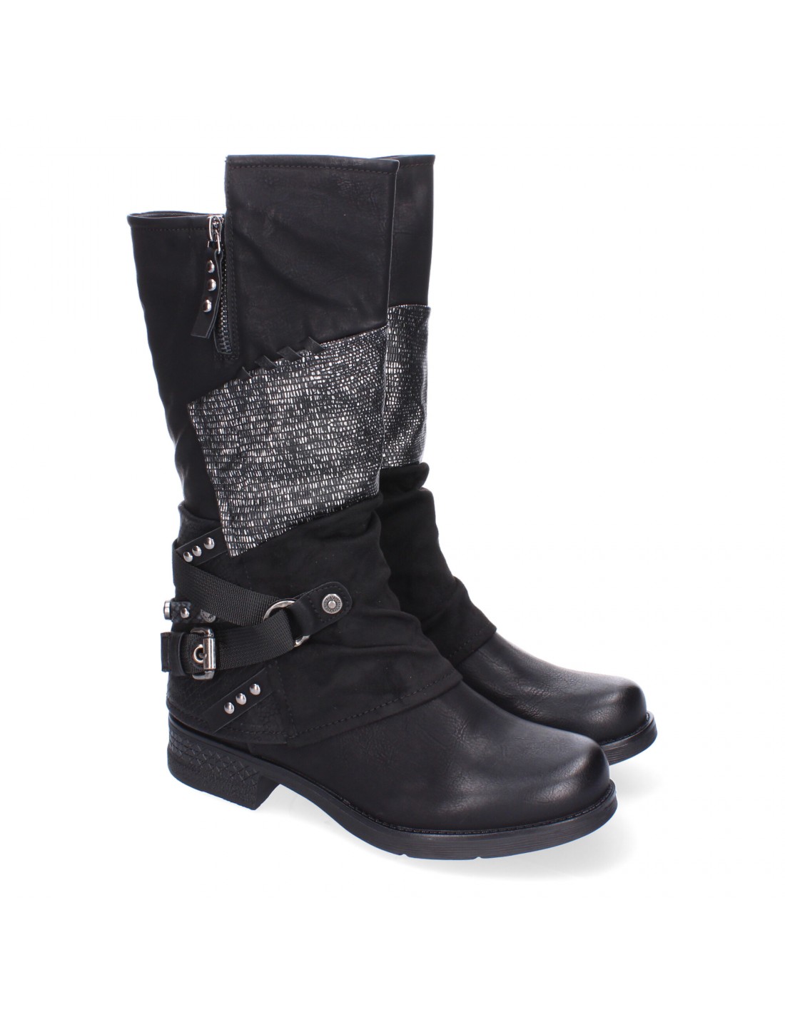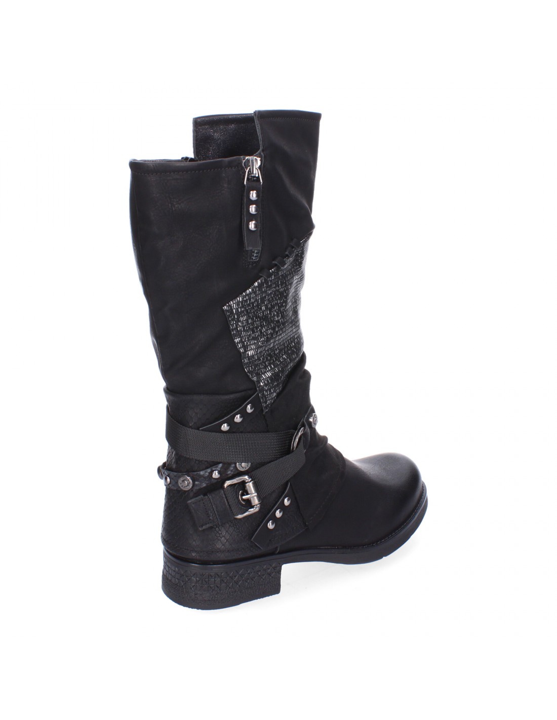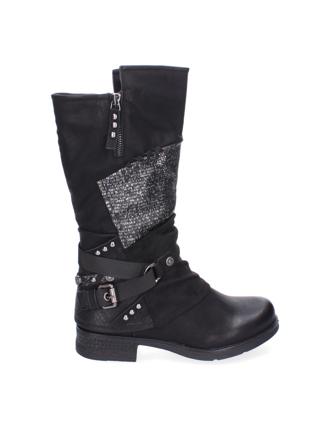 Botas de Mujer Con Detalles de Hebilla y Tiras Decorativas, Diseño Elegante y Moderno con Punta Rendonda y Cierre de Cremallera Lateral.