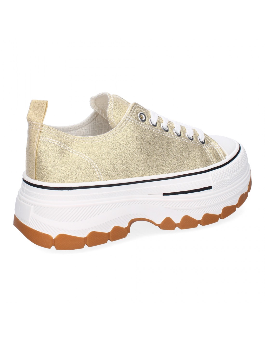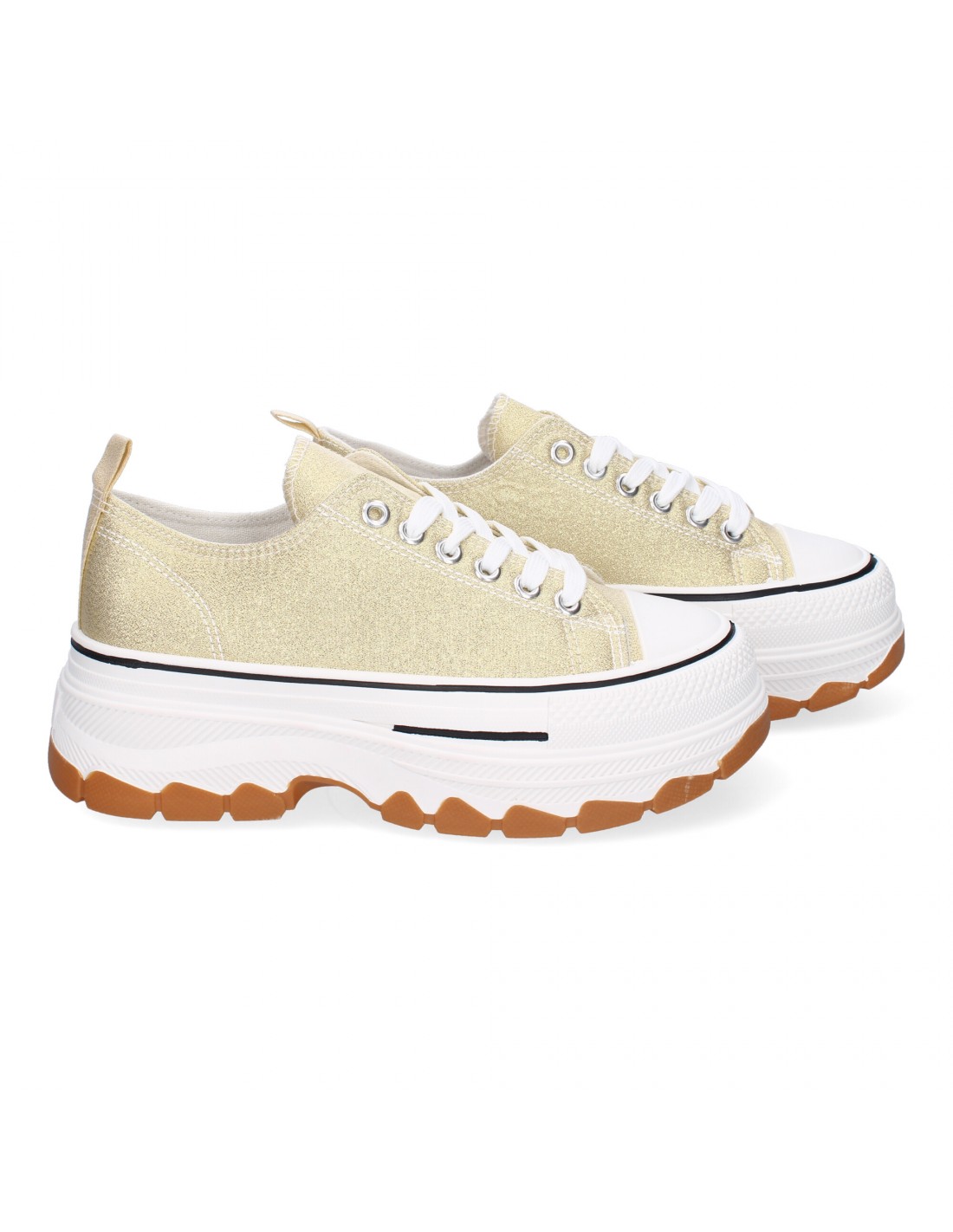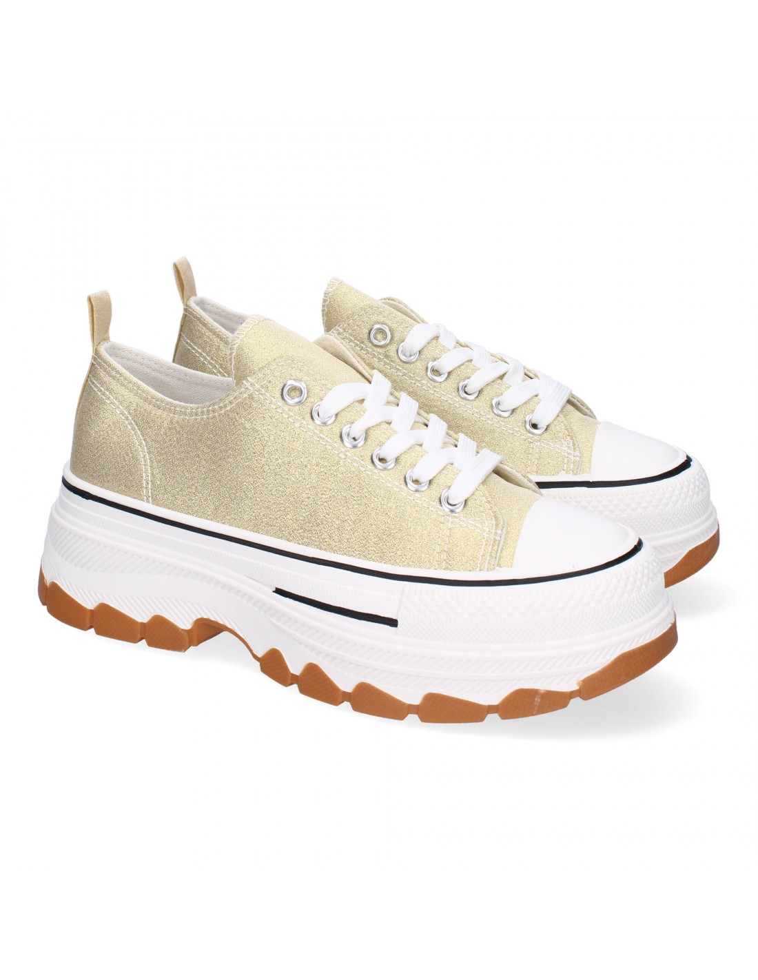Zapatilla de Plataforma para Mujer, Comoda, Estilo Bamba, Material de Lona, y Cierre de Cordones